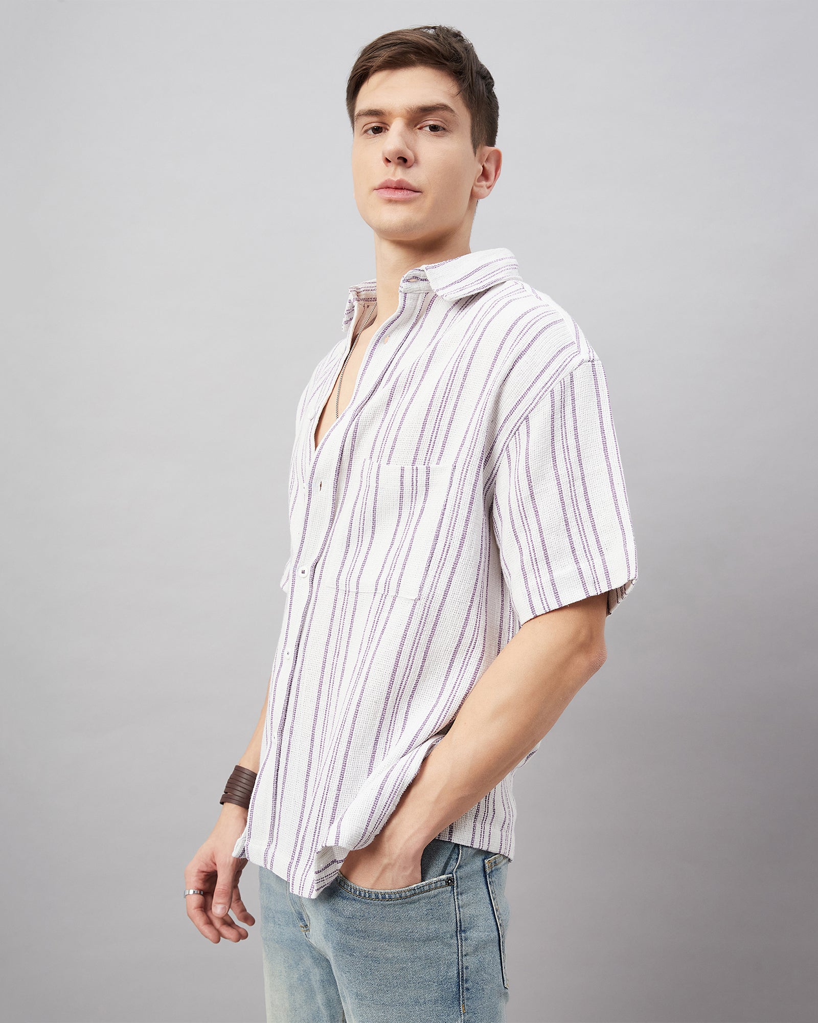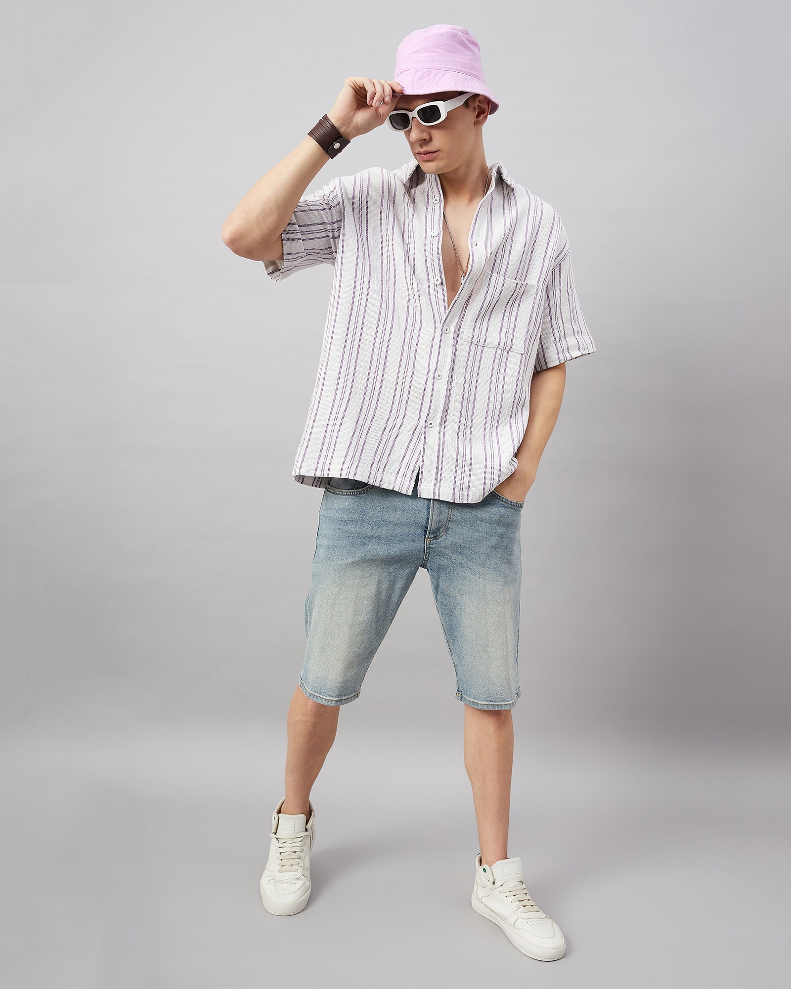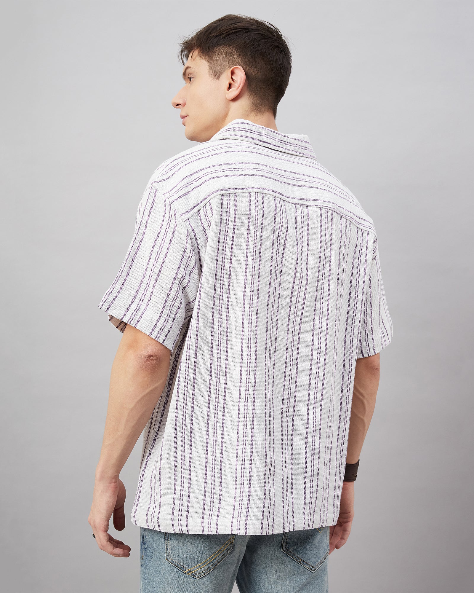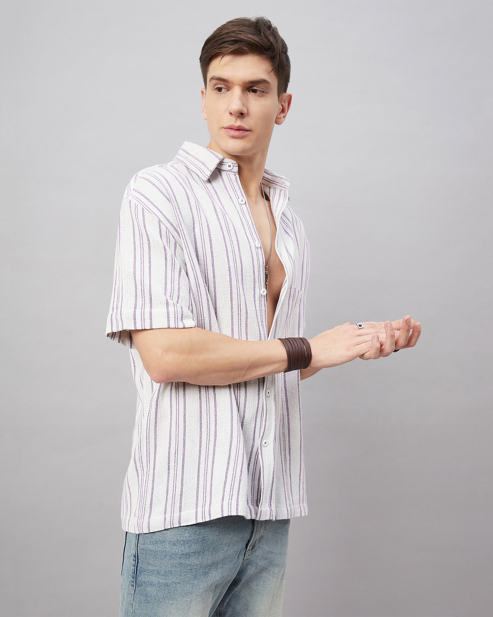 Chimpaaanzee Men White & Purple Oversized Fit Shirt