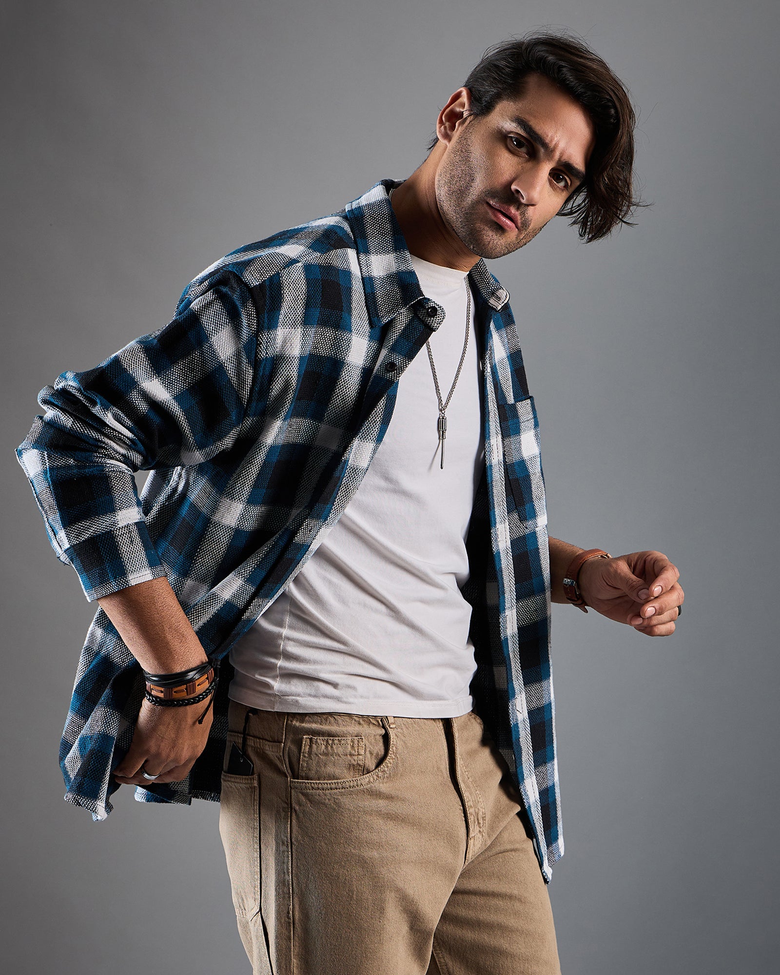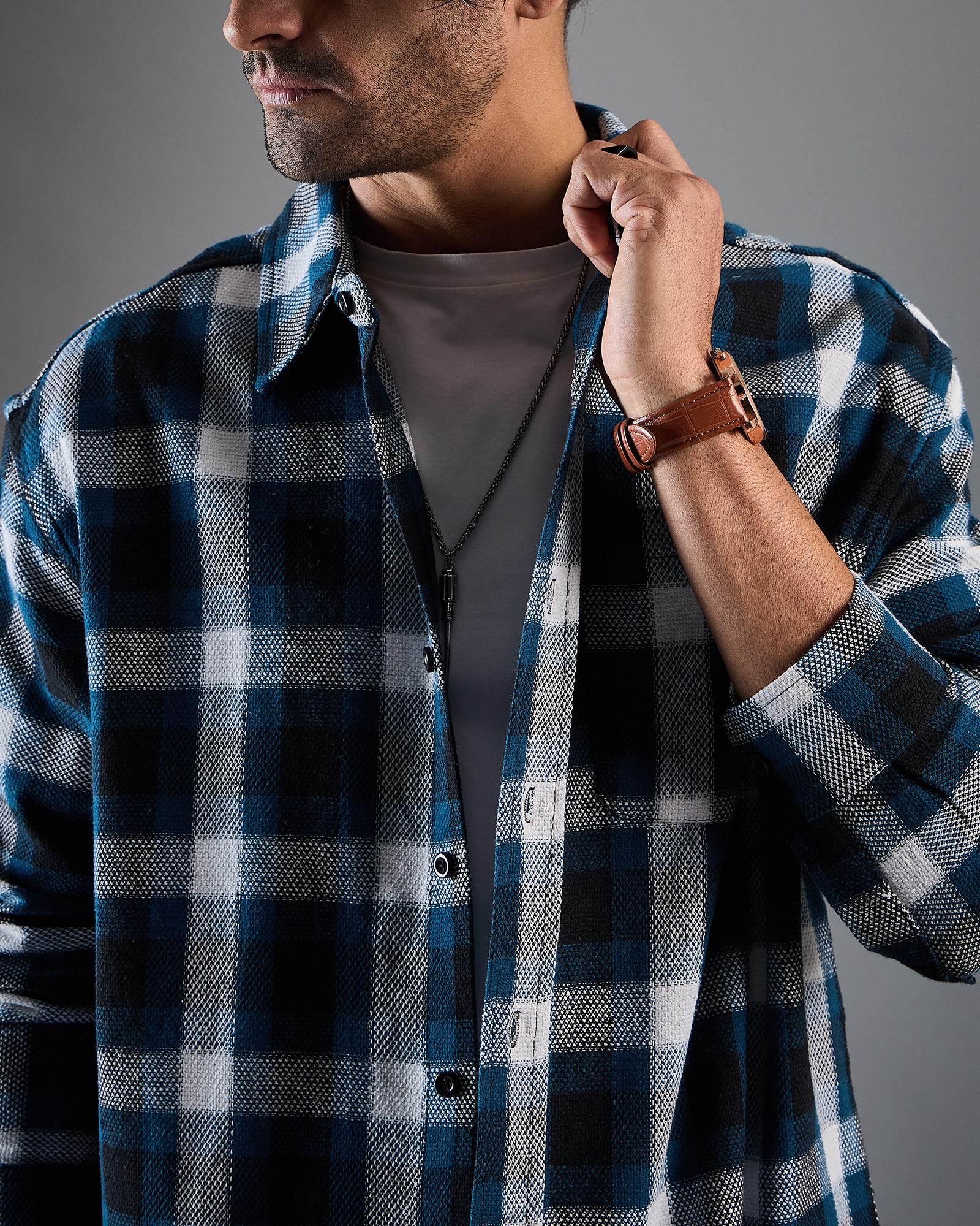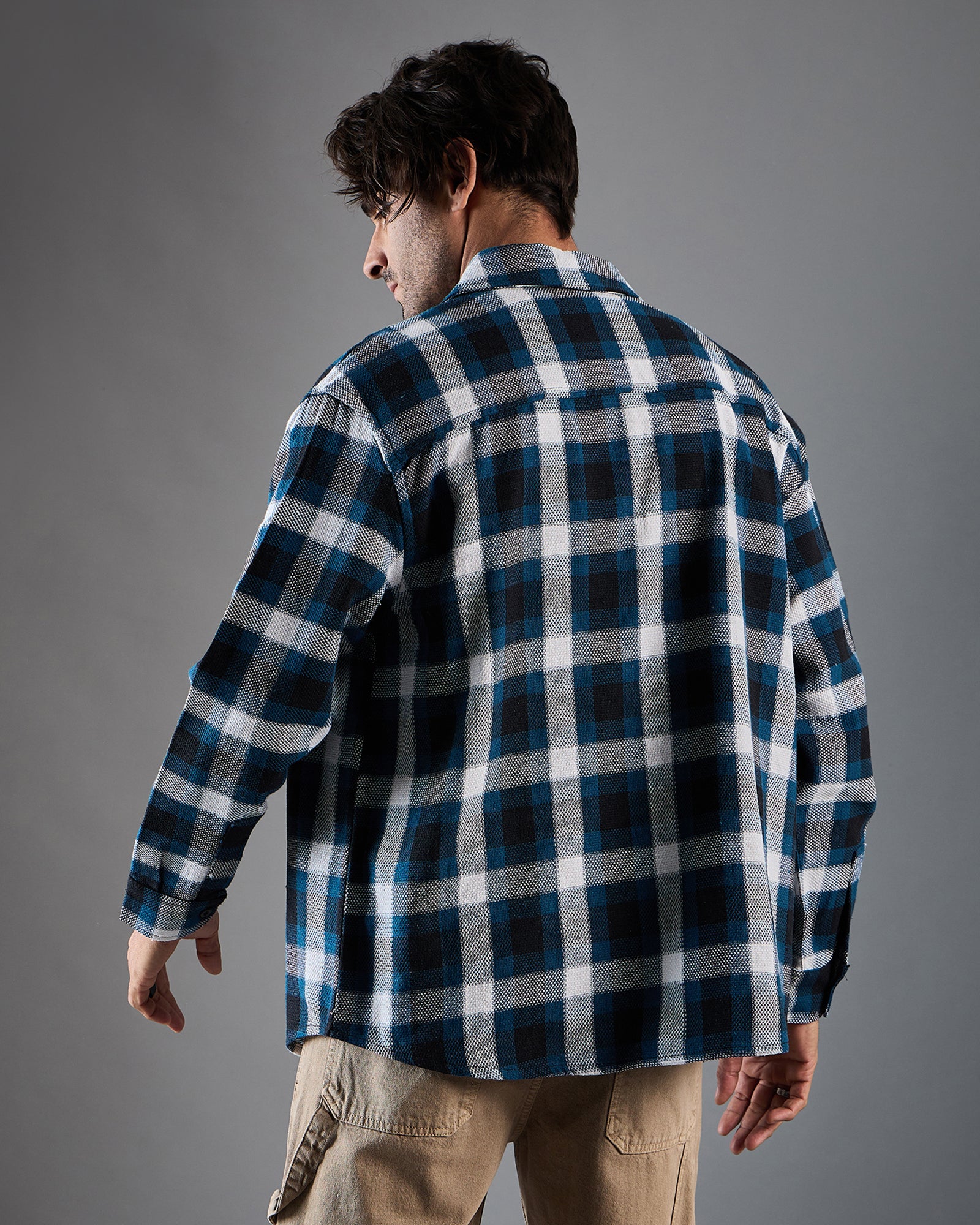 Chimpaaanzee Men White & Blue Oversized Shirt