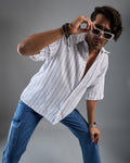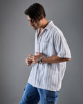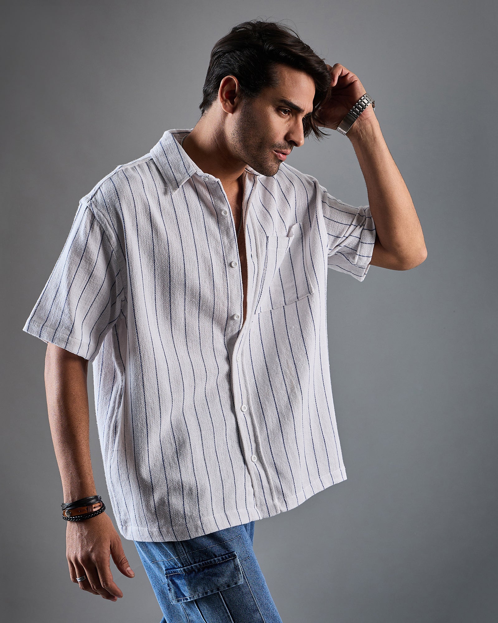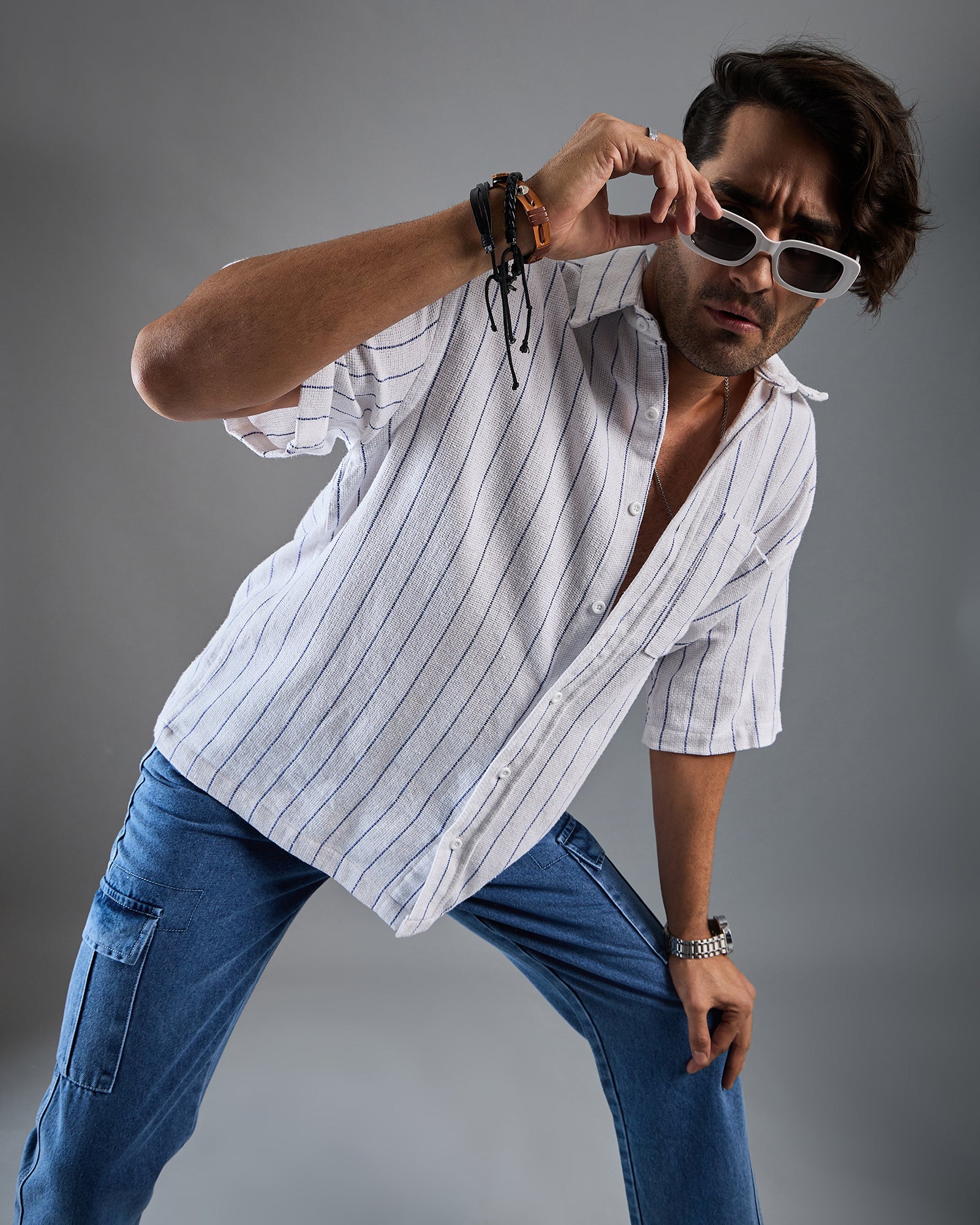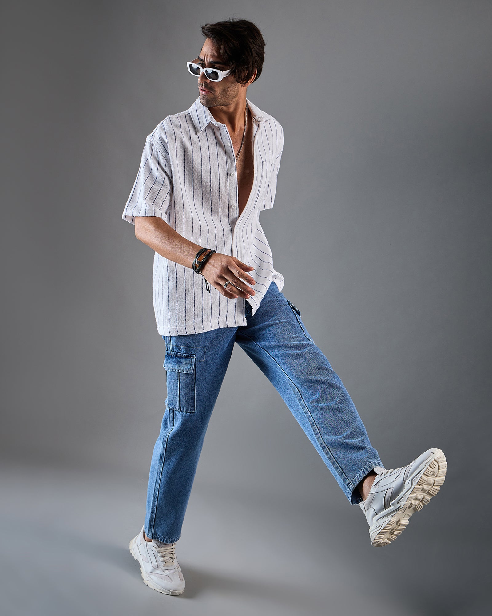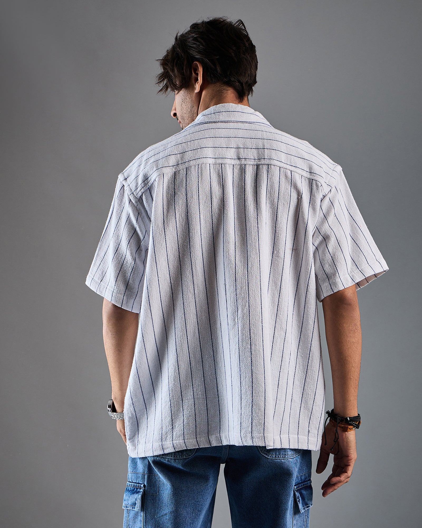Chimpaaanzee Men White & Blue Oversized Shirt