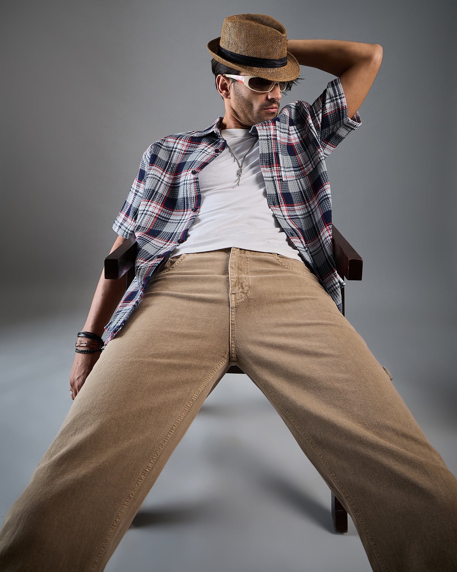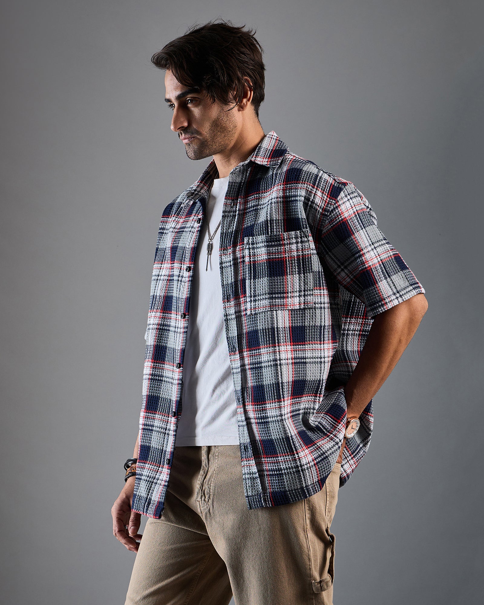 Chimpaaanzee Men Navy & Grey Oversized Shirt