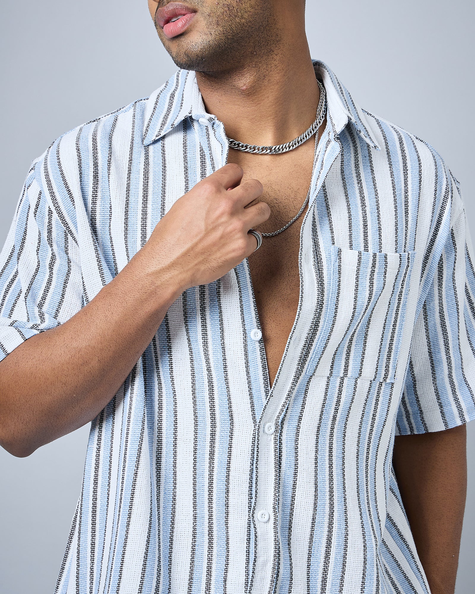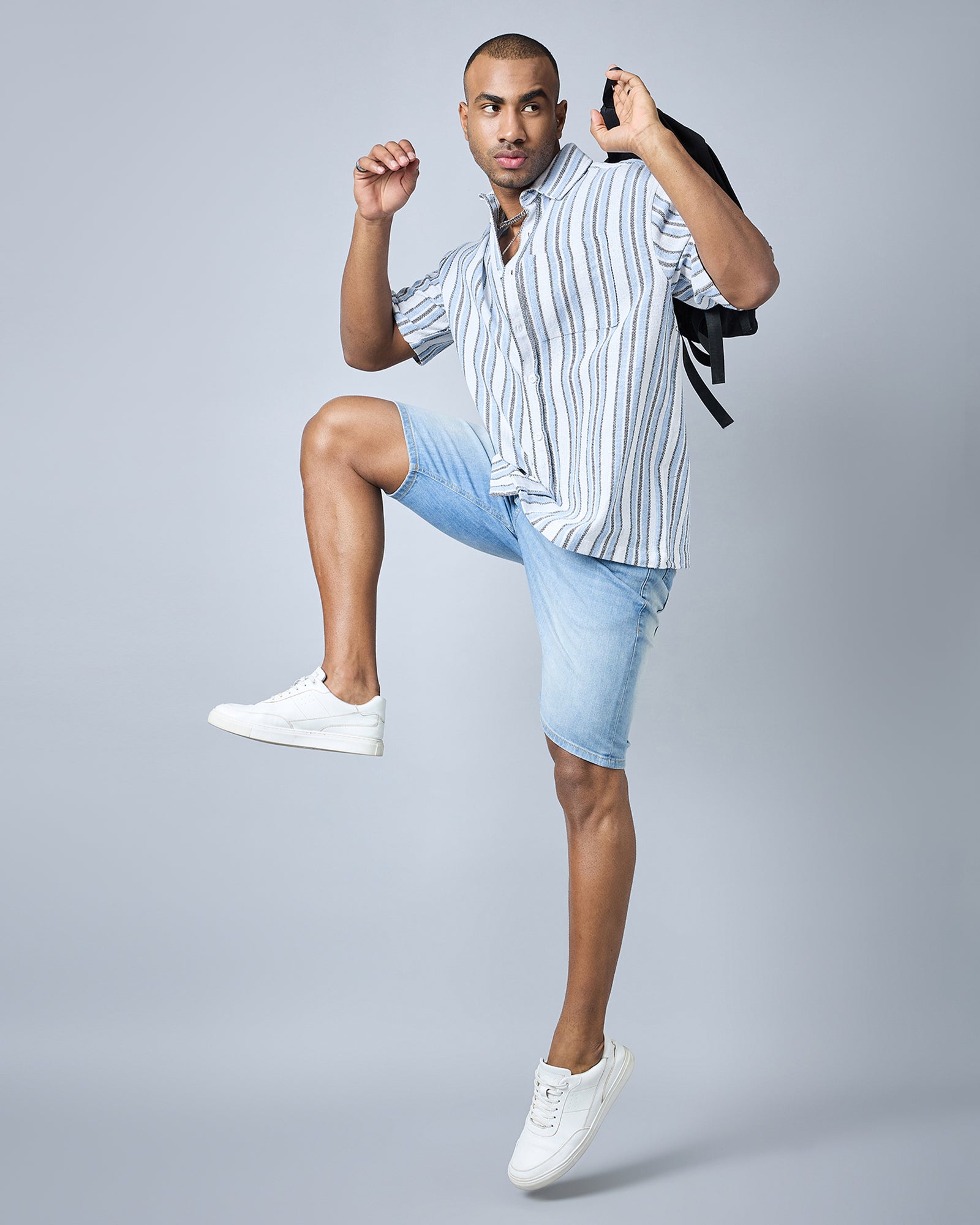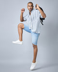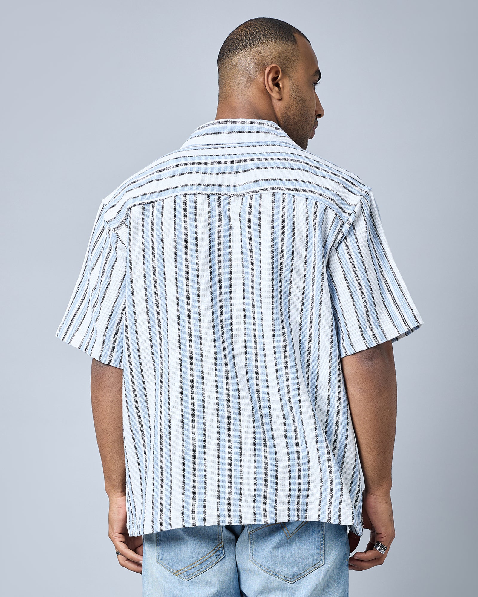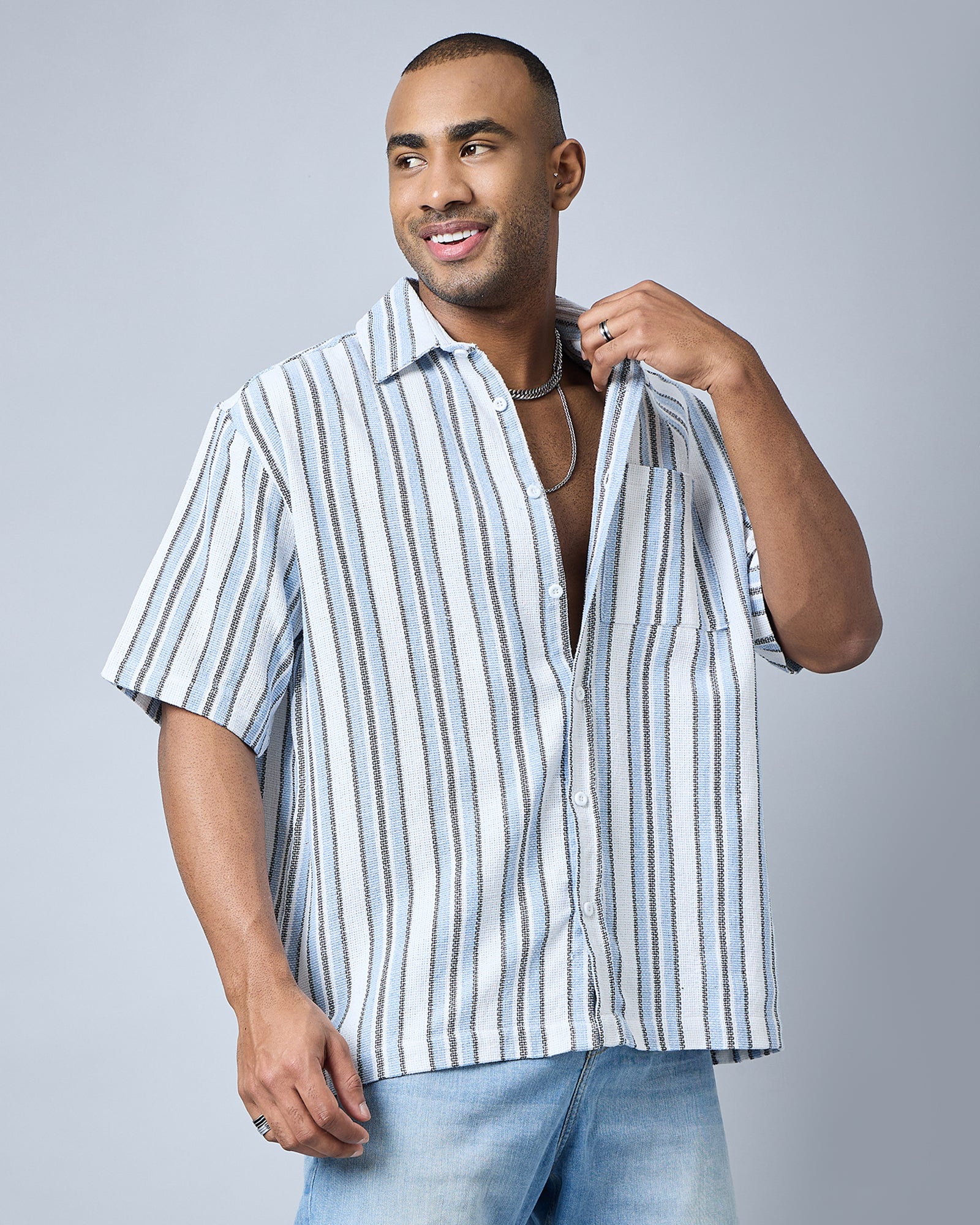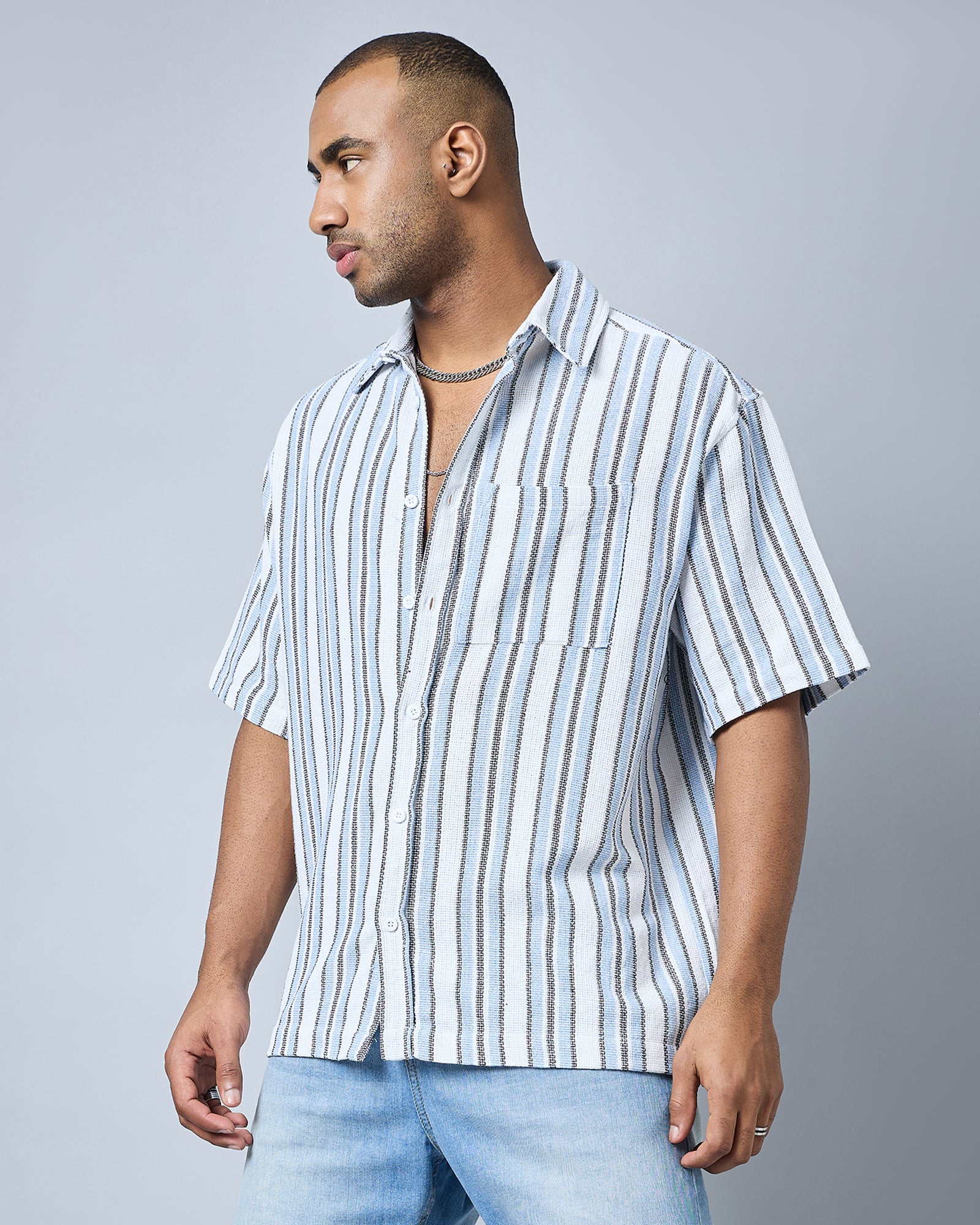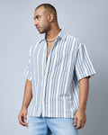 Chimpaaanzee Men White & Blue Oversized Shirt