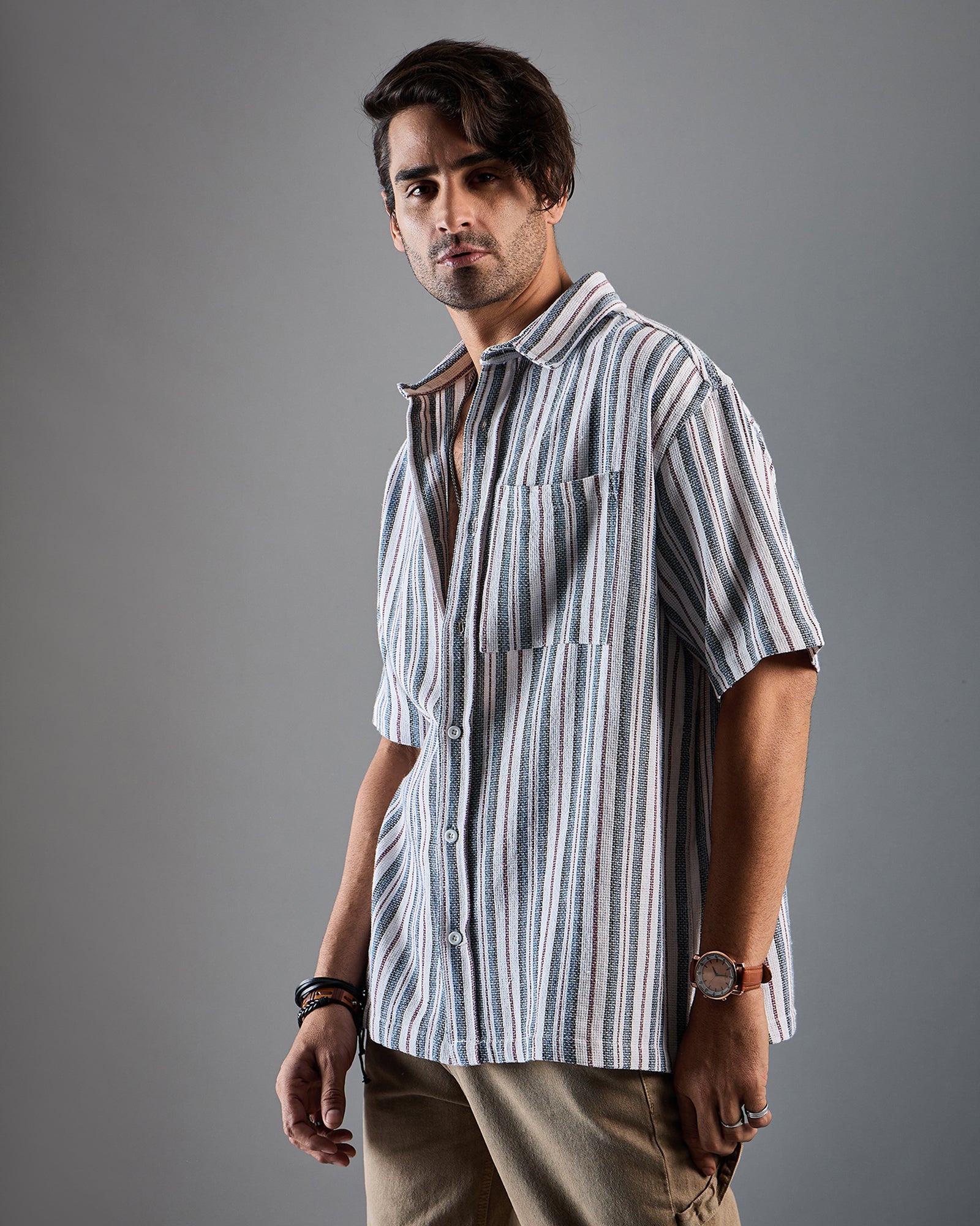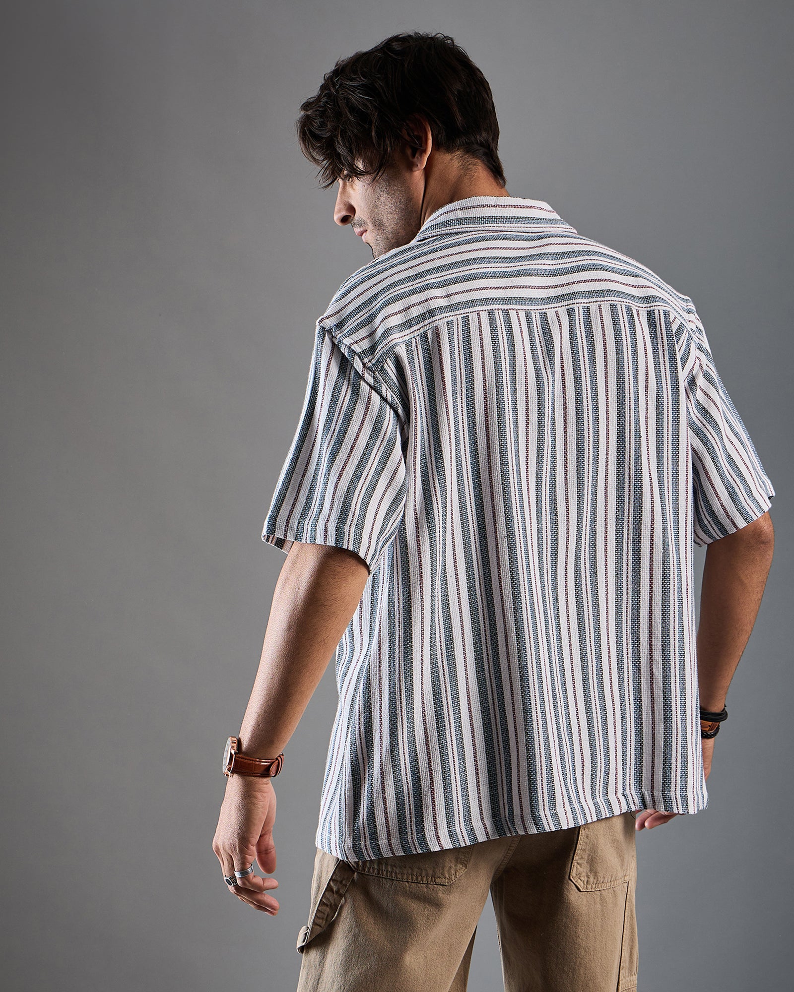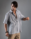 Chimpaaanzee Men White & Blue Oversized Shirt