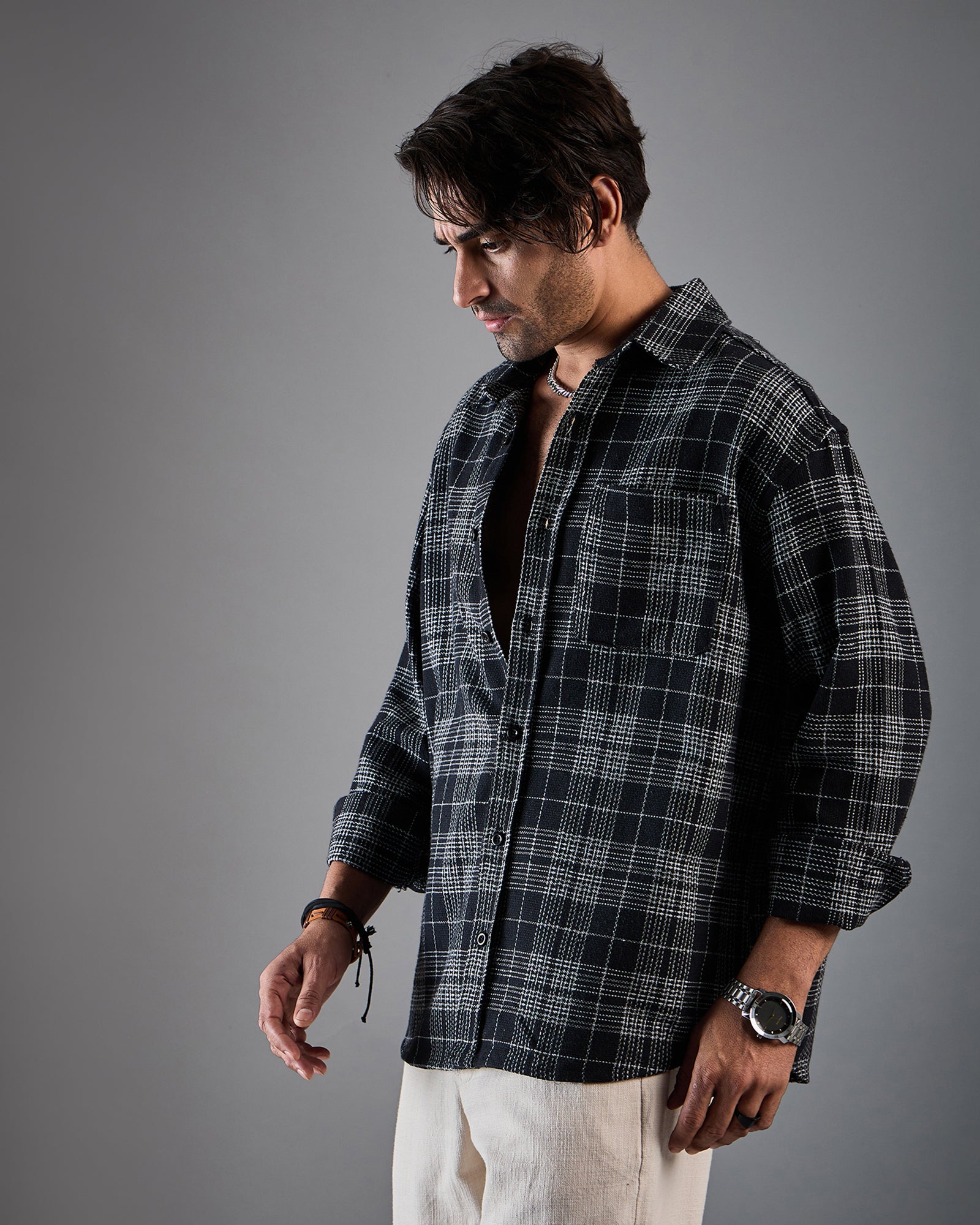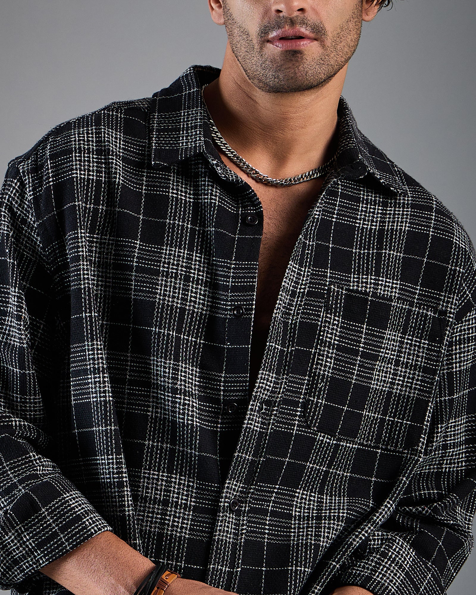 Chimpaaanzee Men Black & Grey Oversized Shirt