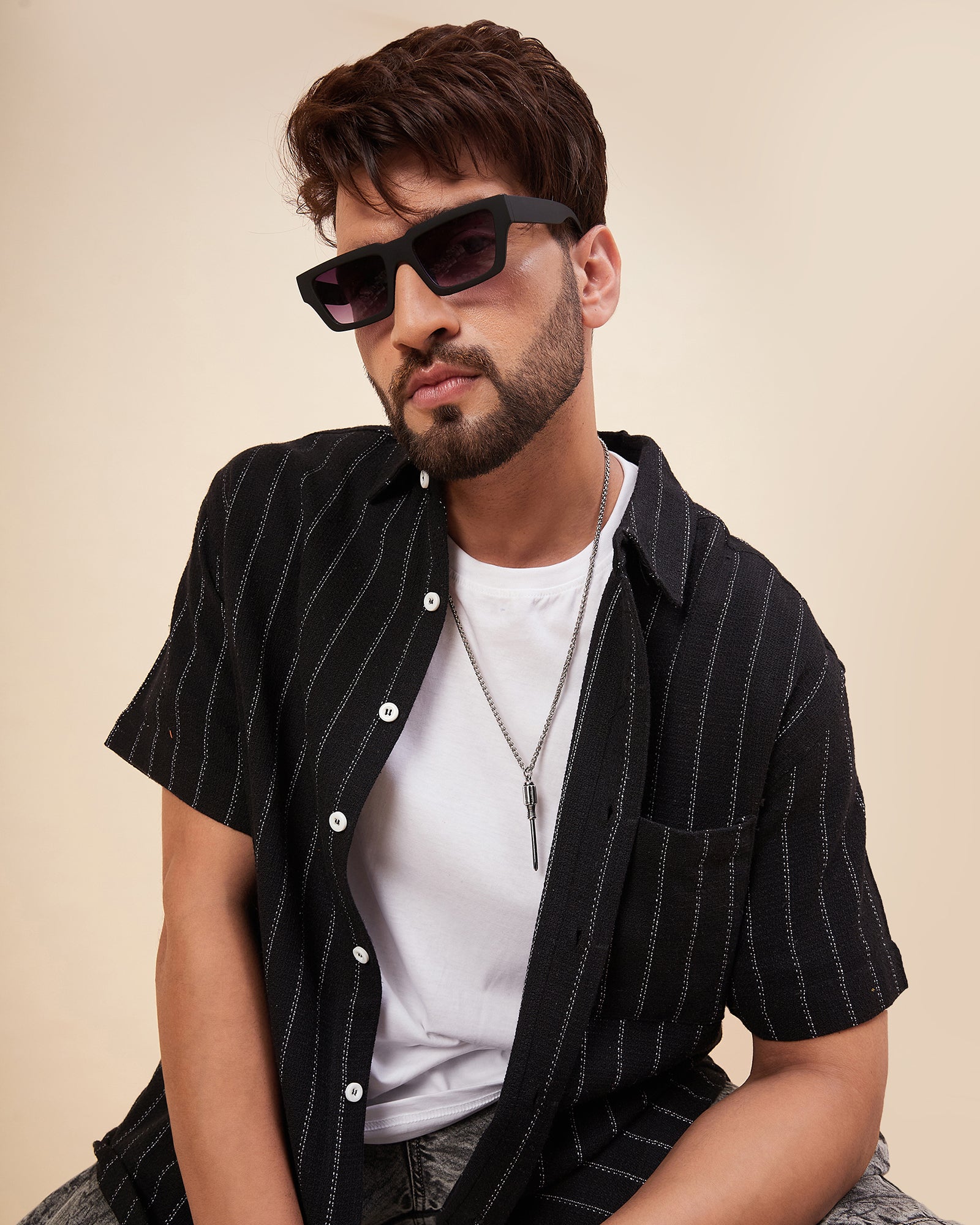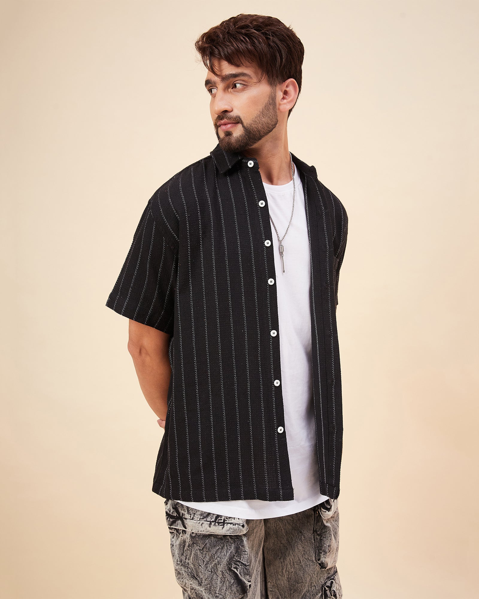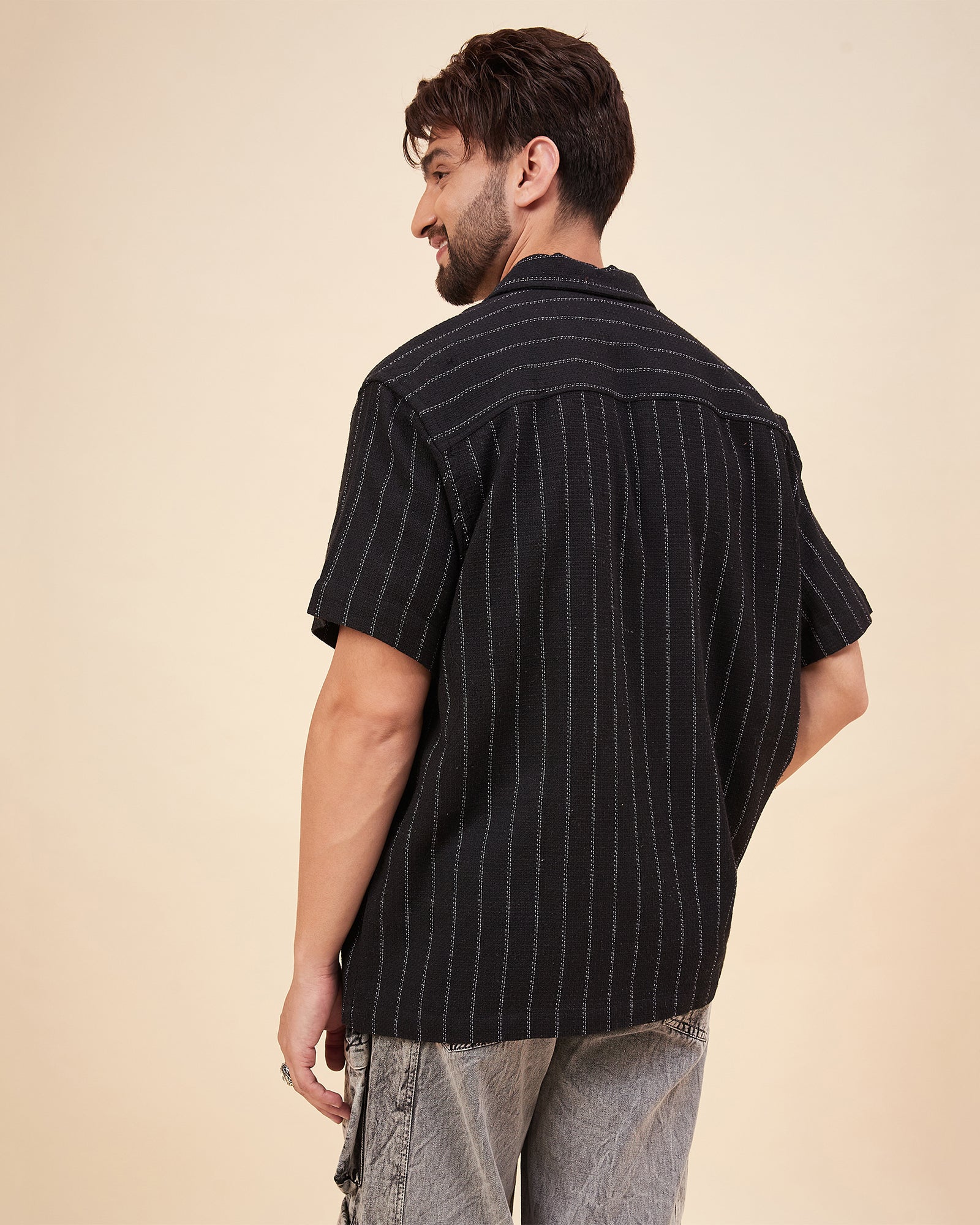 Chimpaaanzee Men Black & White Oversized Fit Shirt