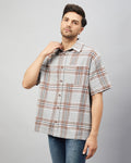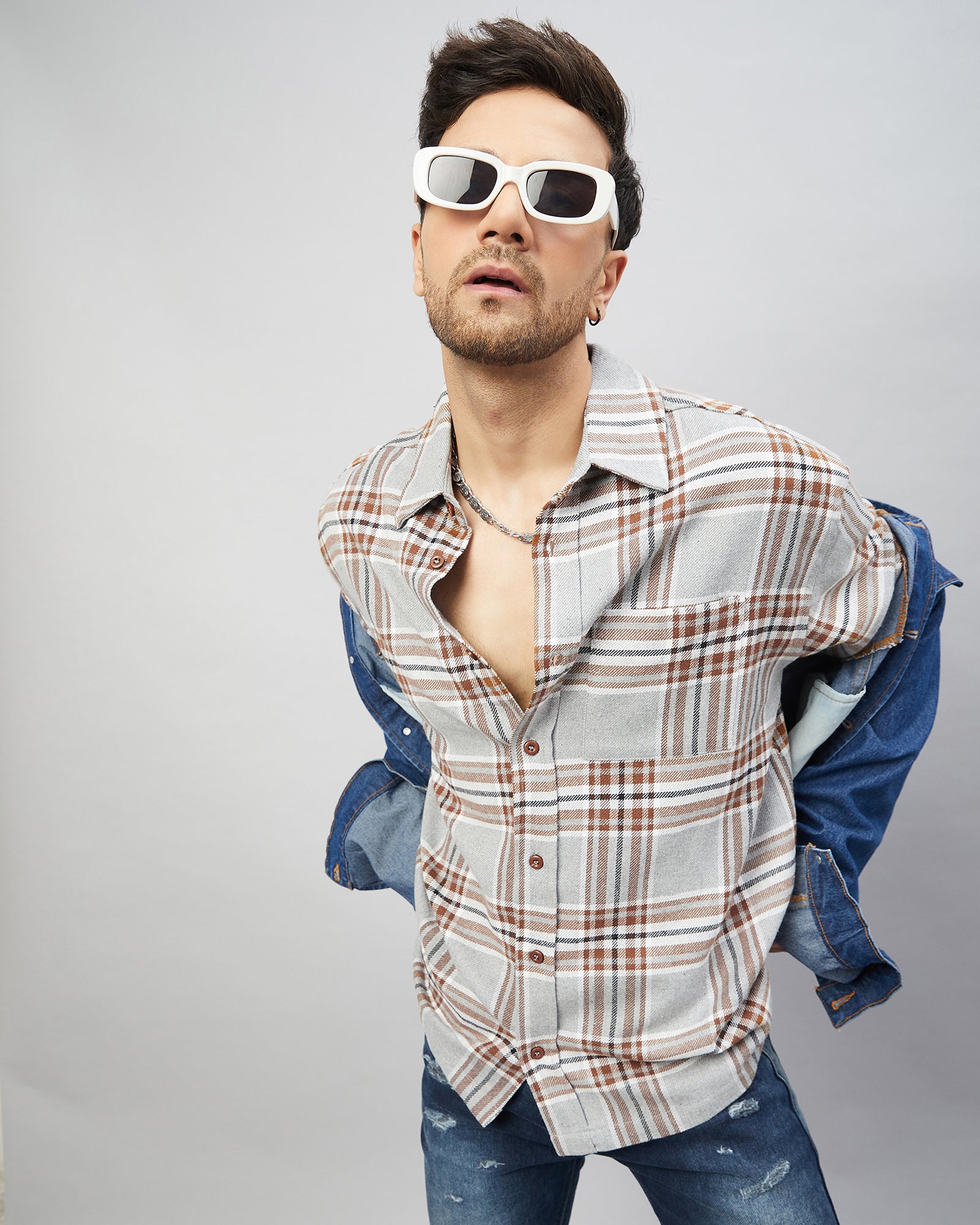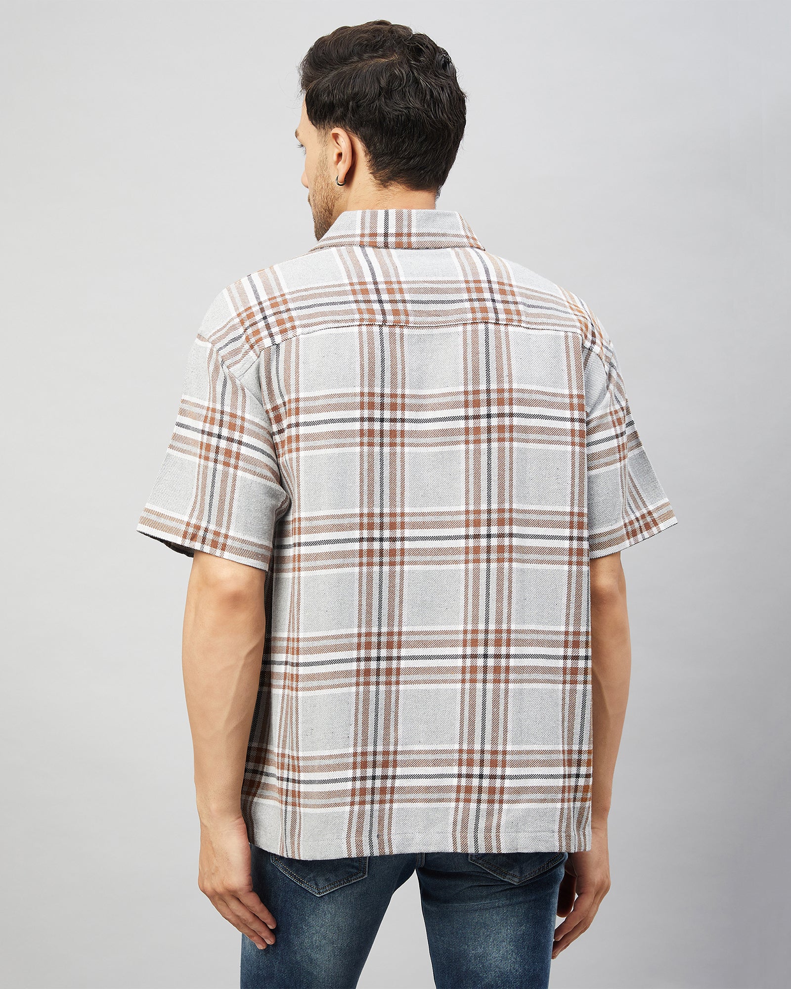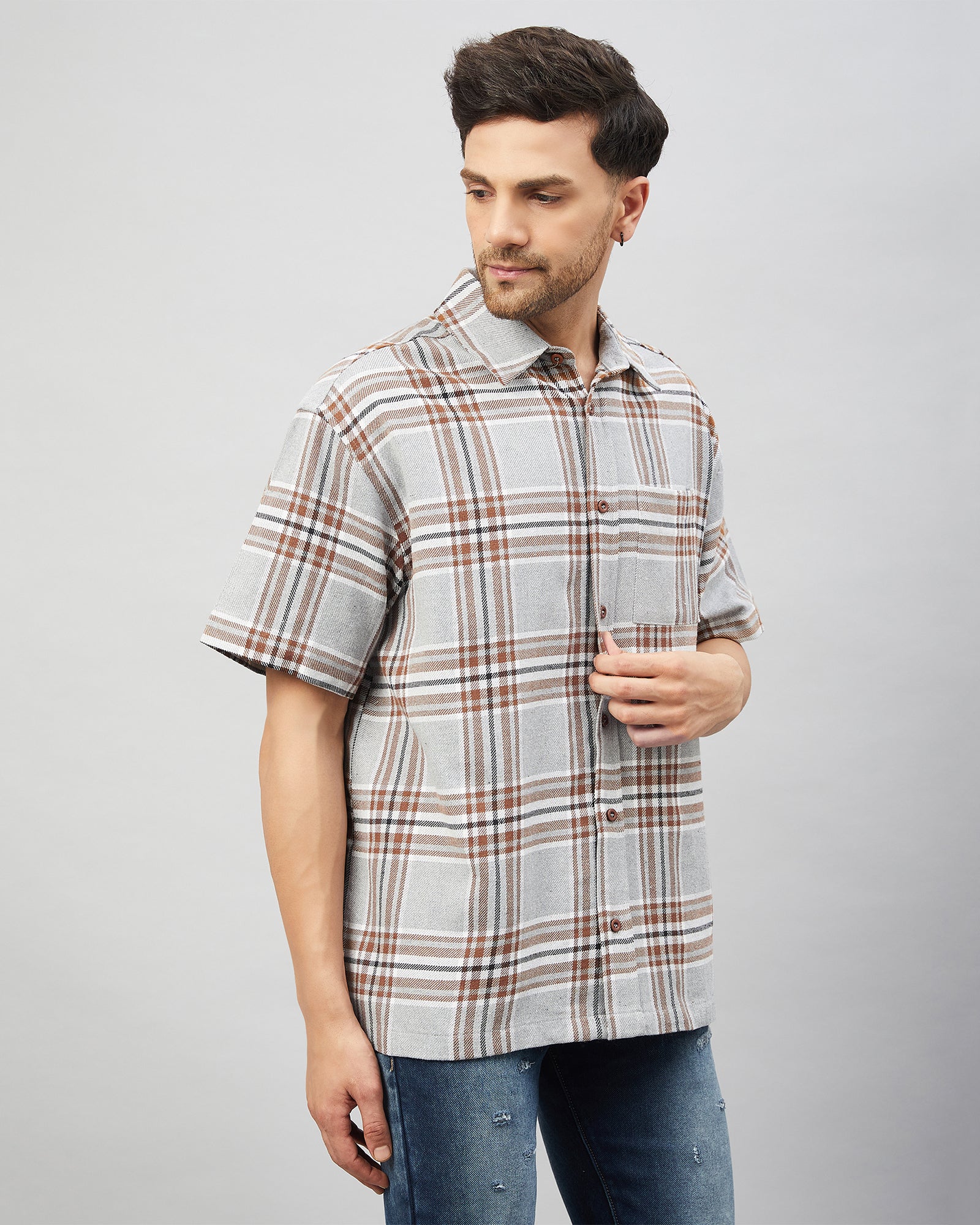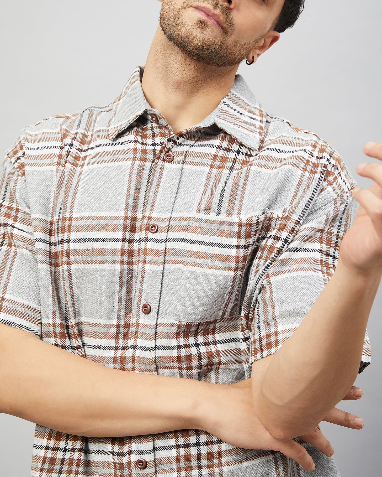 Chimpaaanzee Men Grey & Brown Oversized Fit Shirt