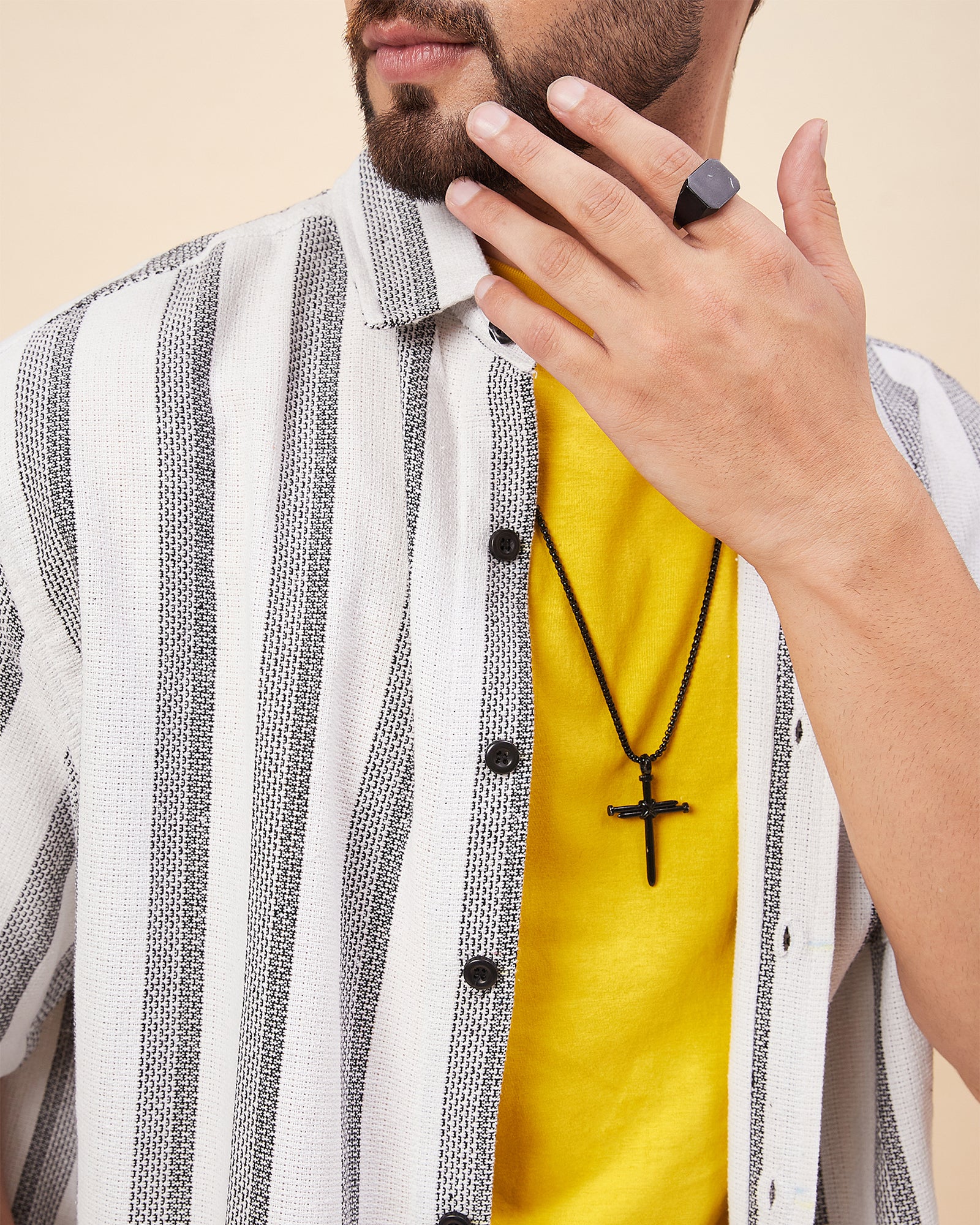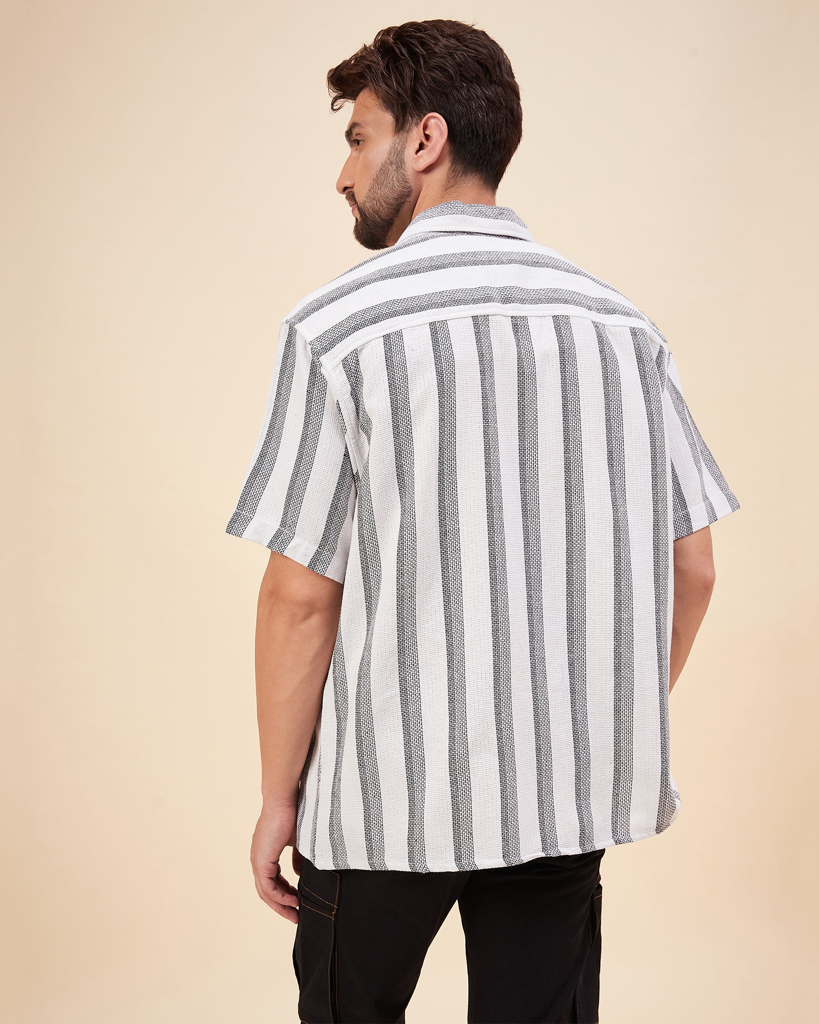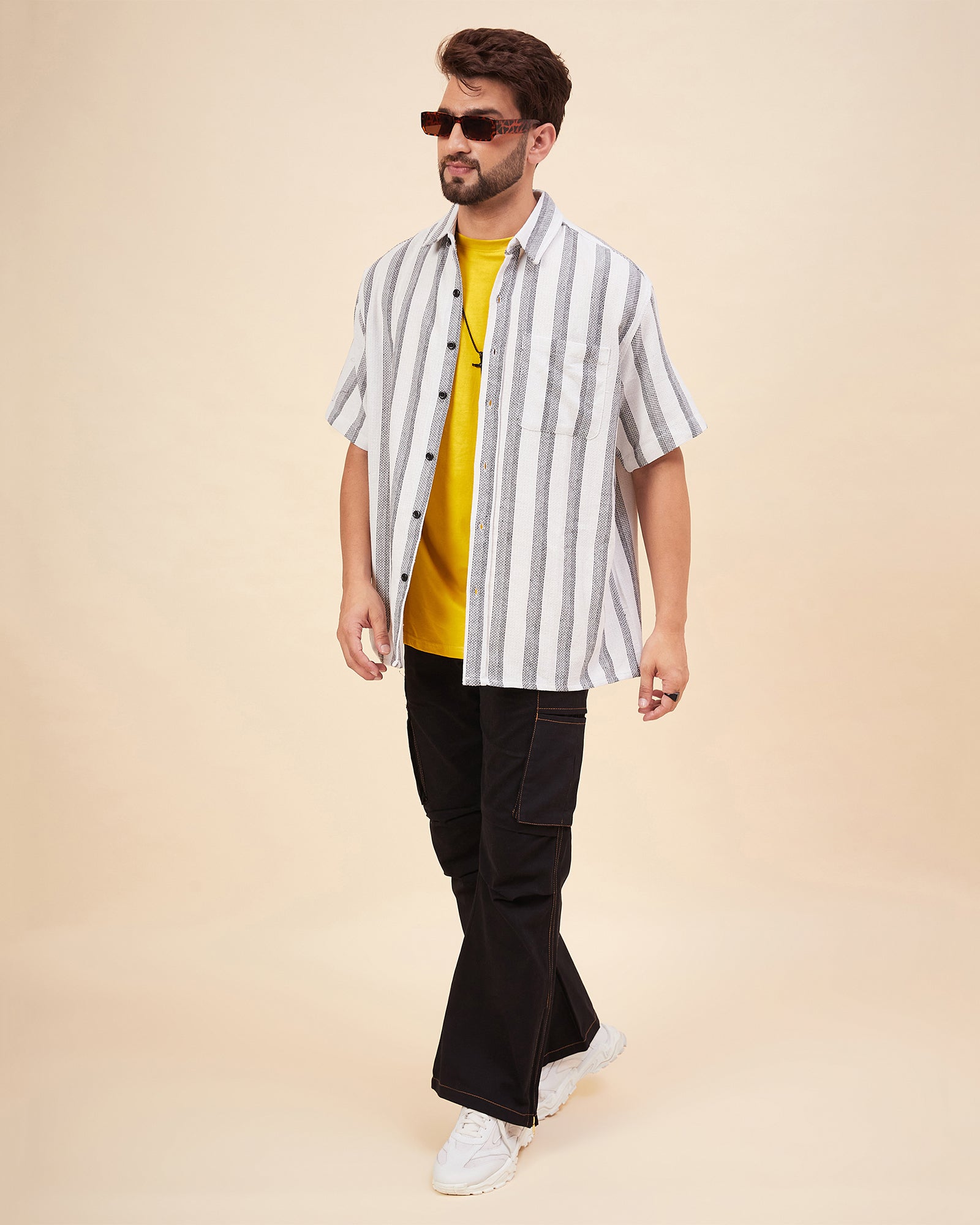 Chimpaaanzee Men White & Black Oversized Fit Shirt