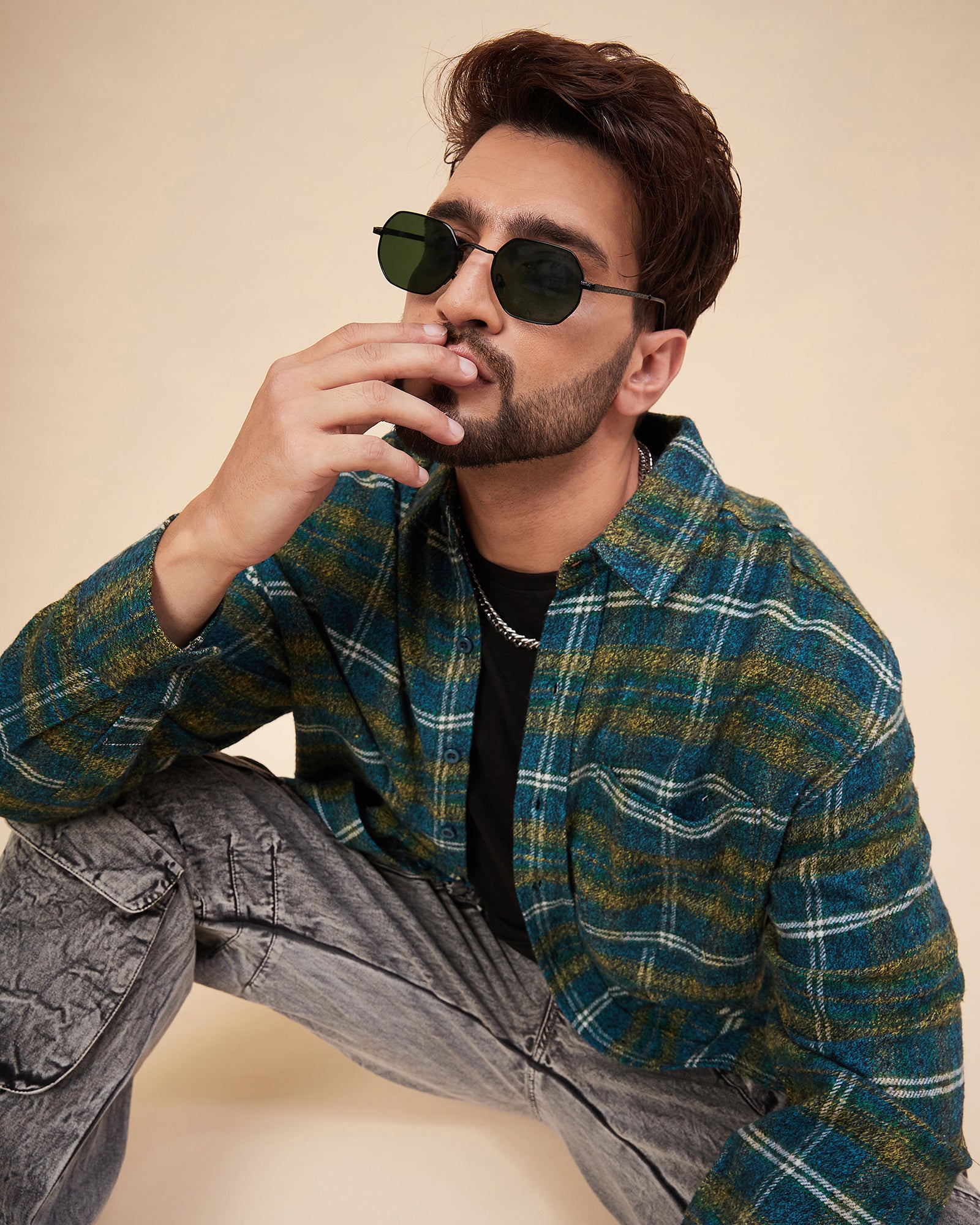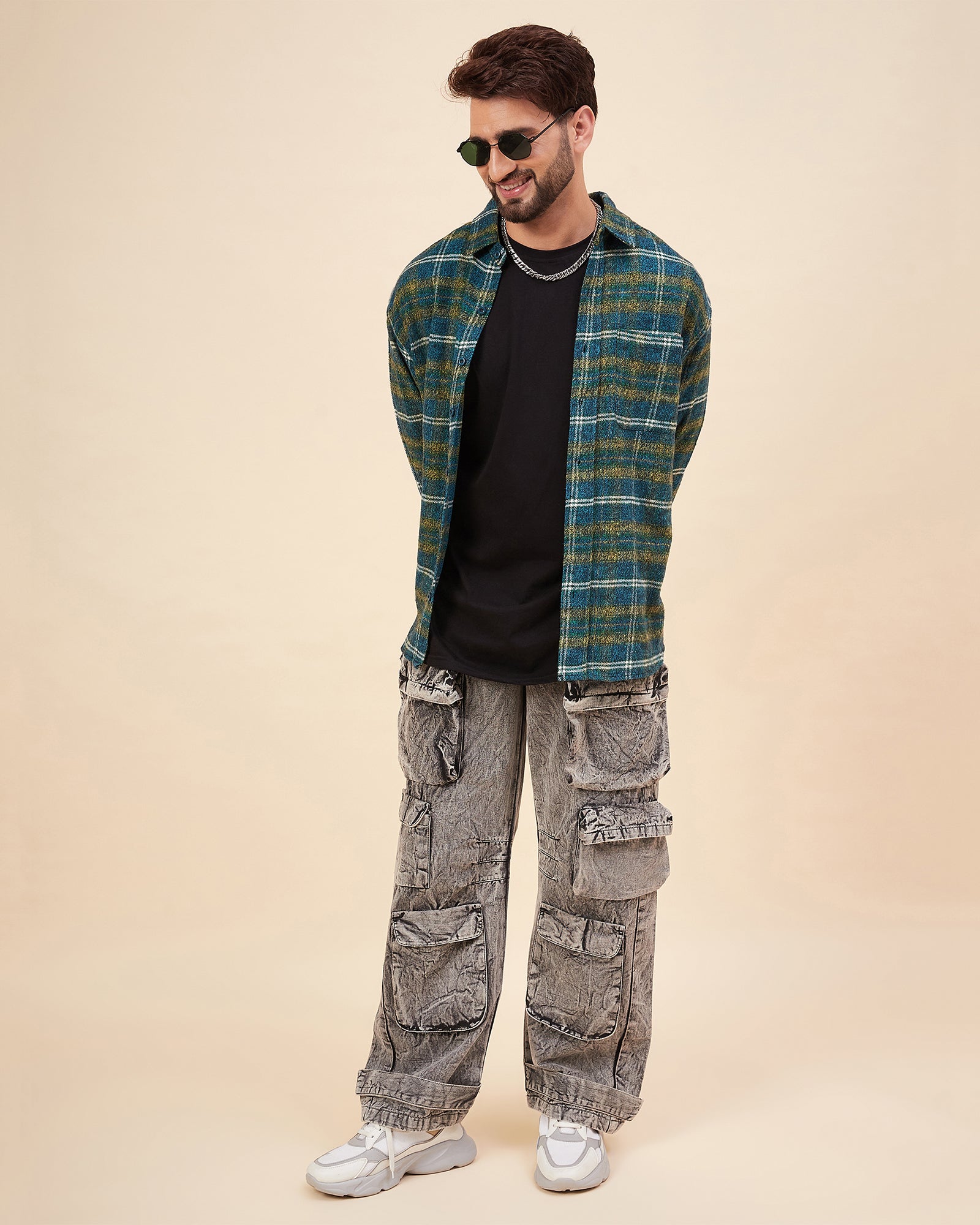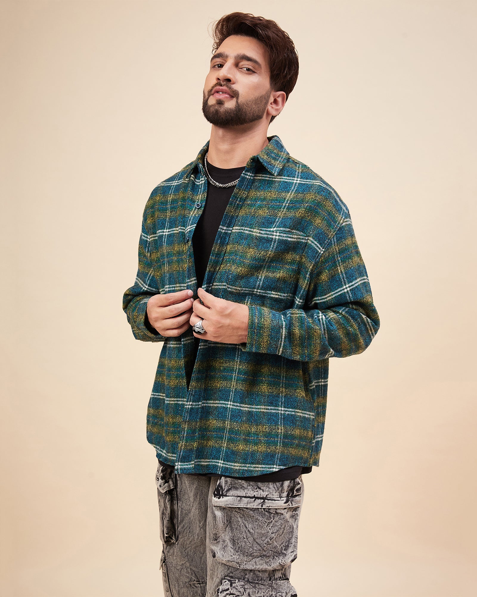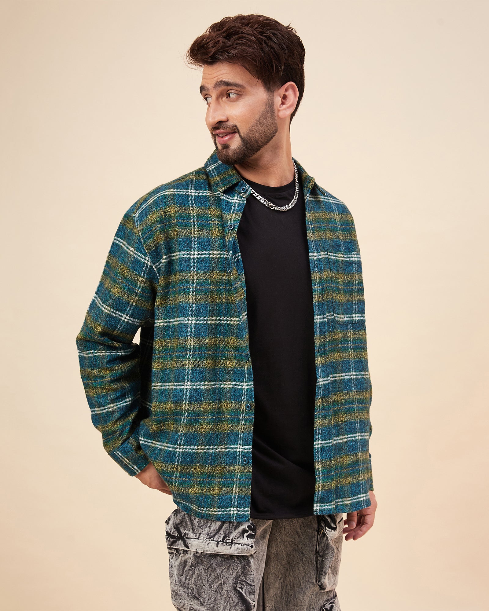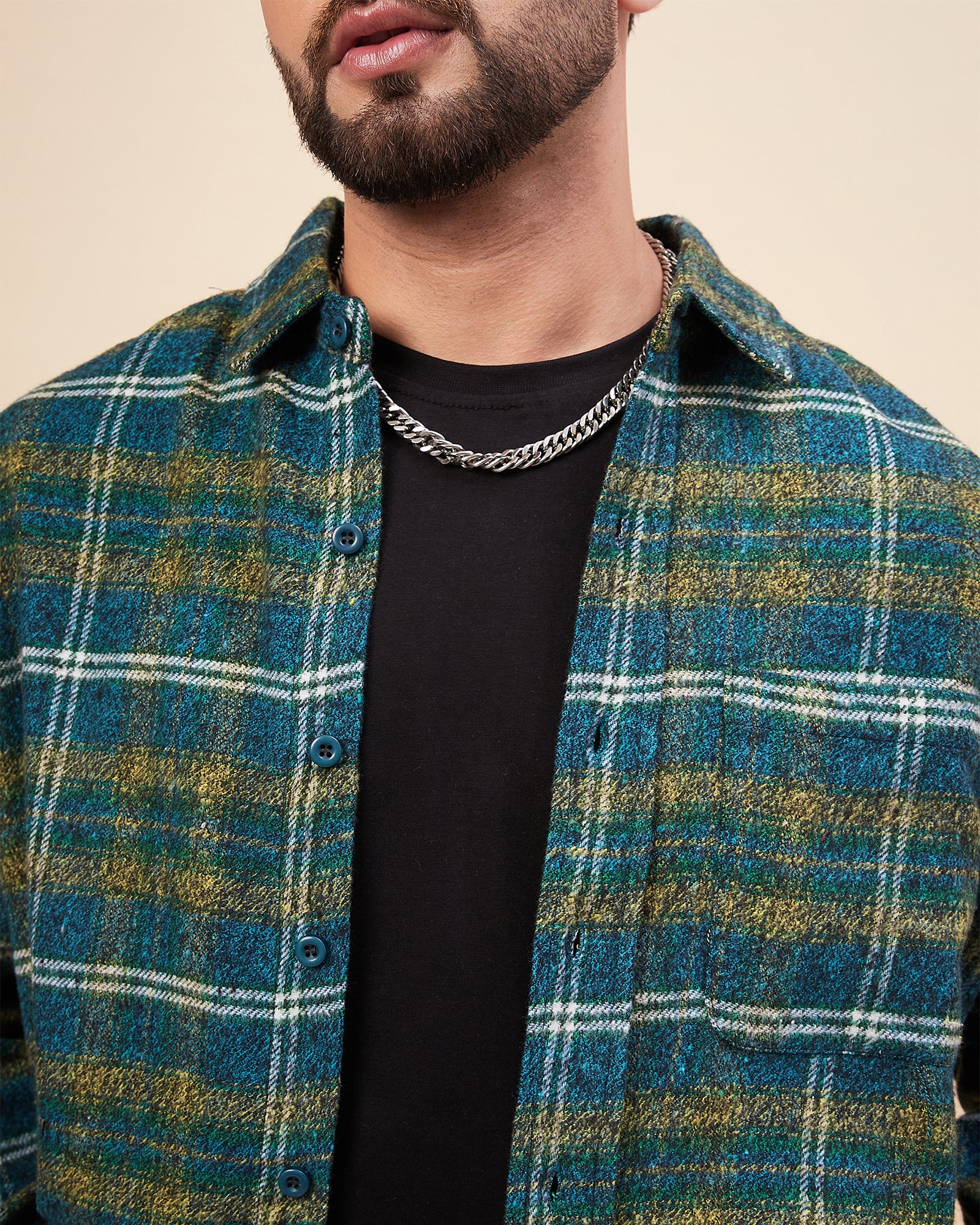 Chimpaaanzee Men Skyblue & Yellow Oversized Fit Shirt