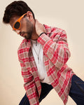 Chimpaaanzee Men Red & Brown Oversized Fit Shirt