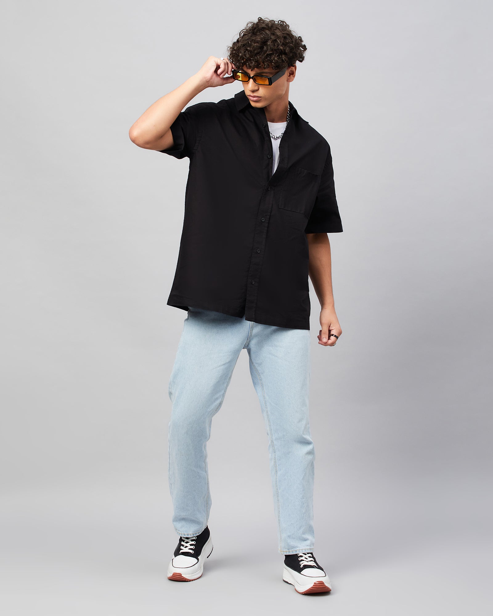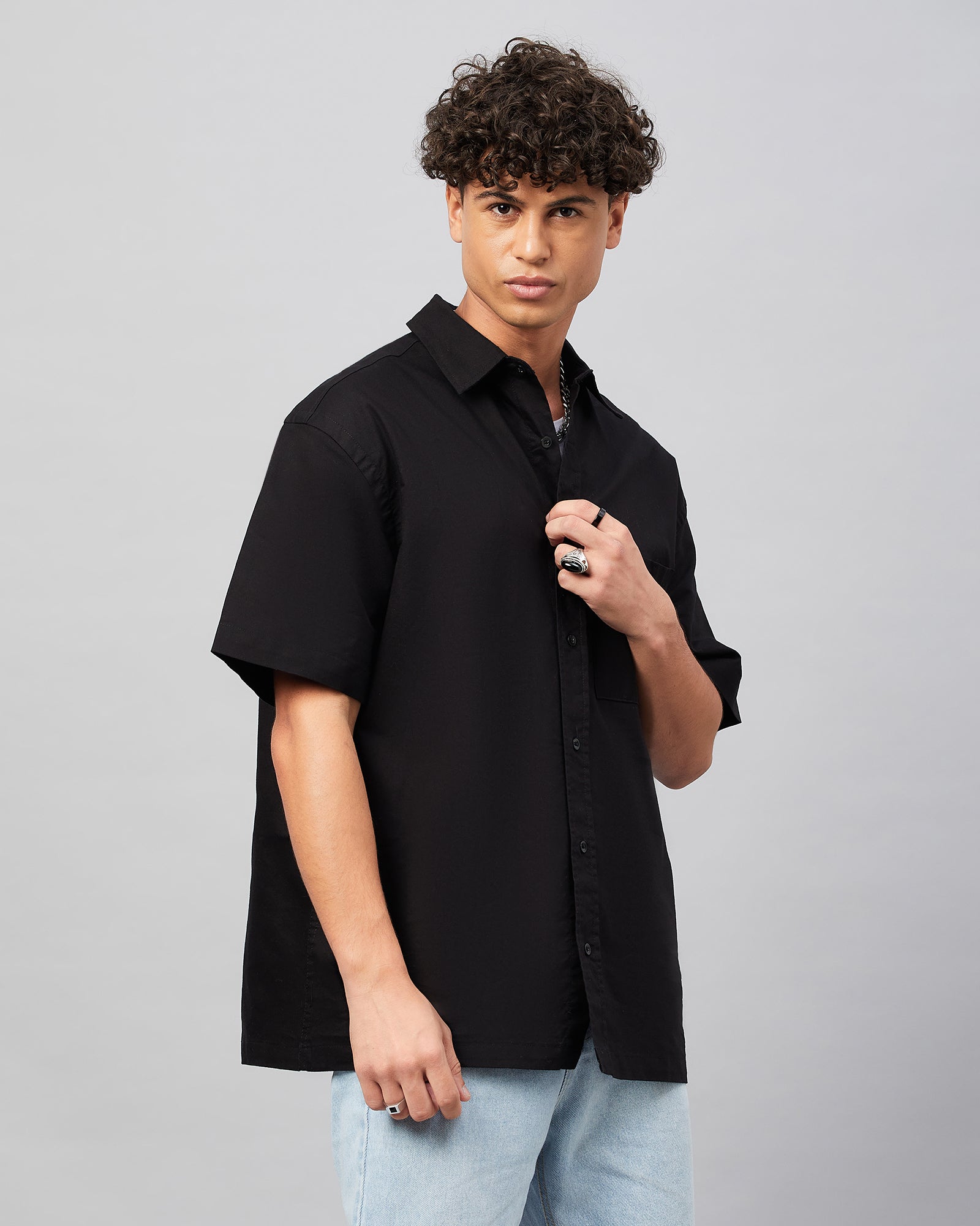 Chimpaaanzee Men Black Oversized Fit Shirt