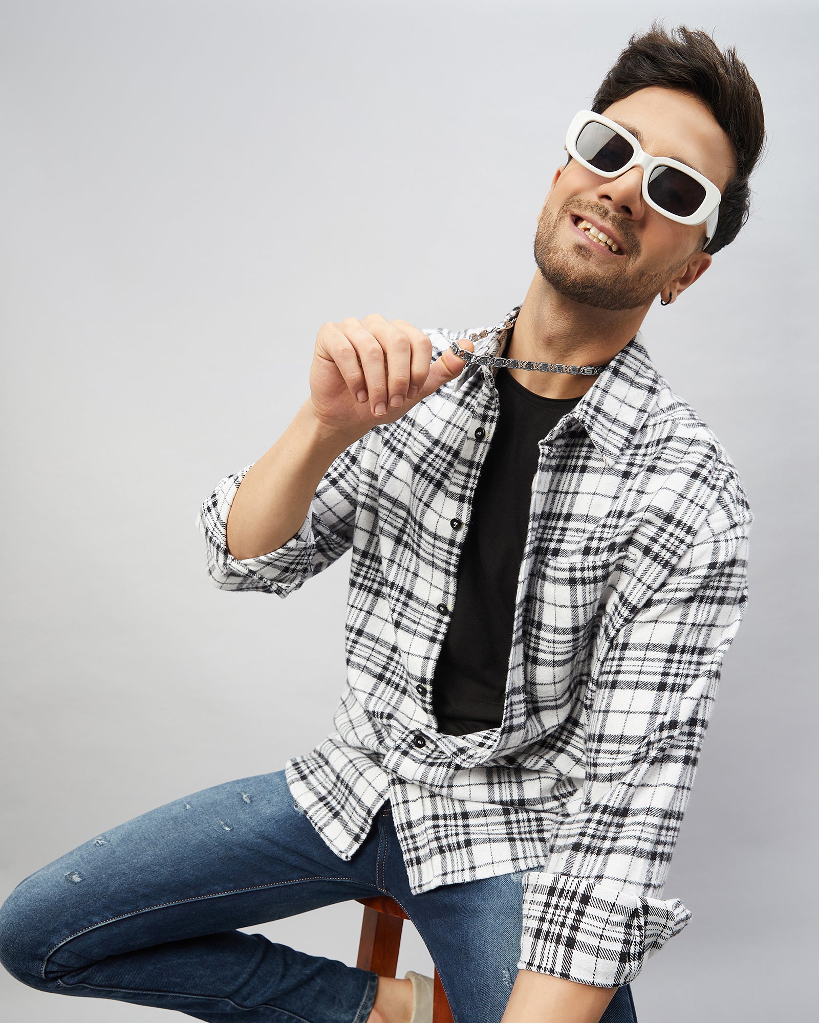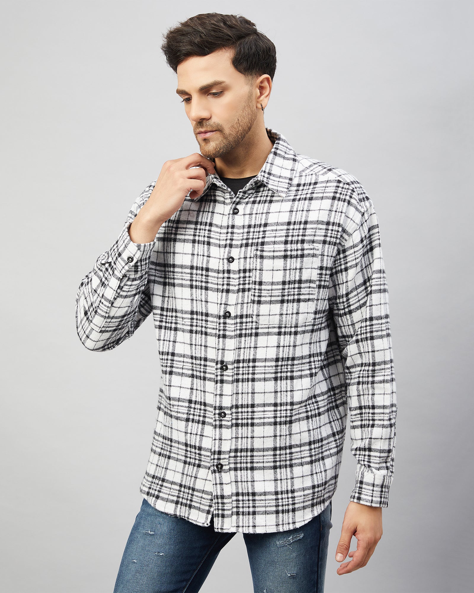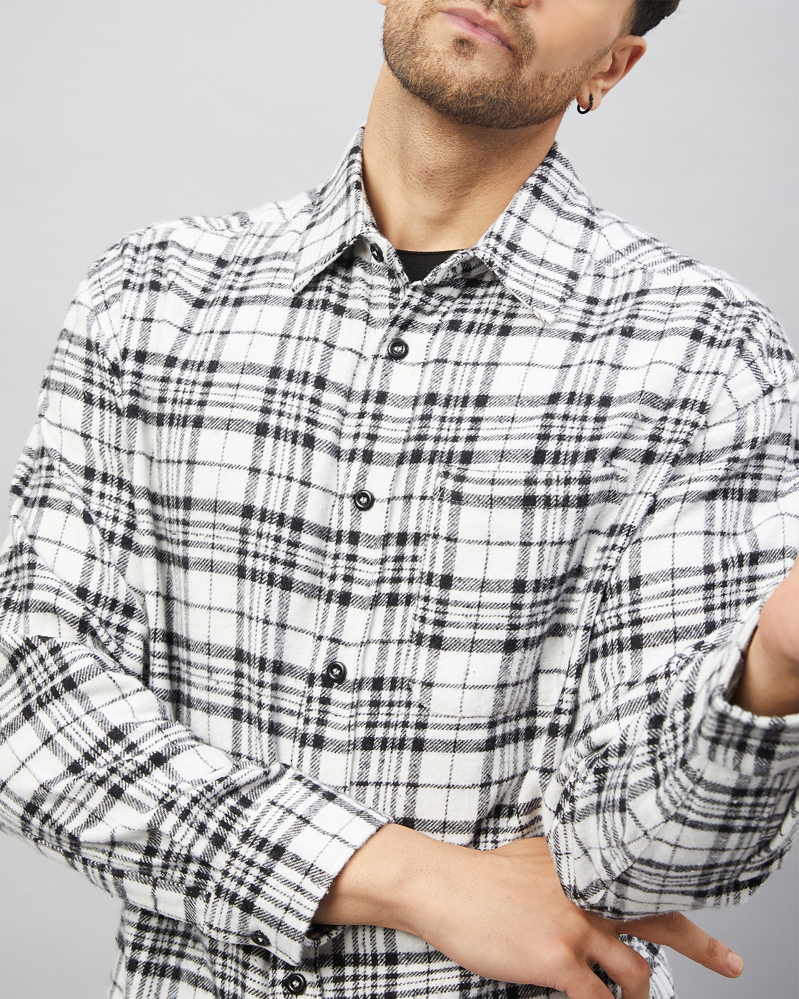 Chimpaaanzee Men Black & White Oversized Fit Shirt