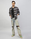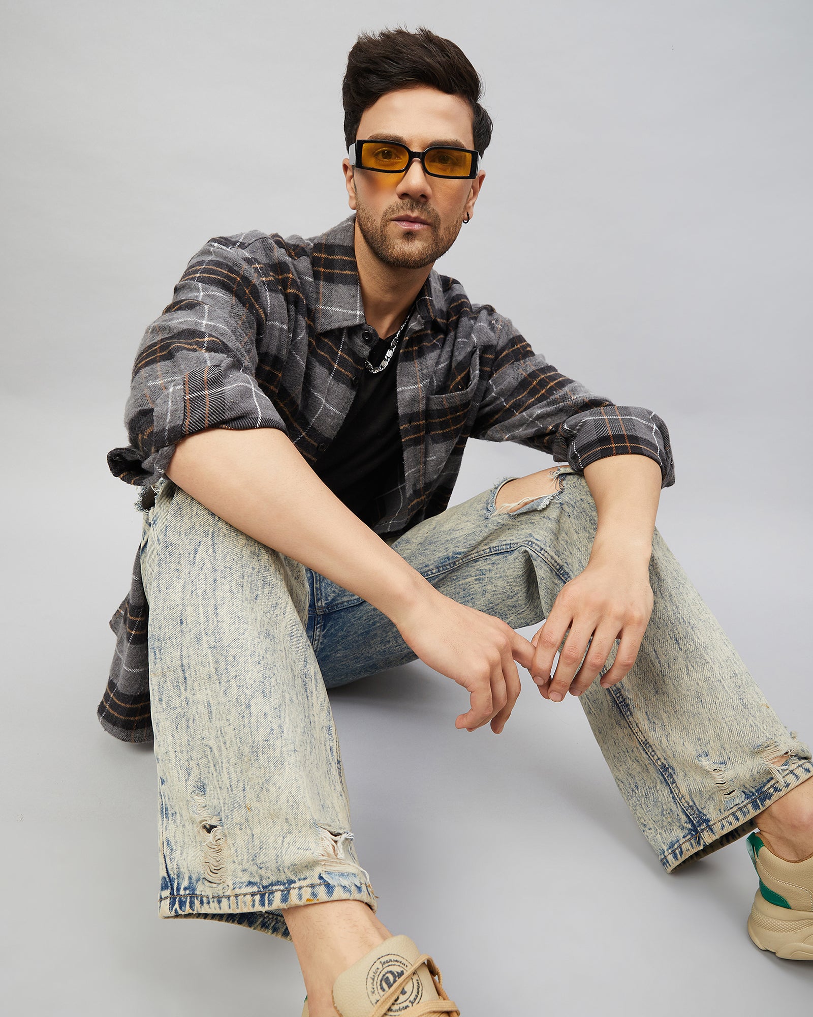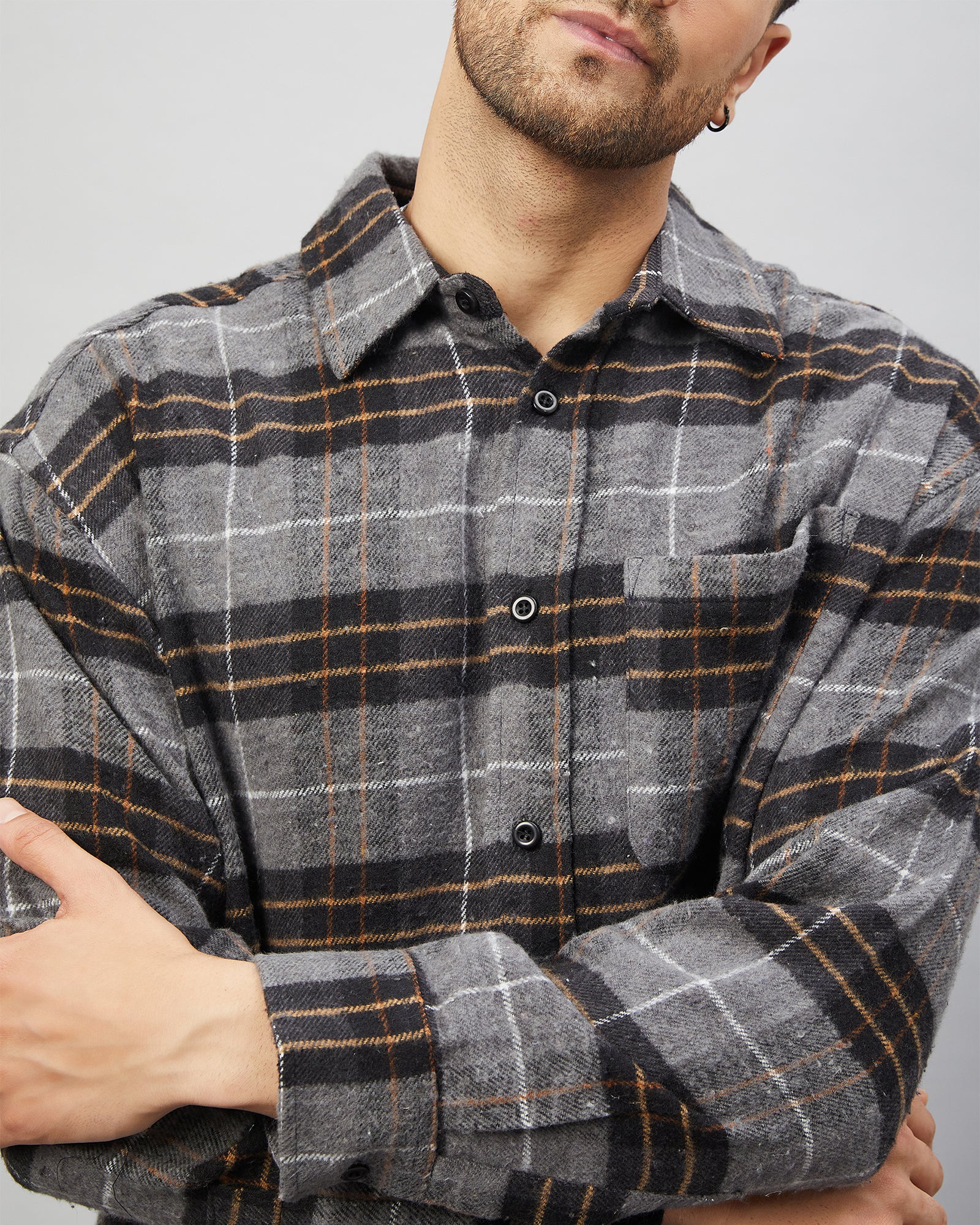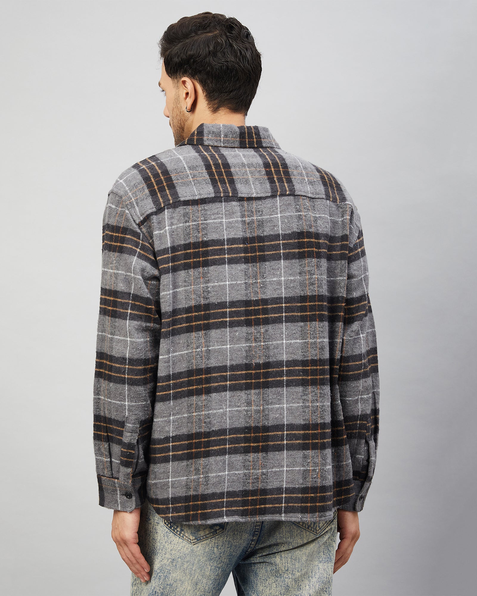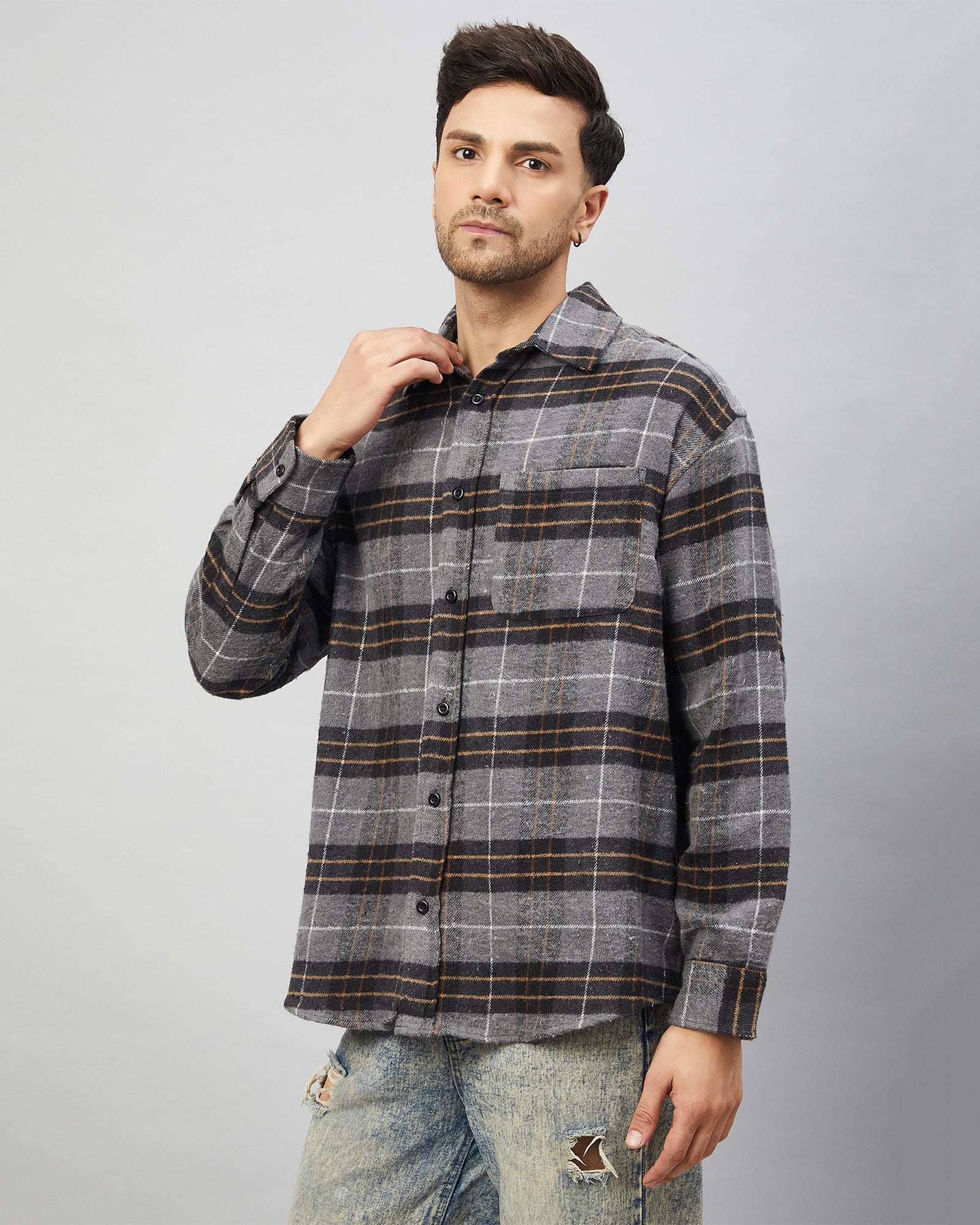 Chimpaaanzee Men Grey & Brown Oversized Fit Shirt