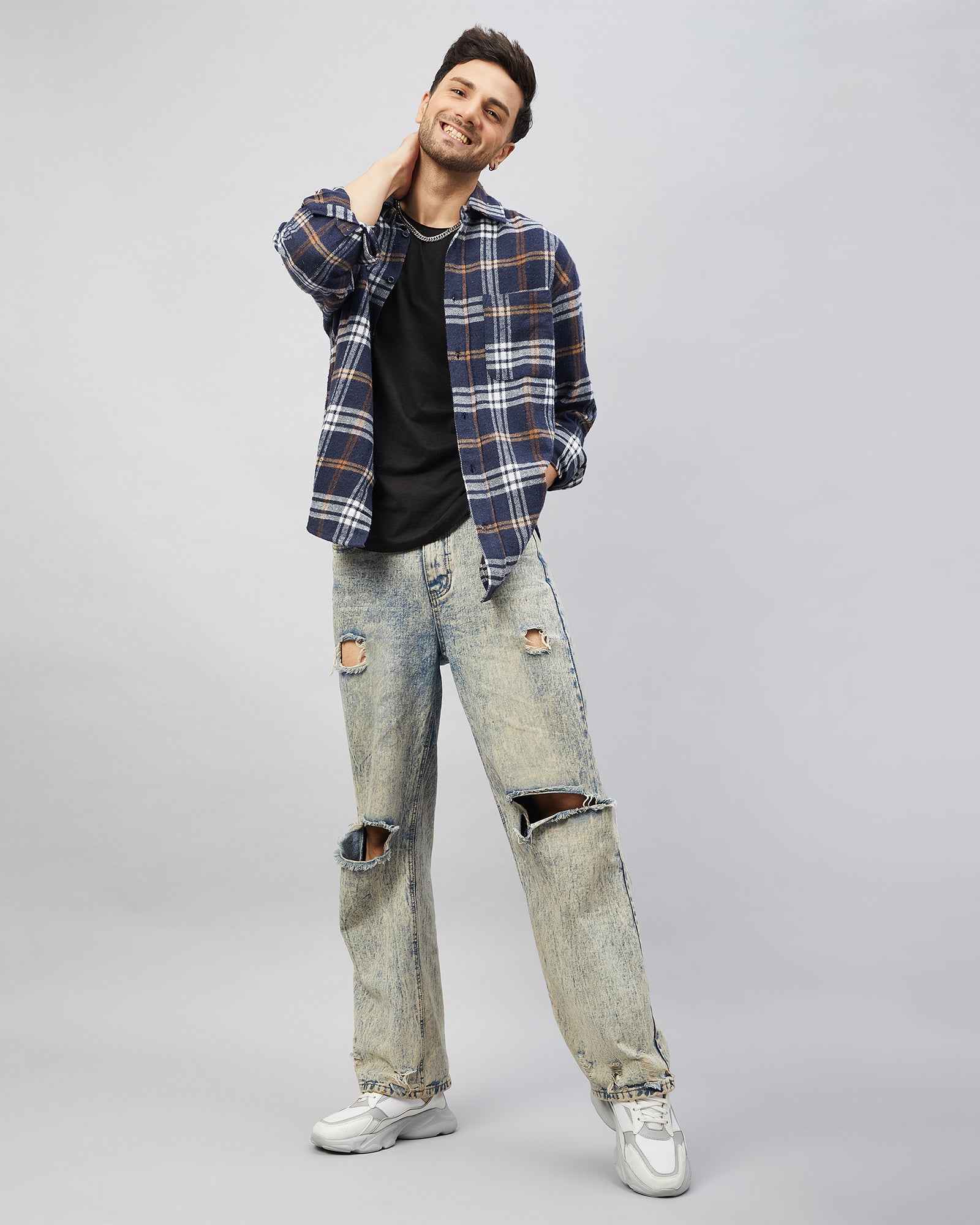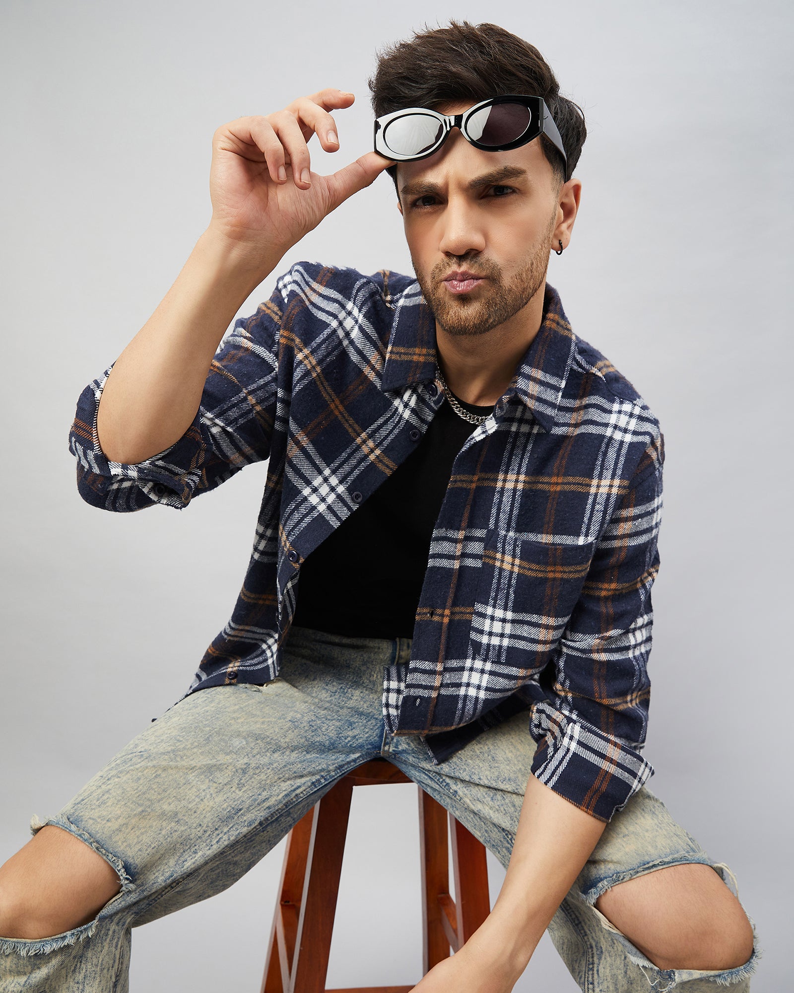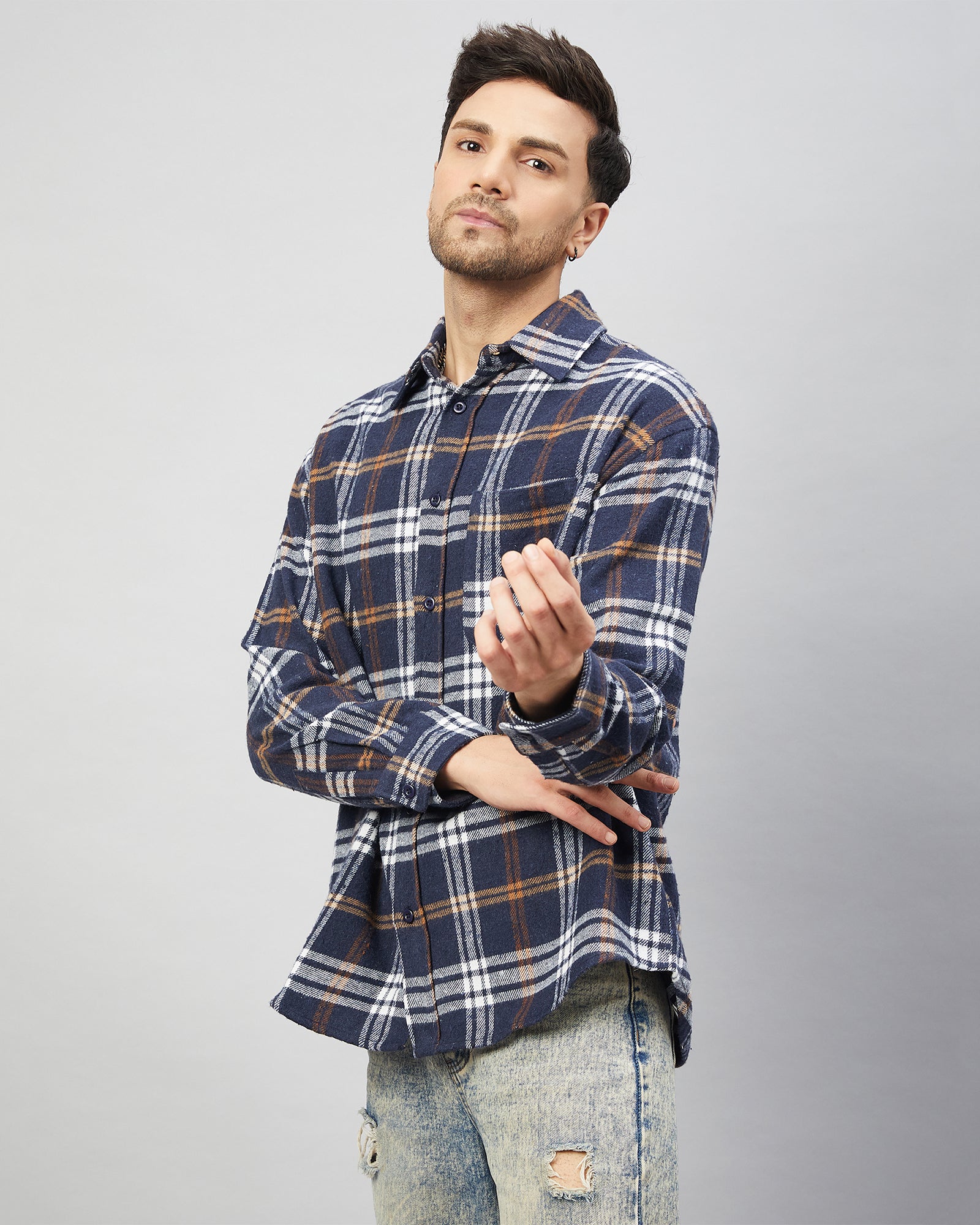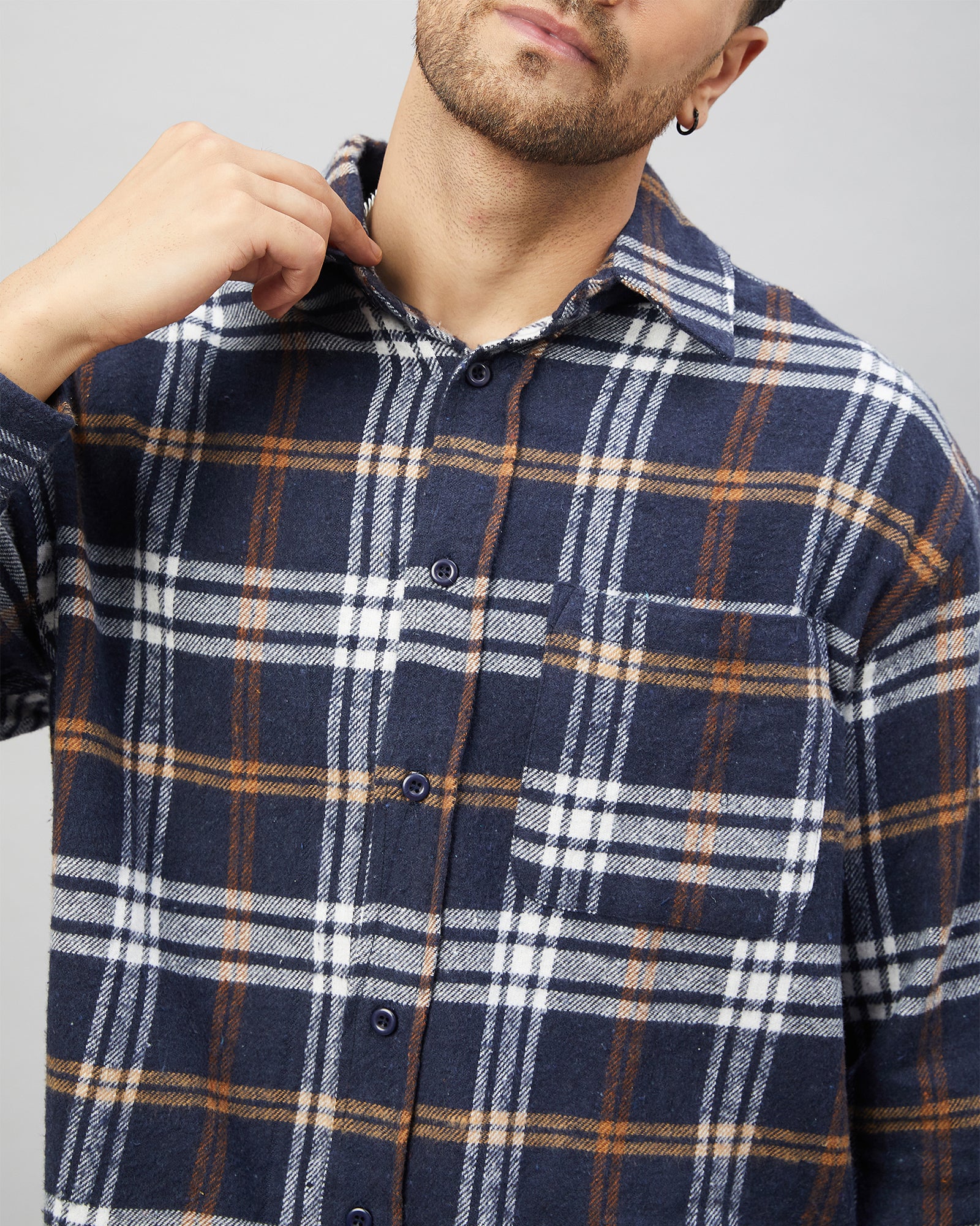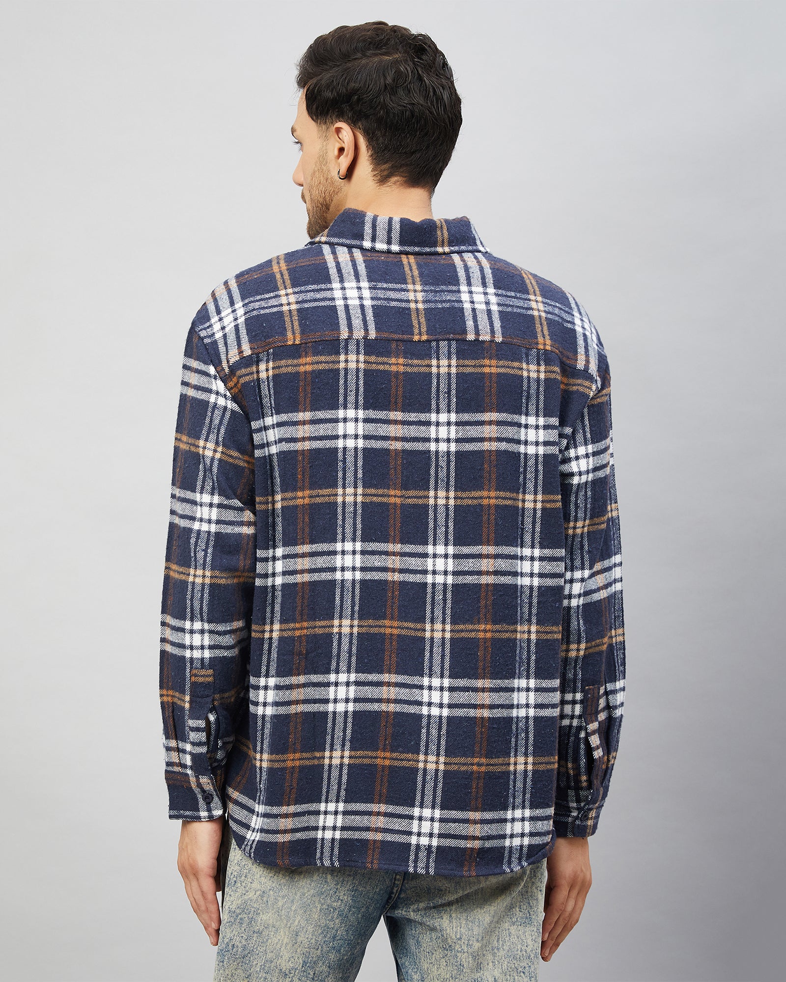 Chimpaaanzee Men Navy & Brown Oversized Fit Shirt