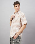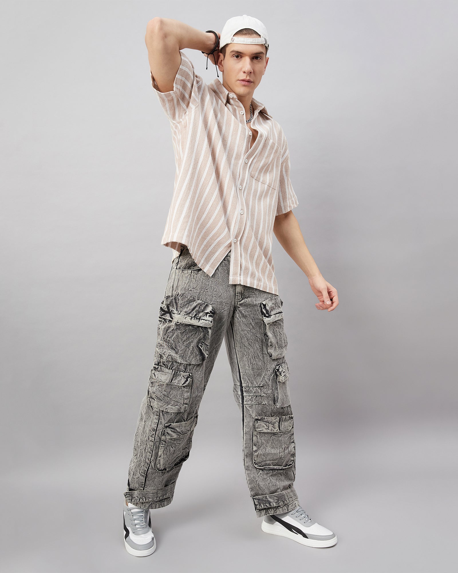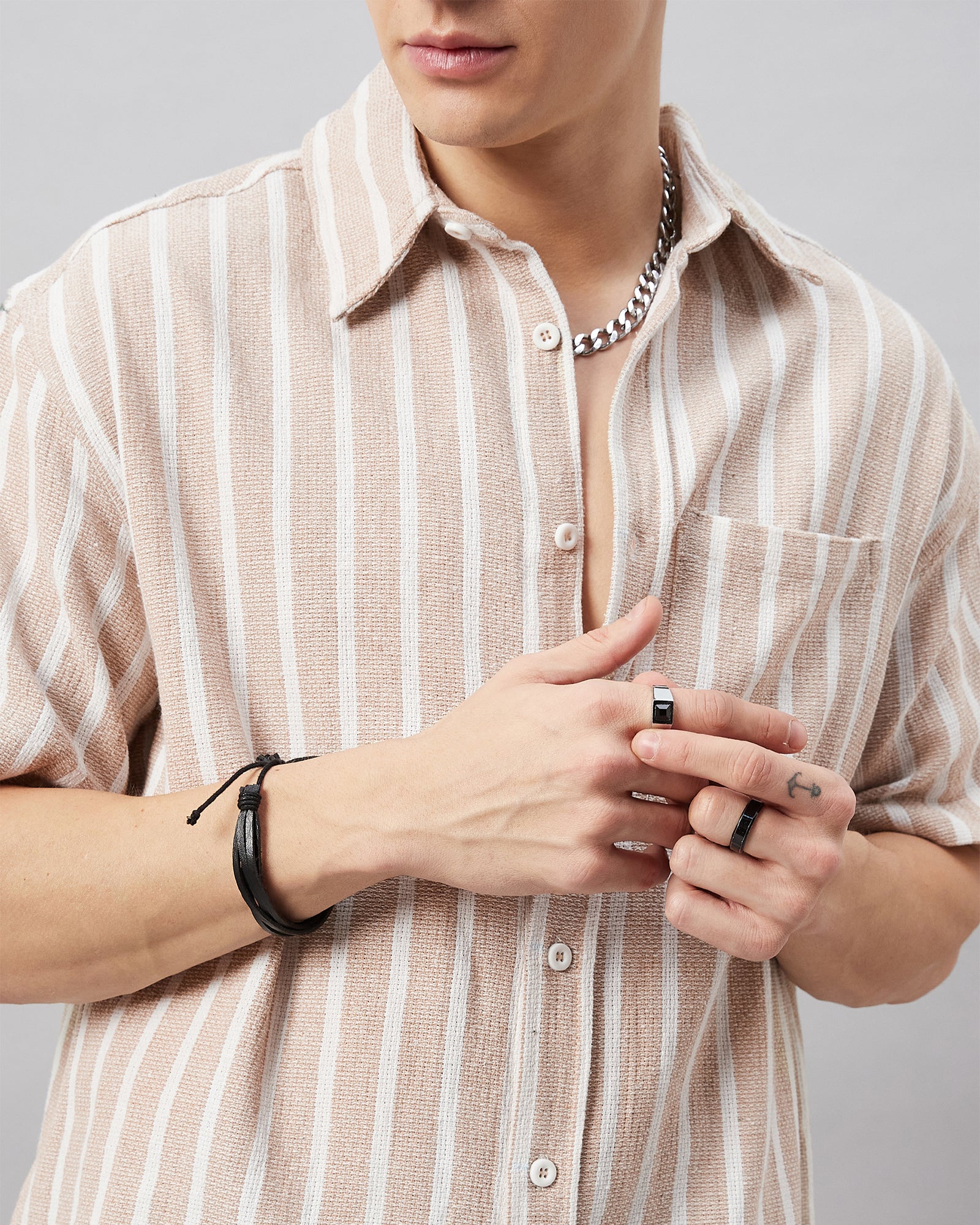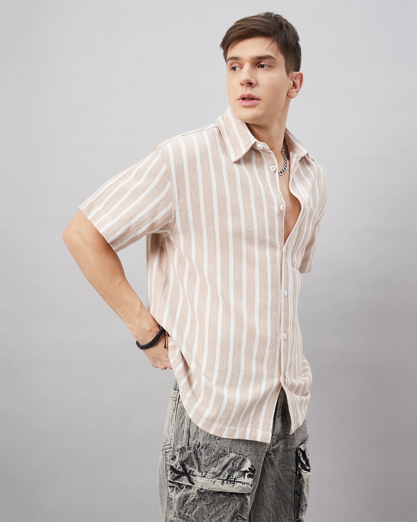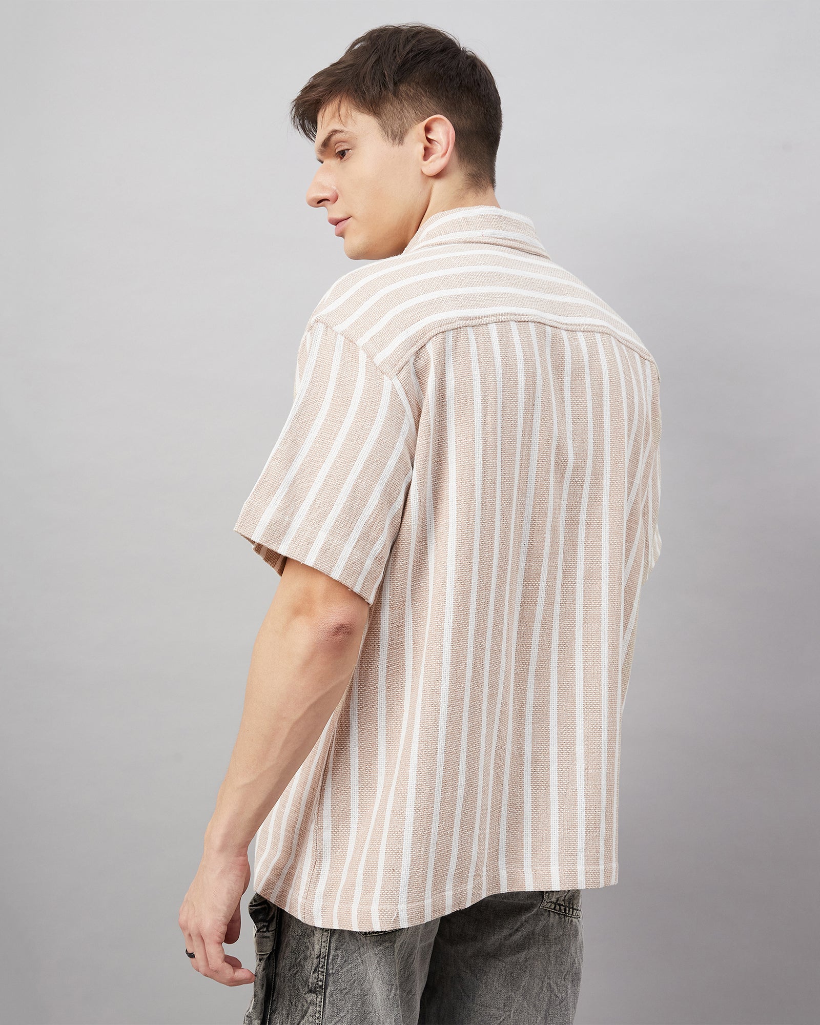 Chimpaaanzee Men Beige & White Oversized Fit Shirt