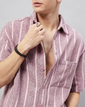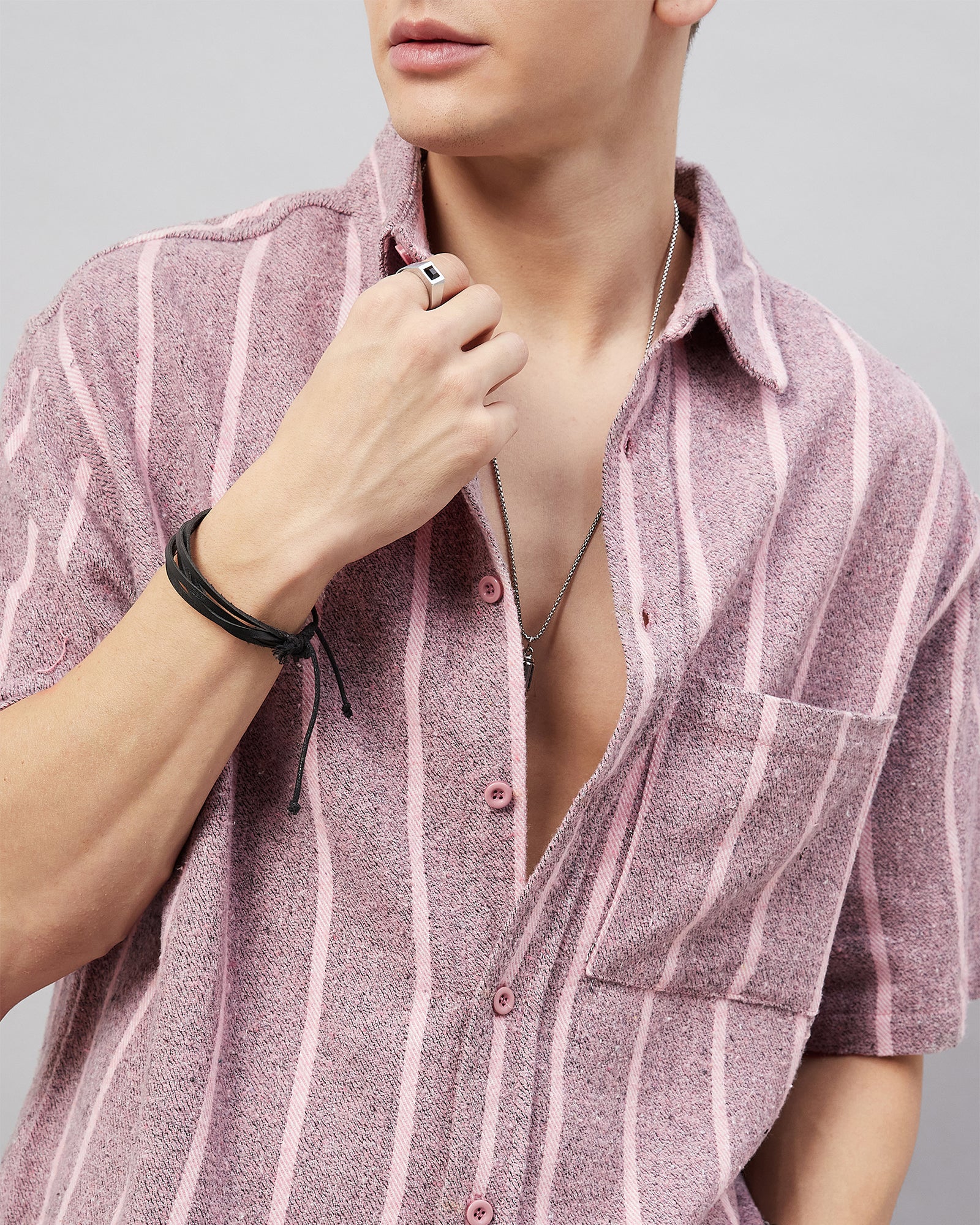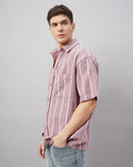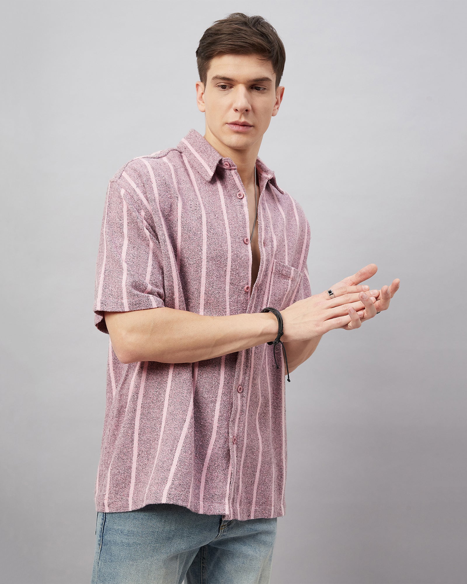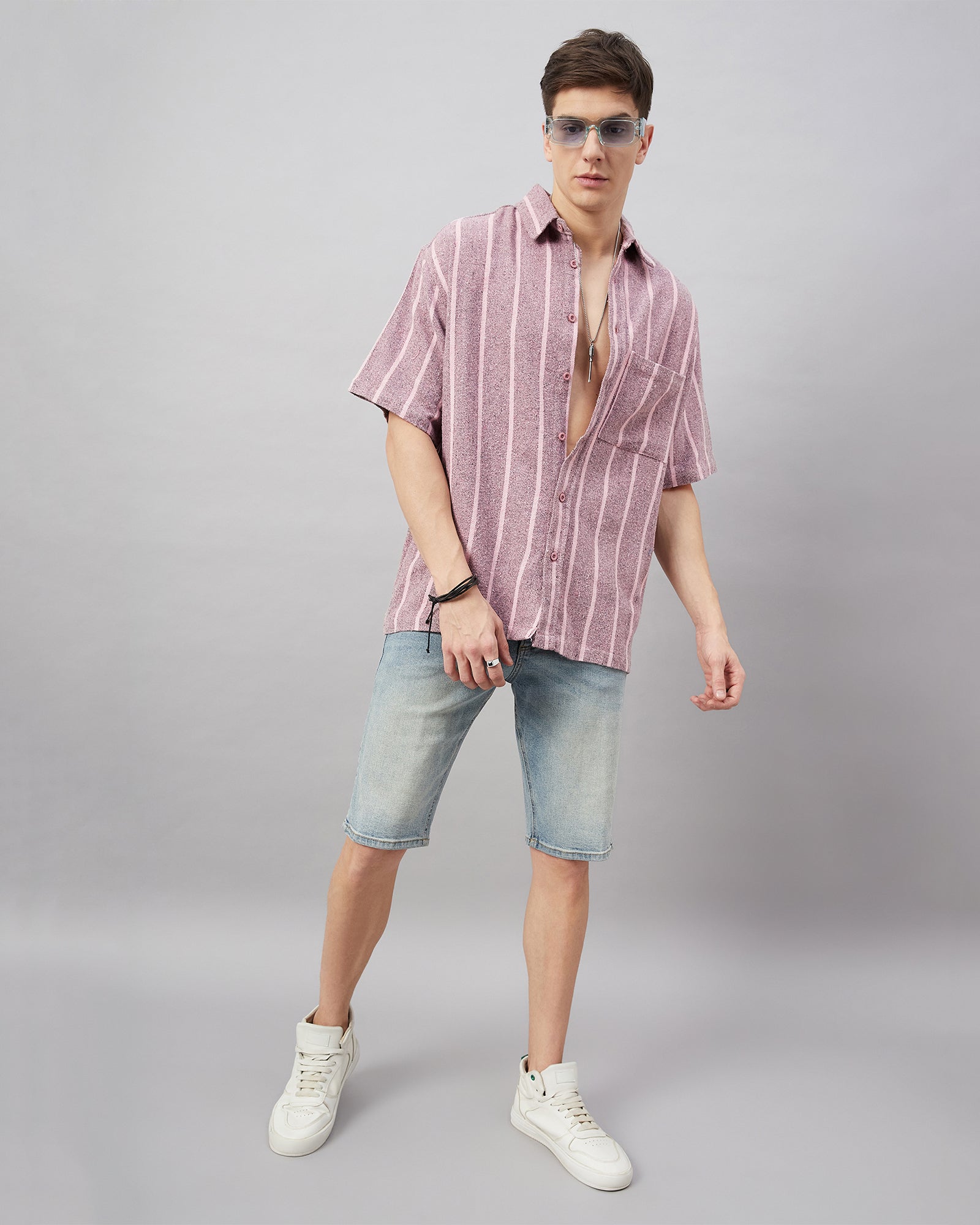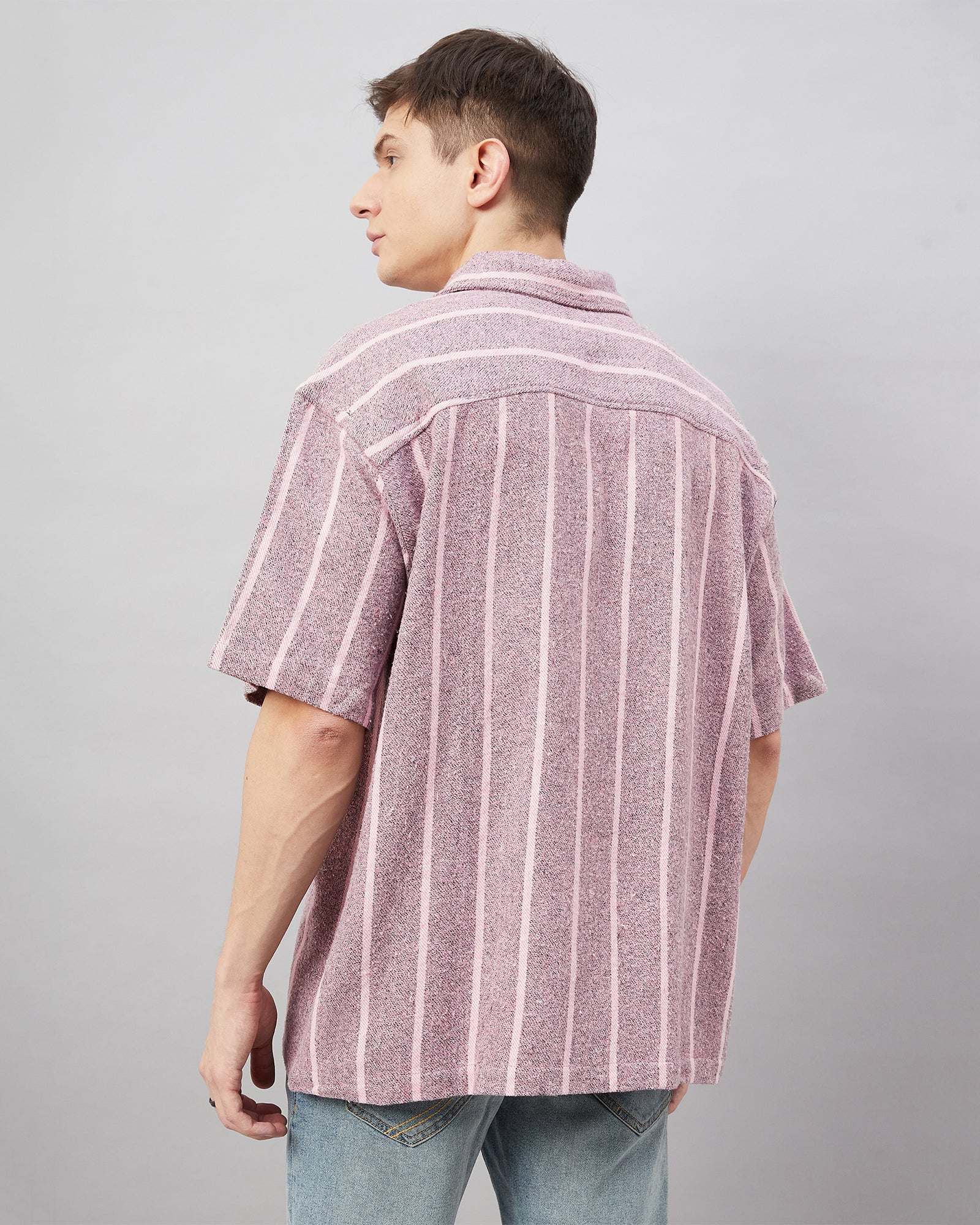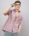 Chimpaaanzee Men Pink and White Oversized Fit Shirt