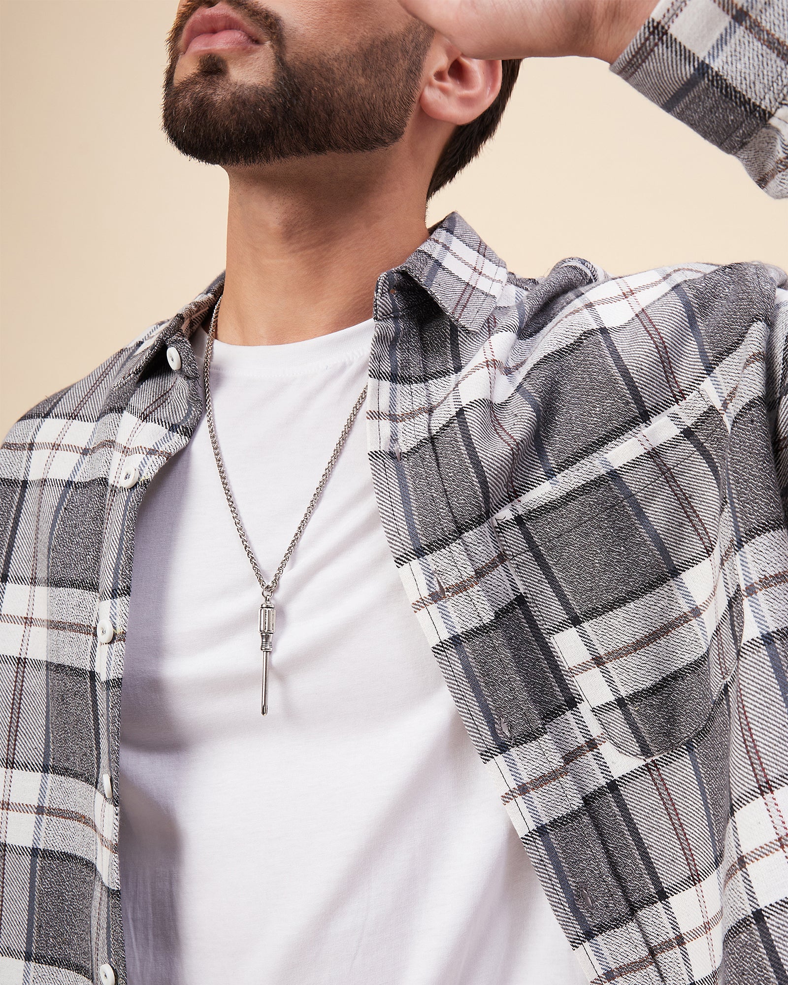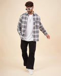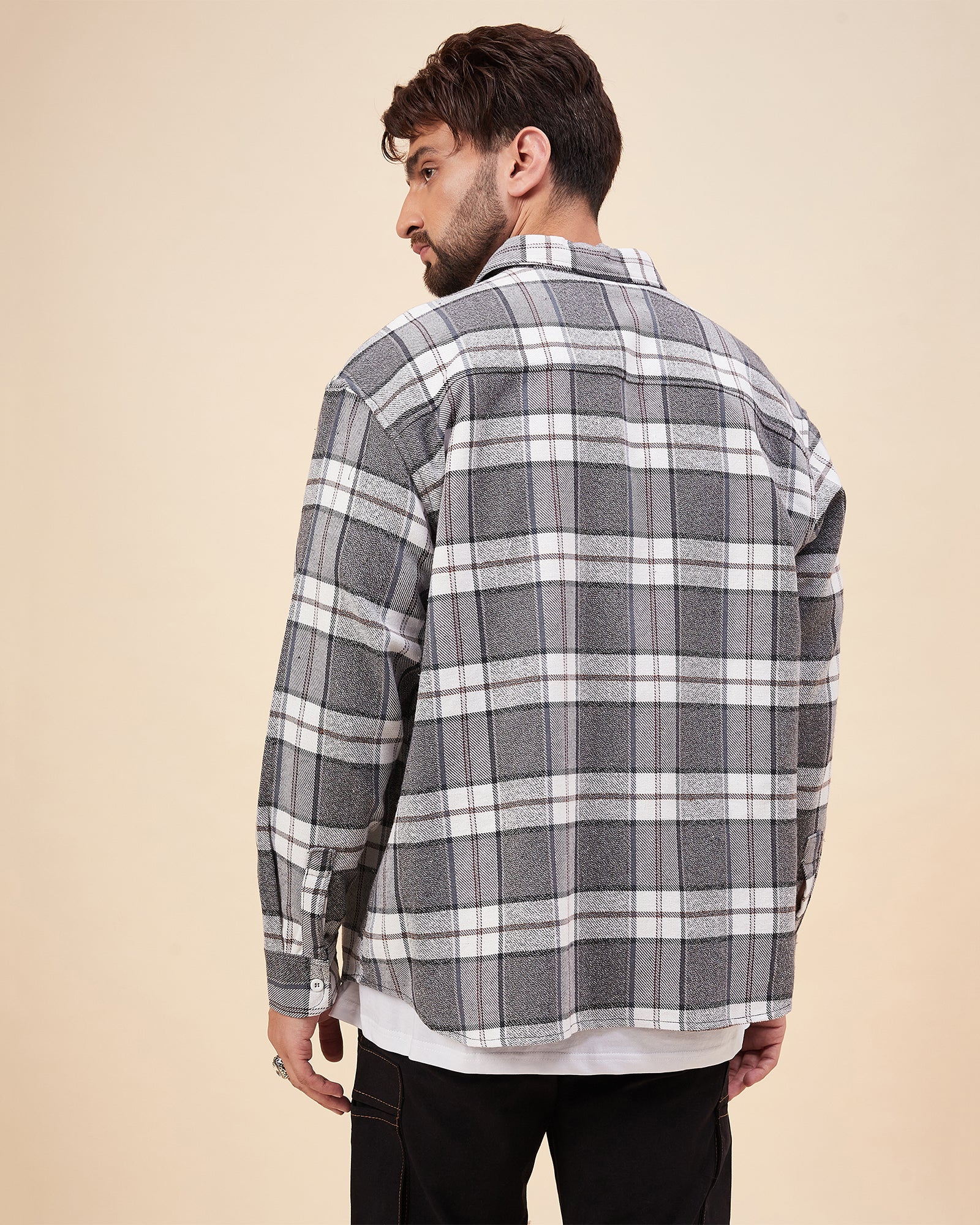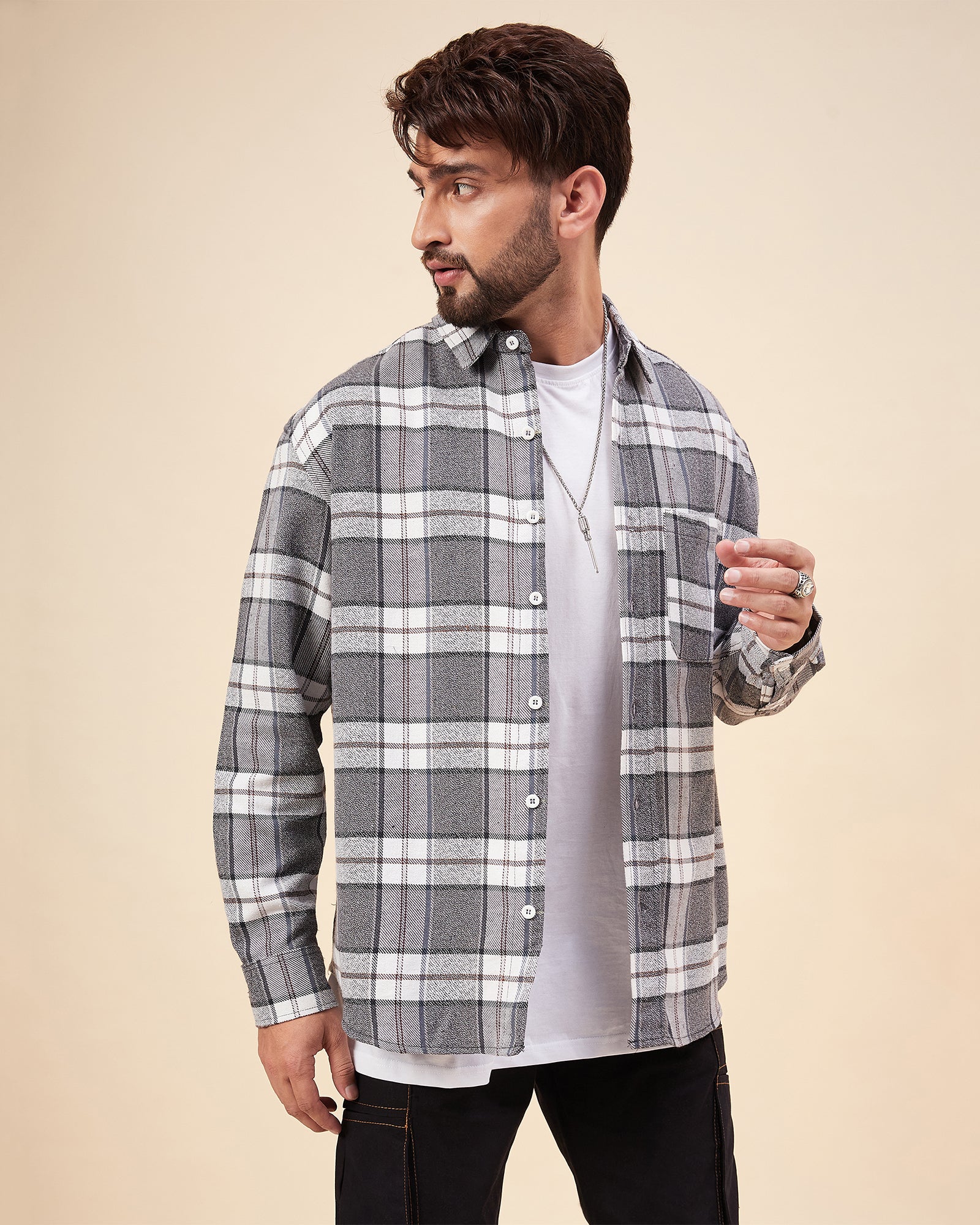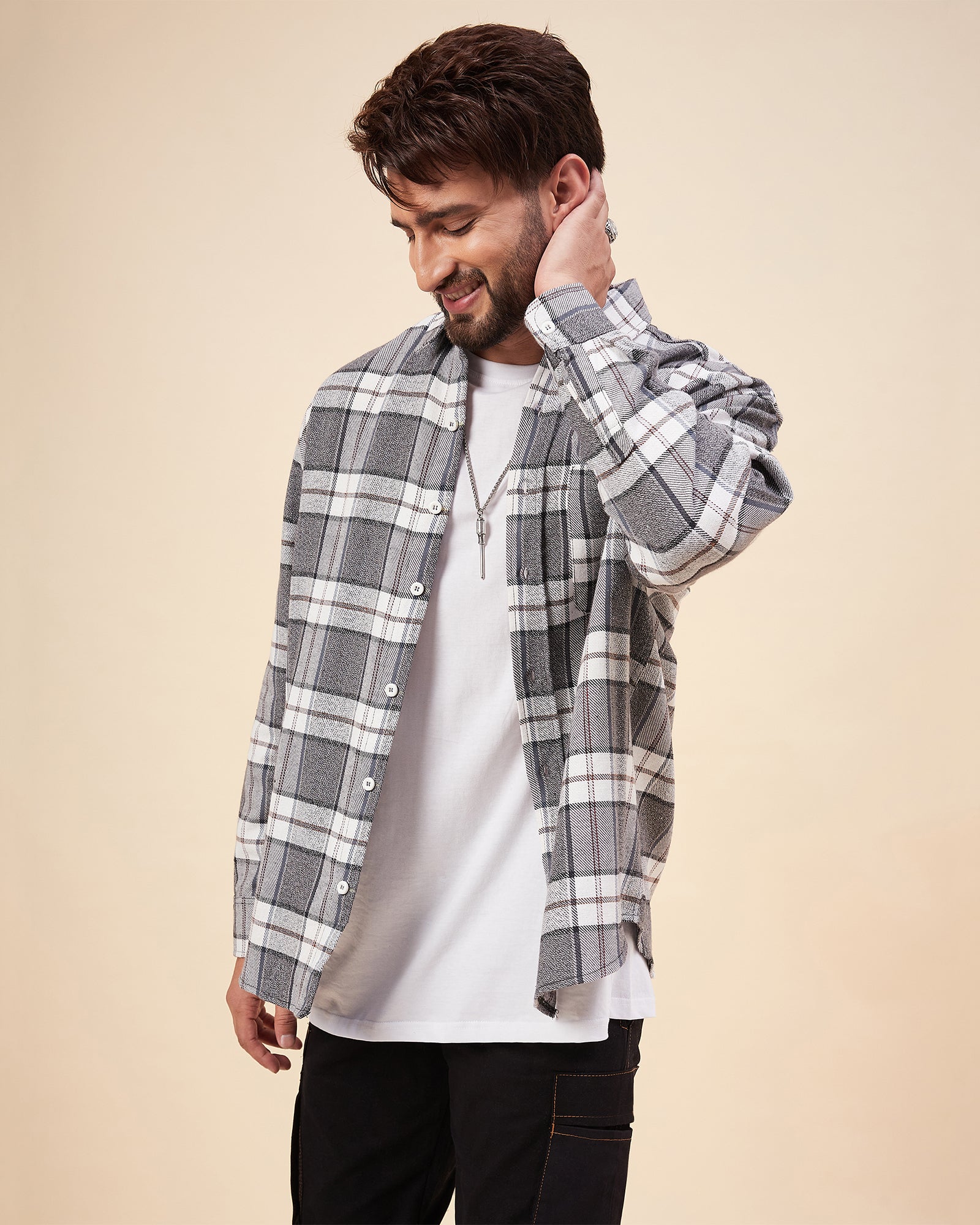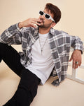 Chimpaaanzee Men Grey & White Oversized Fit Shirt