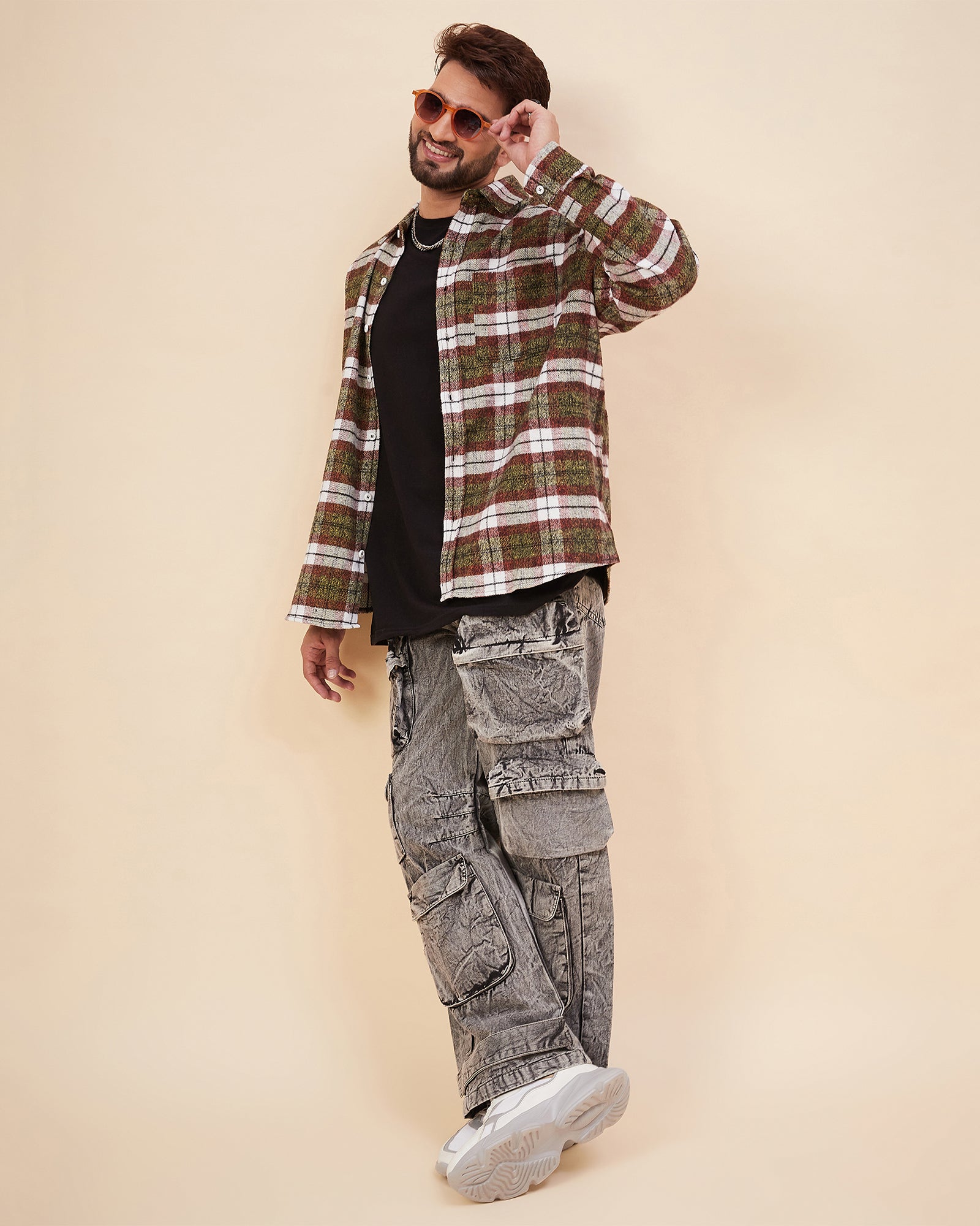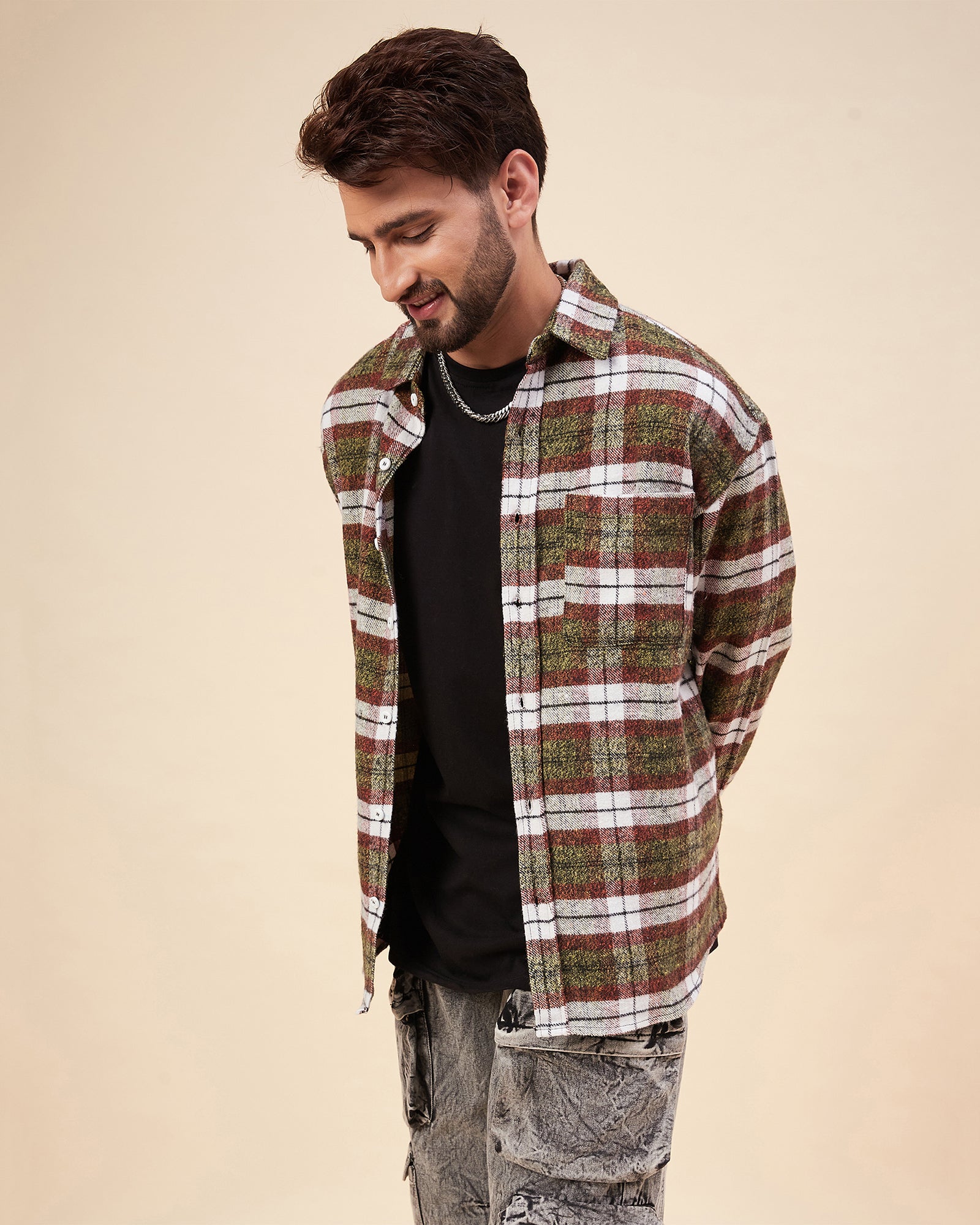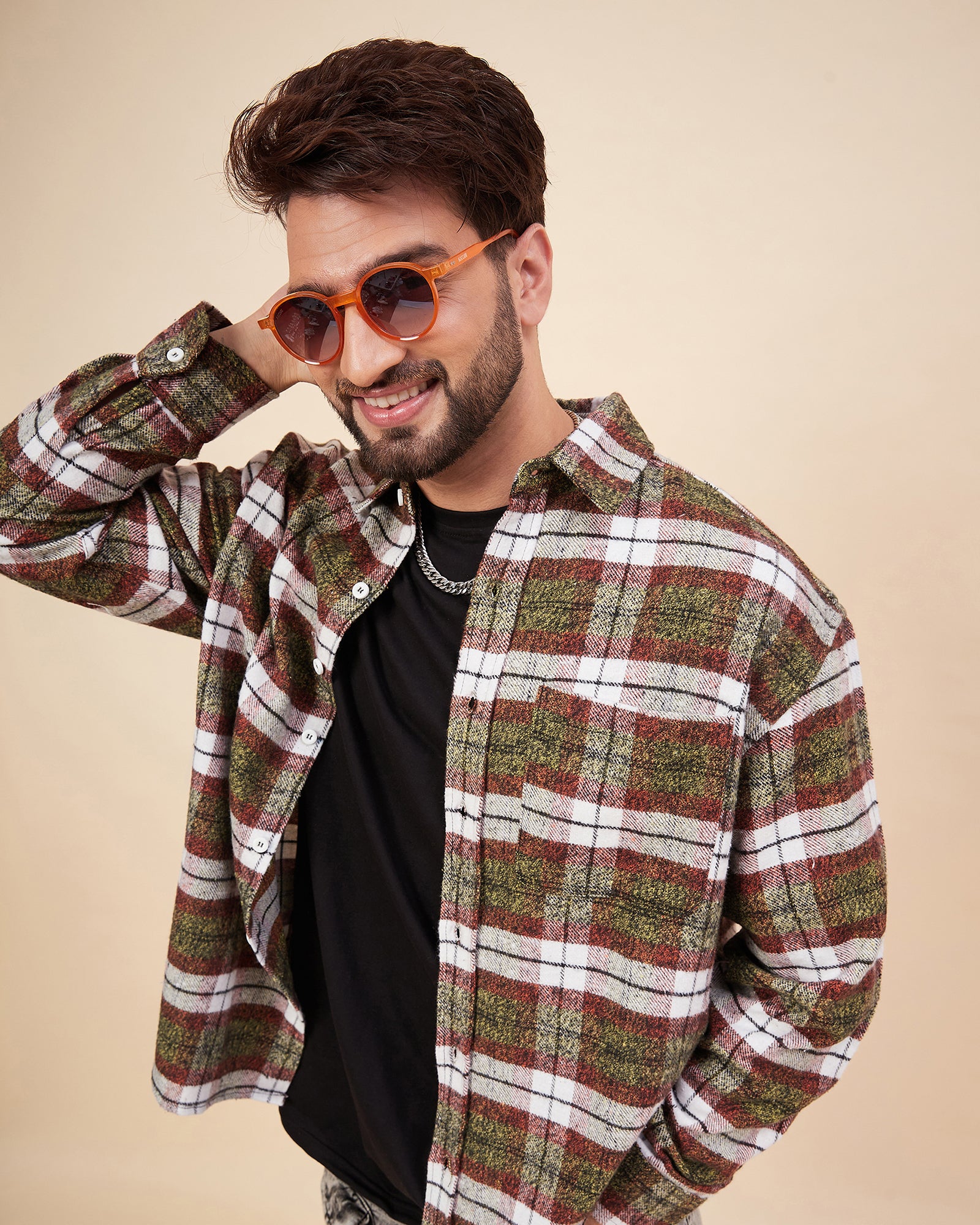 Chimpaaanzee Men Orange & Yellow Oversized Fit Shirt