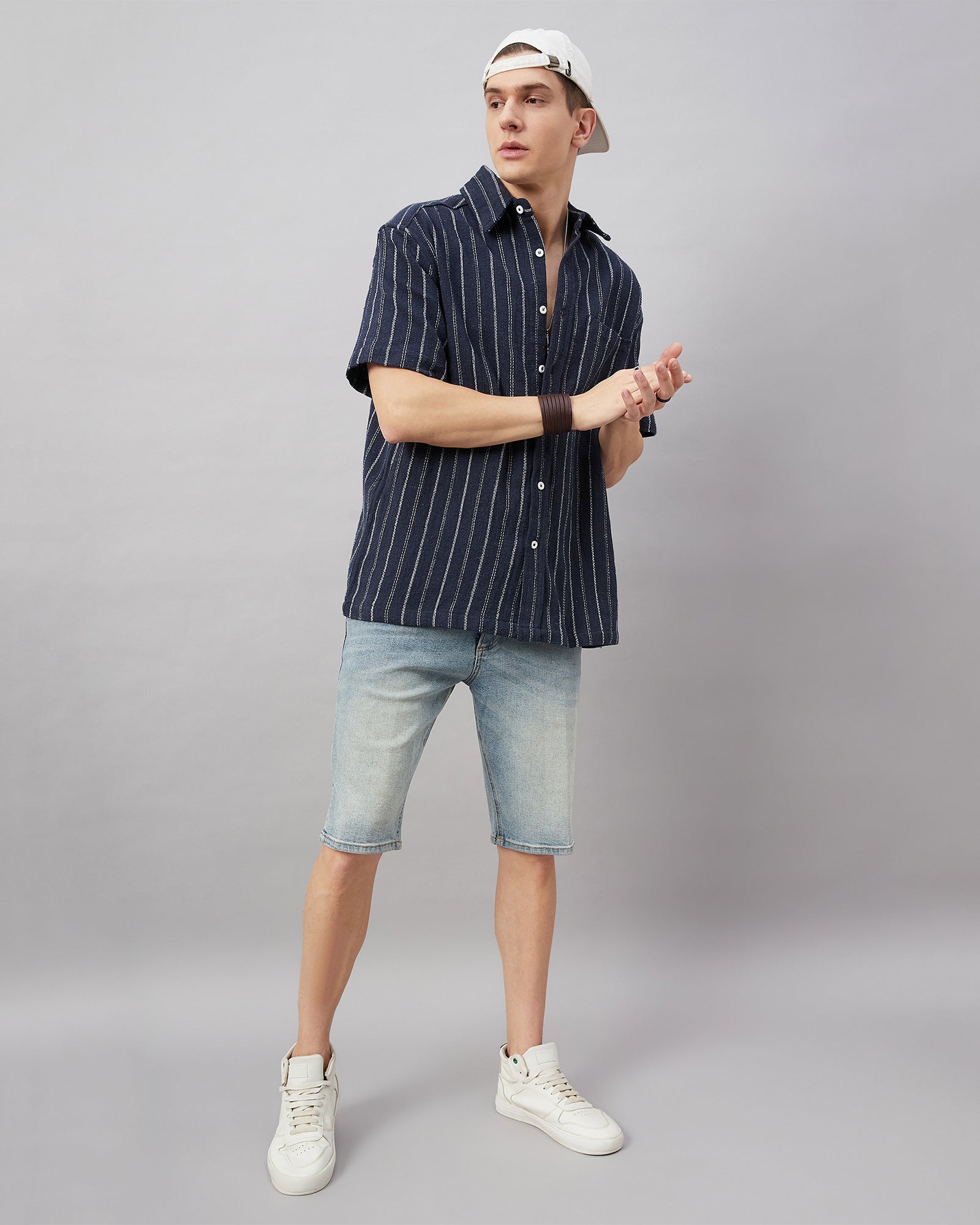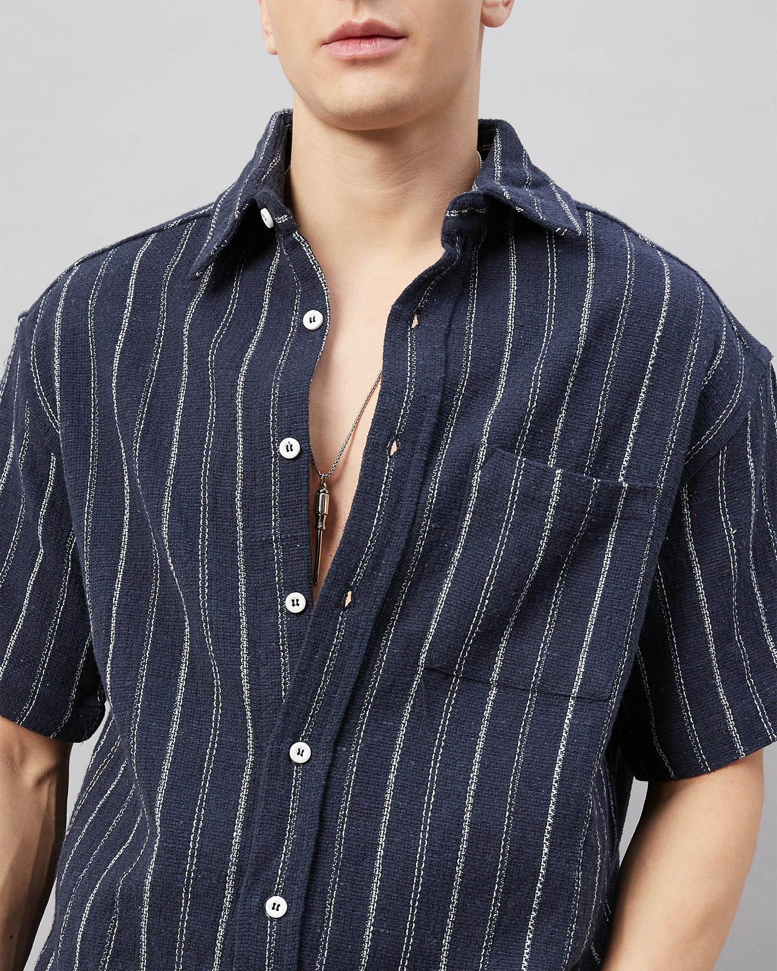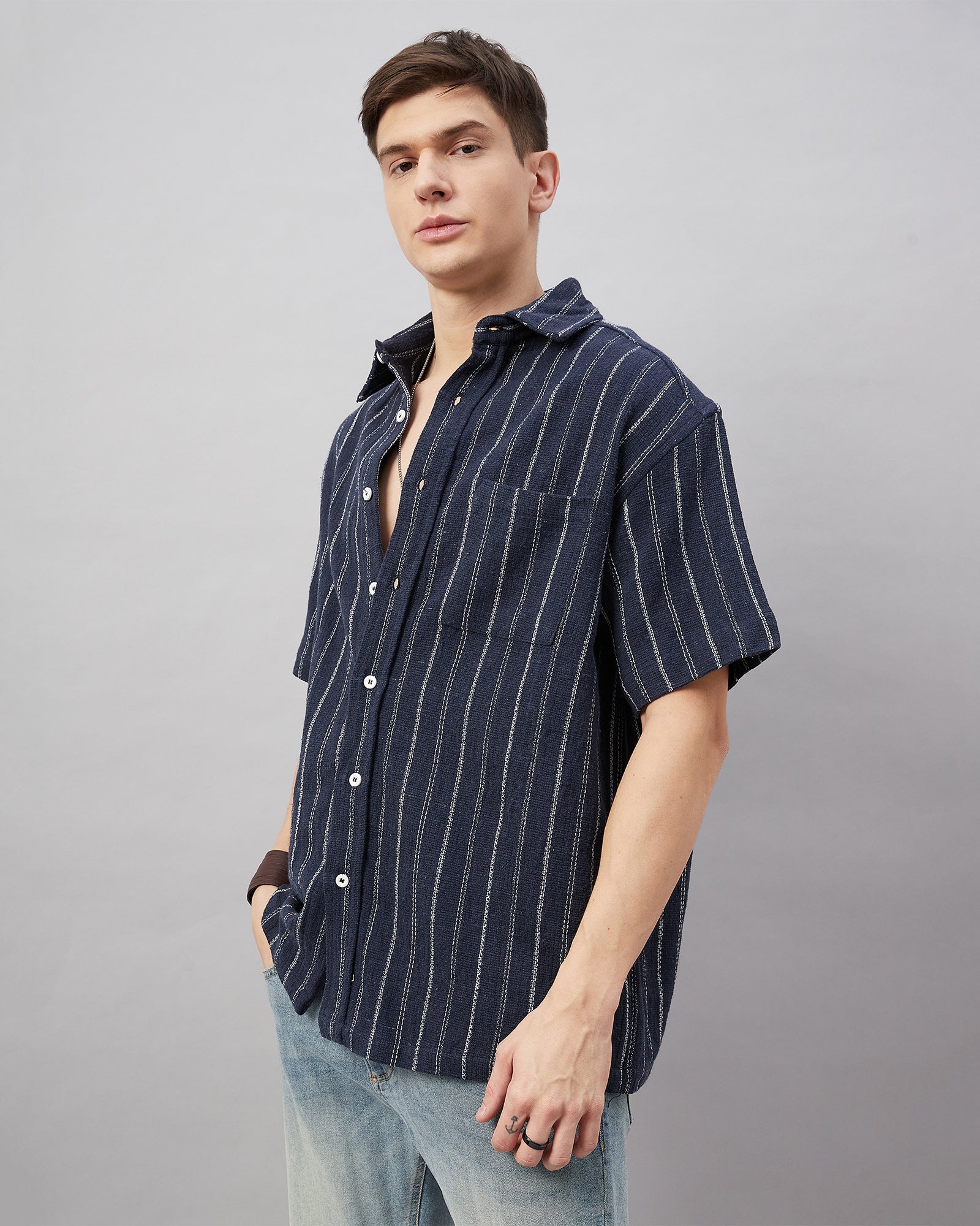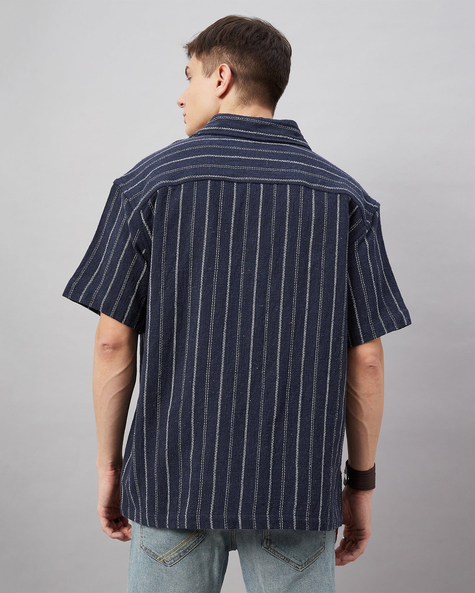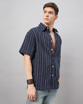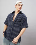 Chimpaaanzee Men Navy & White Oversized Fit Shirt