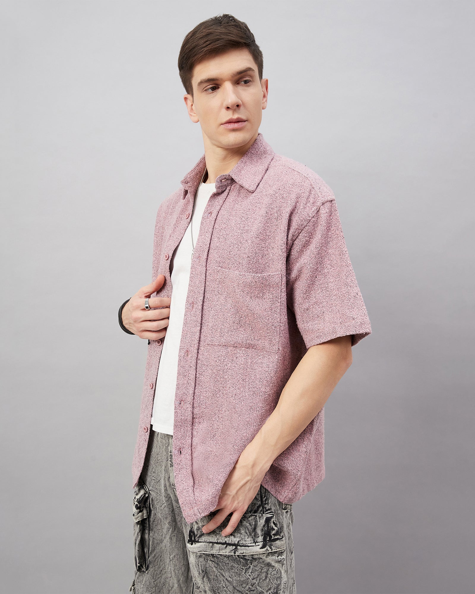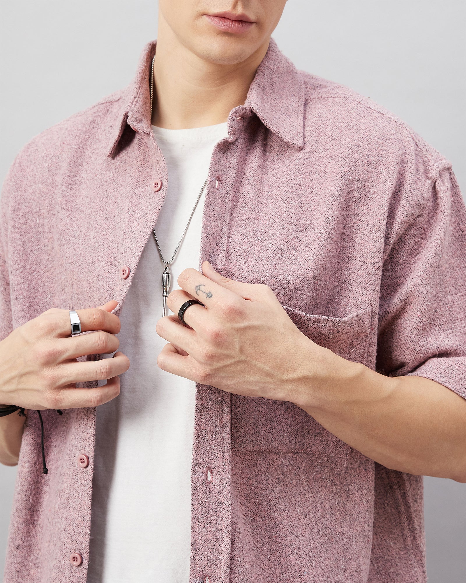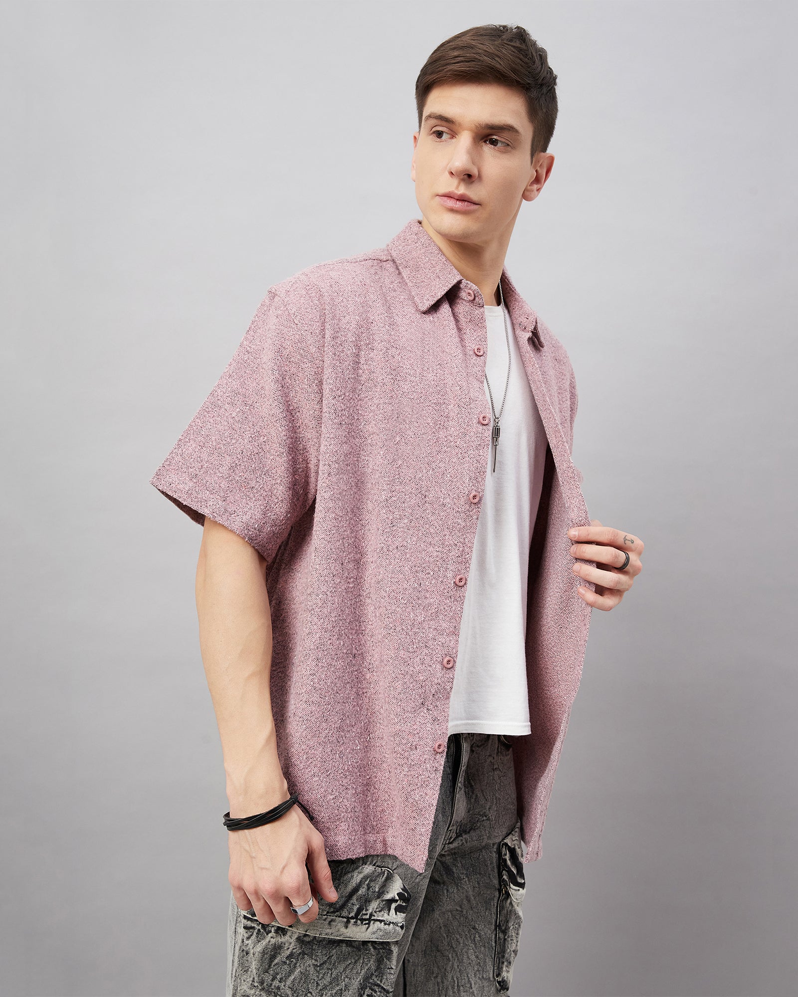 Chimpaaanzee Men Pink Oversized Fit Shirt