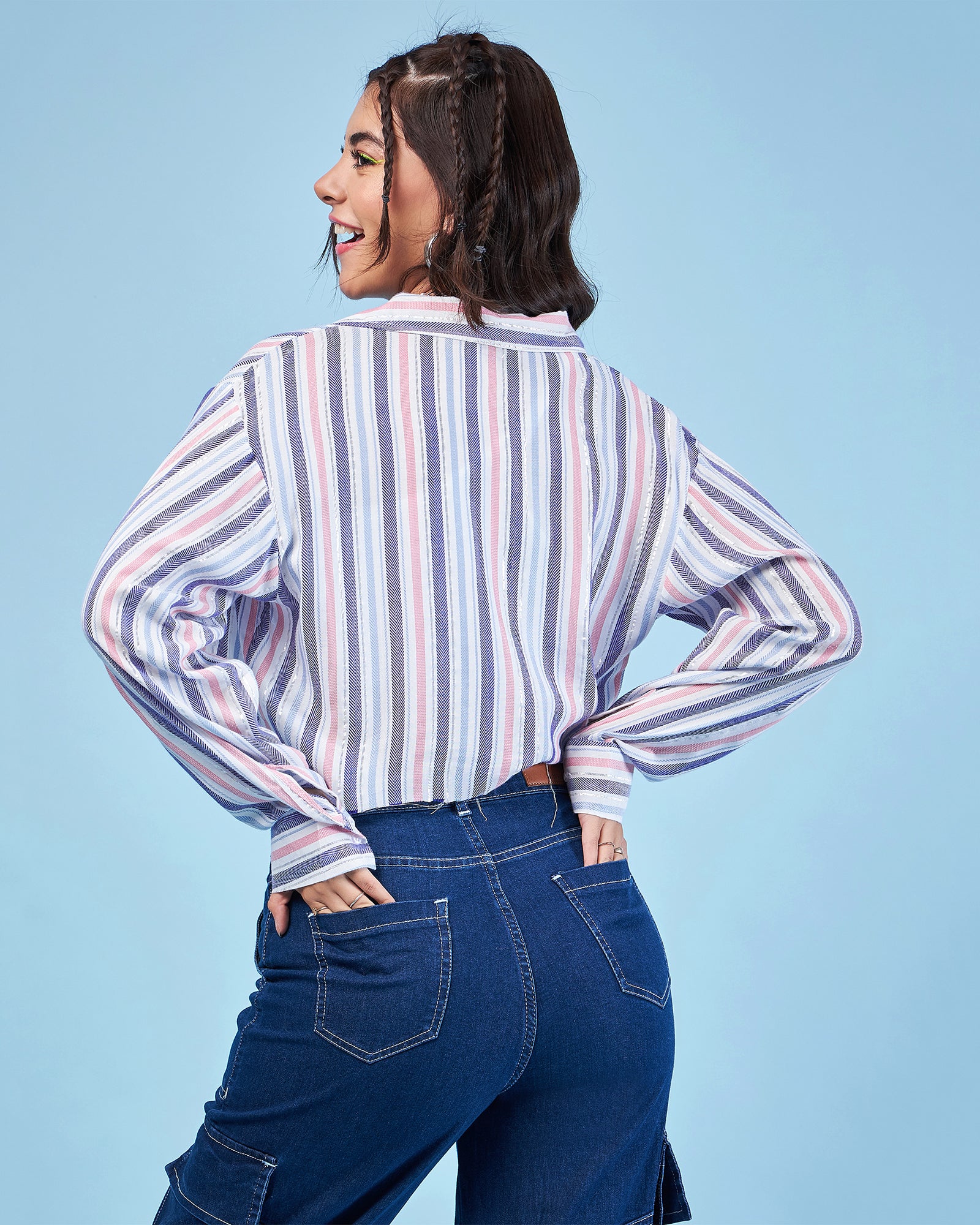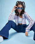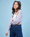 Chimpaaanzee Women Pink & Navy Crop Oversized Shirt