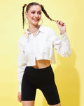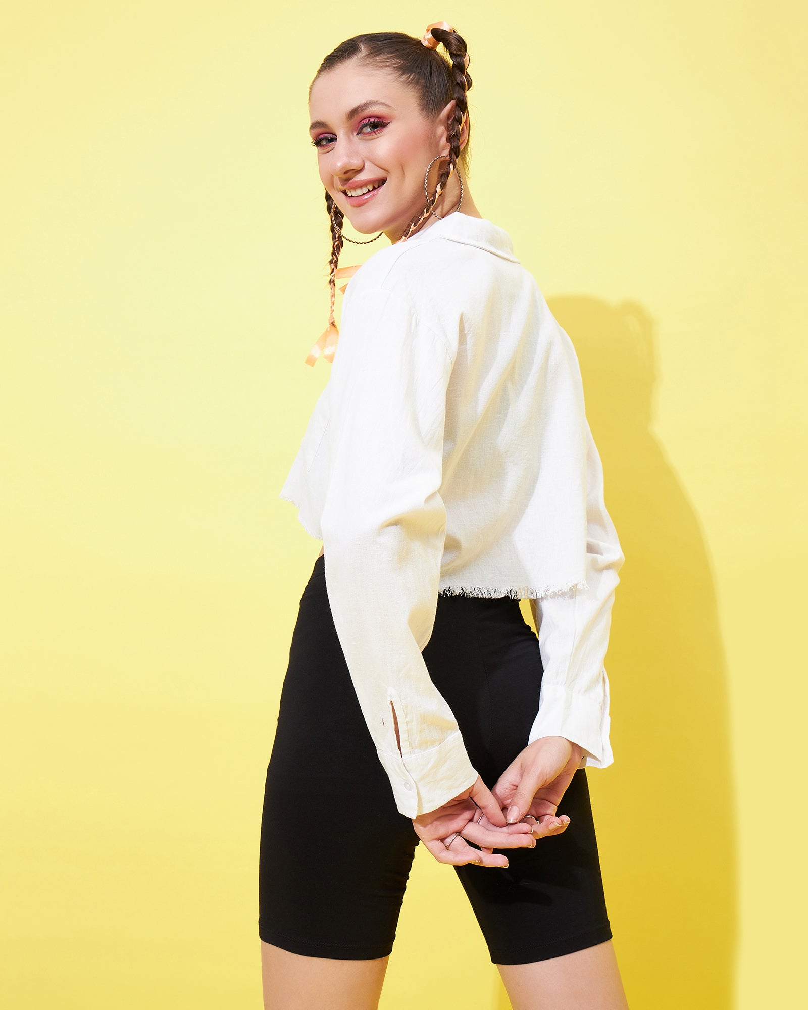 Chimpaaanzee Women White Up-down Fully Cropped Shirt