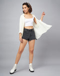 This model has a height of 5 feet 7 inches and is wearing a Top of Size "S"