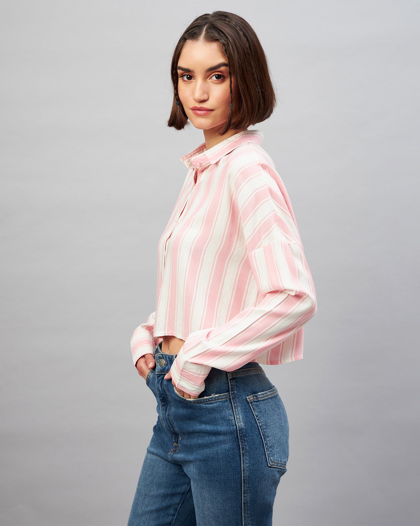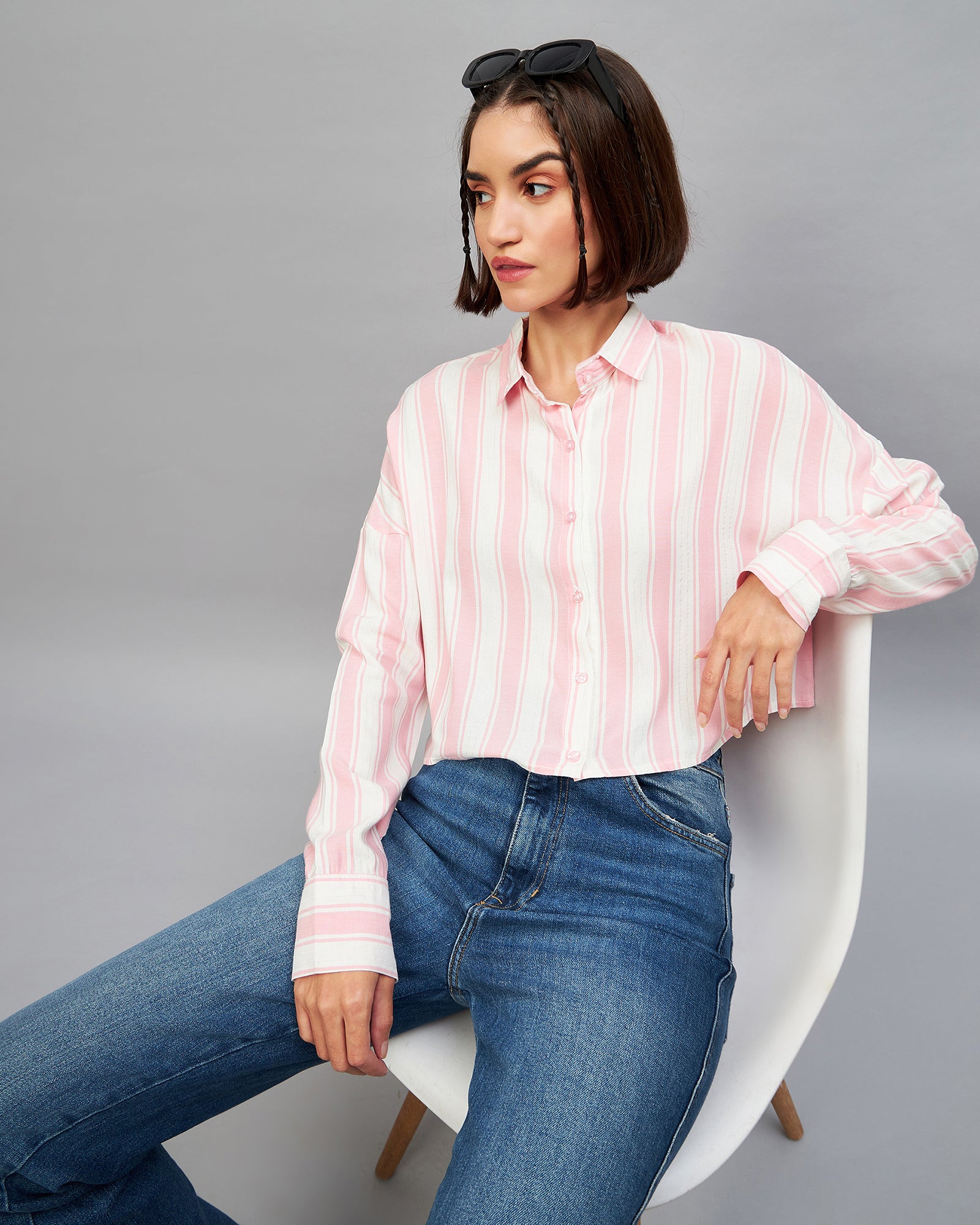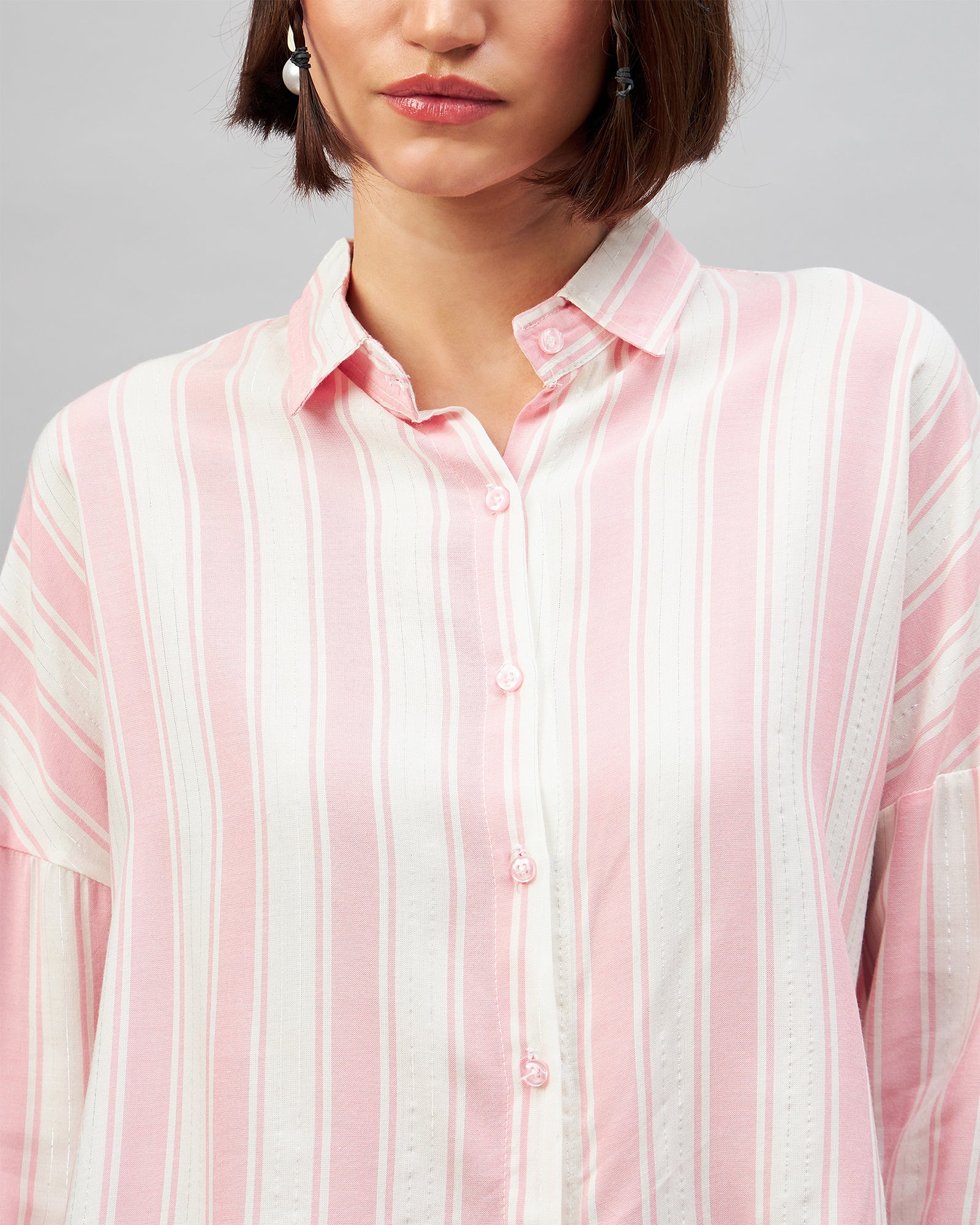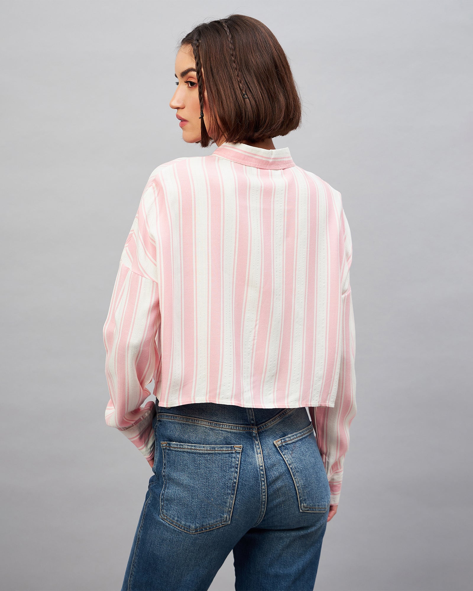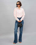 Chimpaaanzee Women Pink & White Oversized Crop Shirt