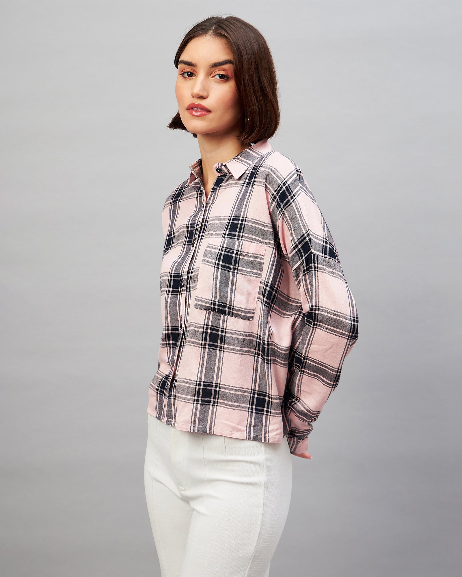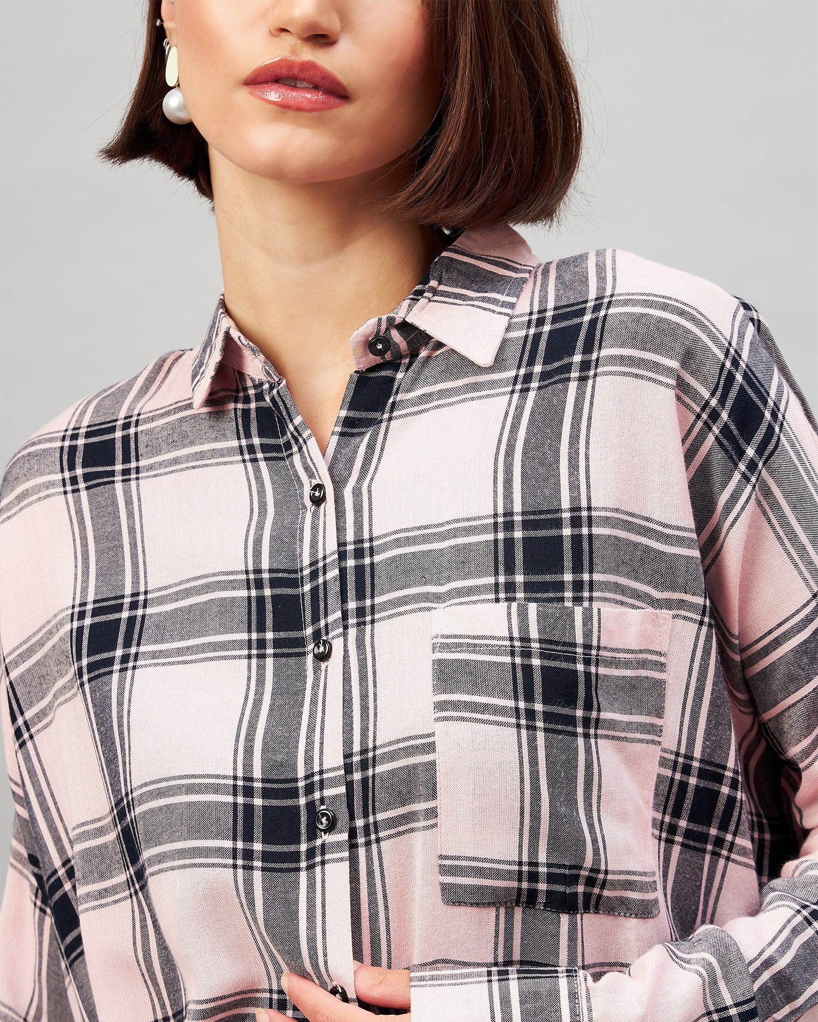 Chimpaaanzee Women Pink & Black Oversized Shirt