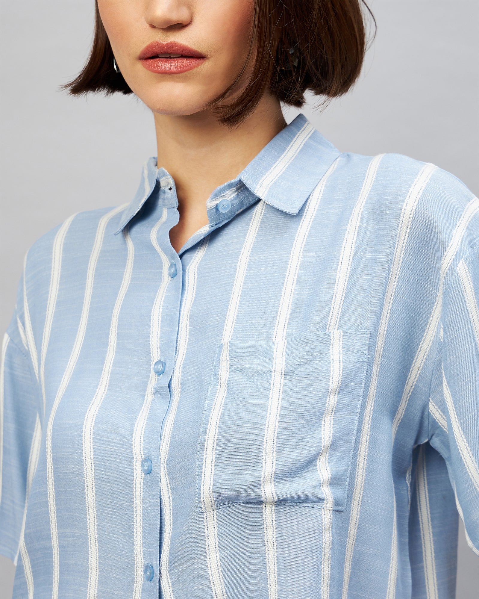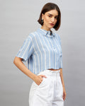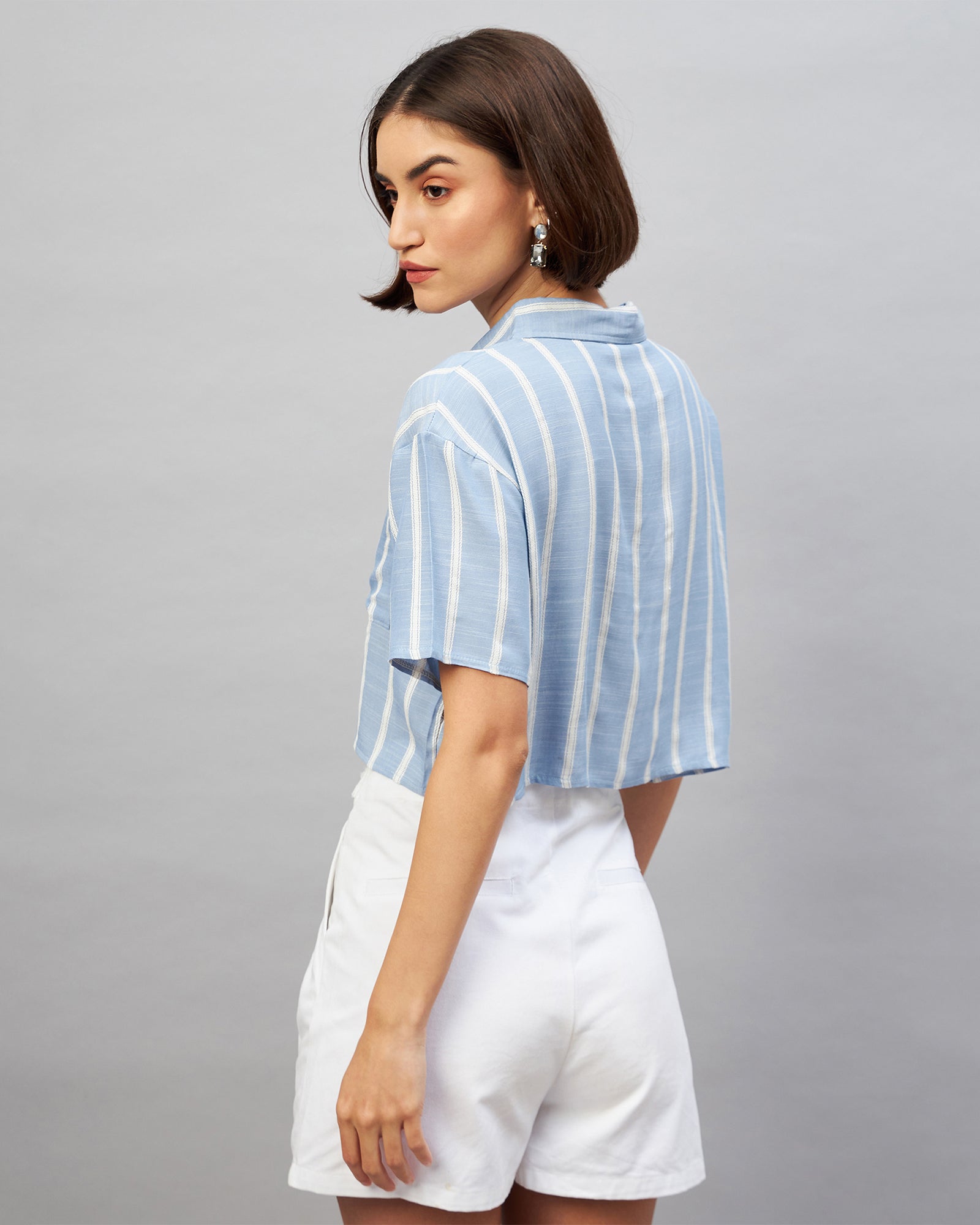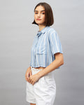 Chimpaaanzee Women Blue & White Cropped Shirt