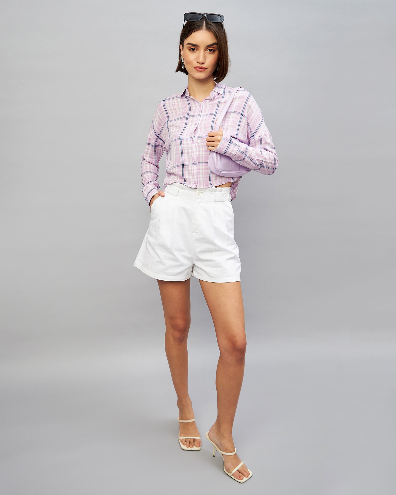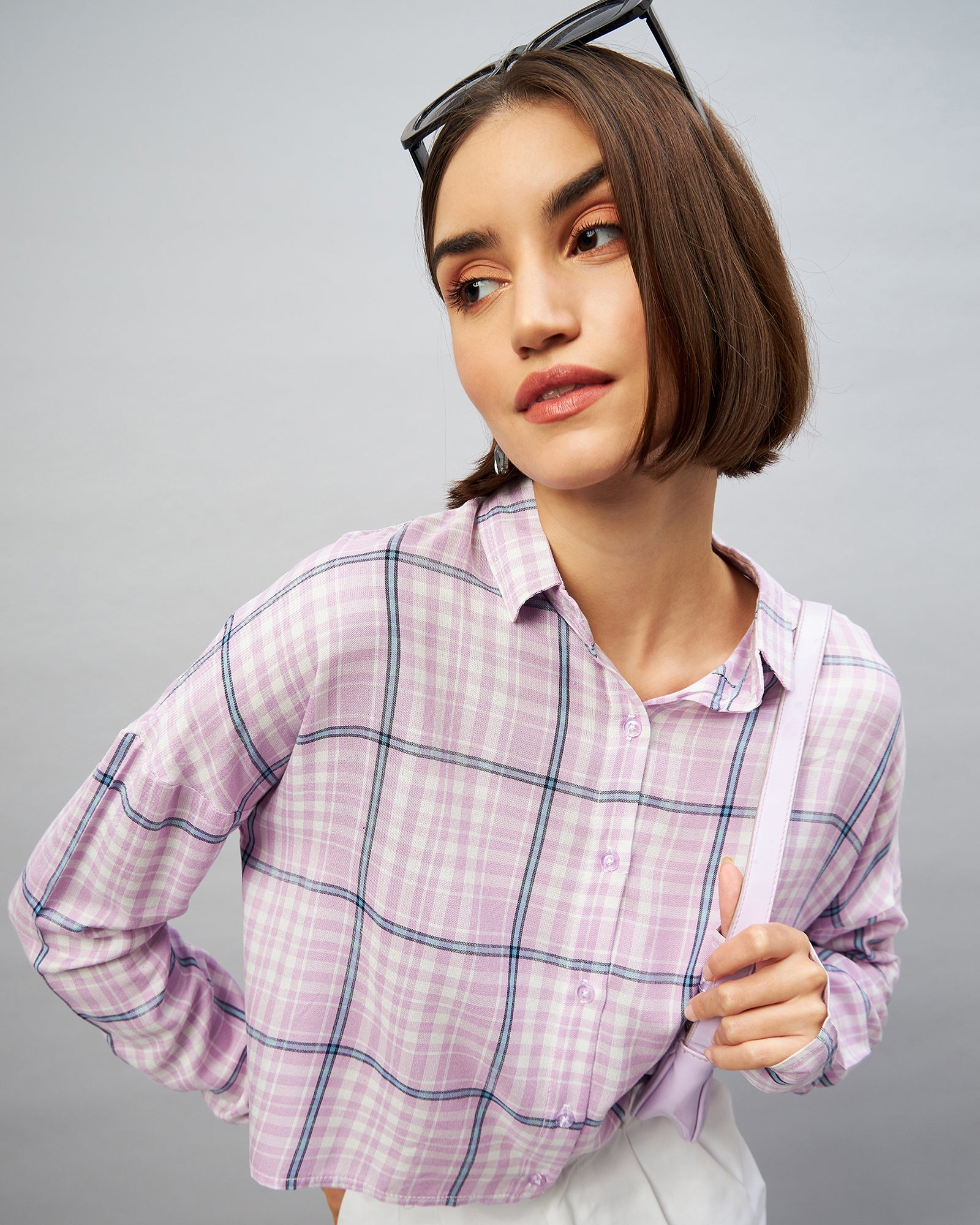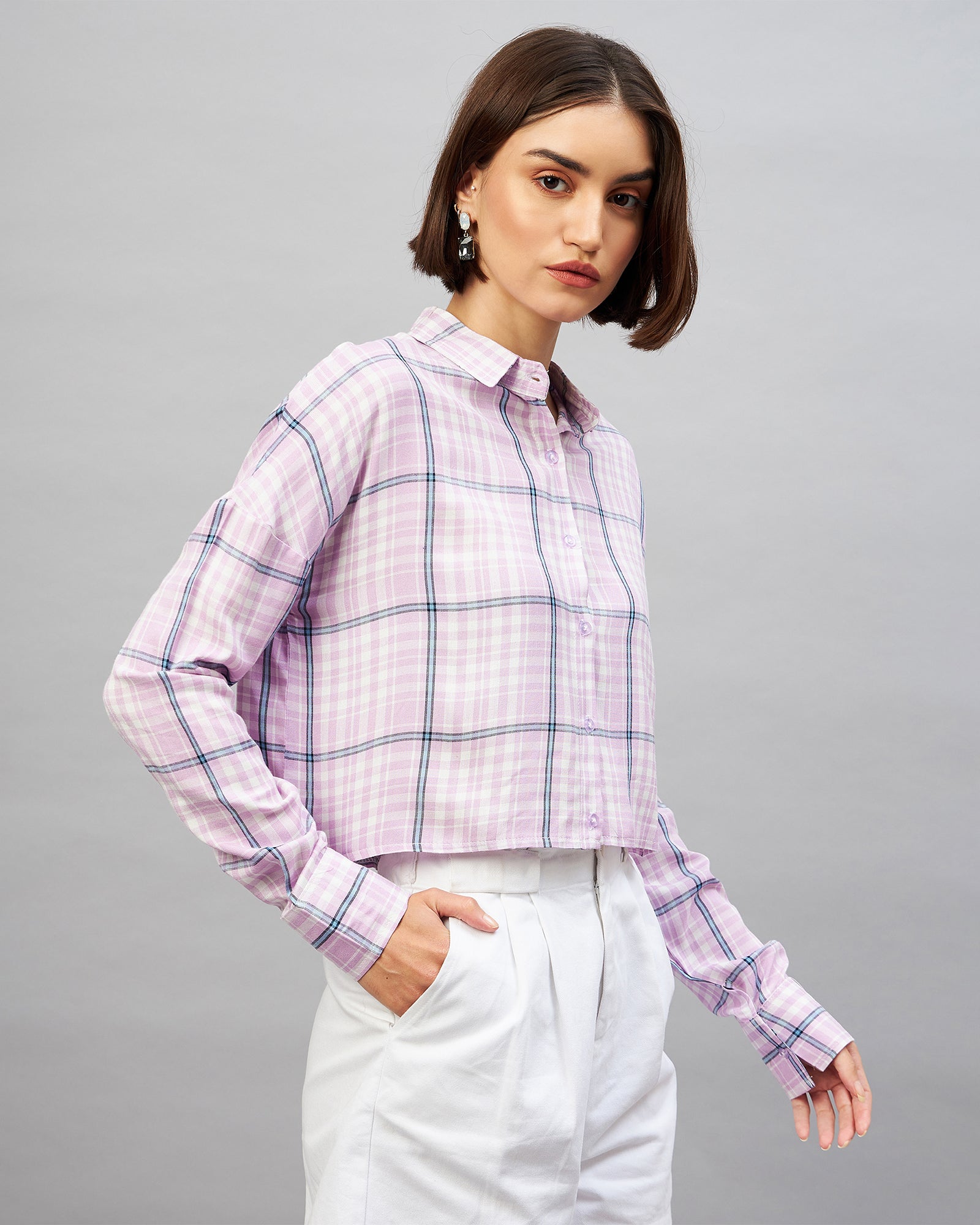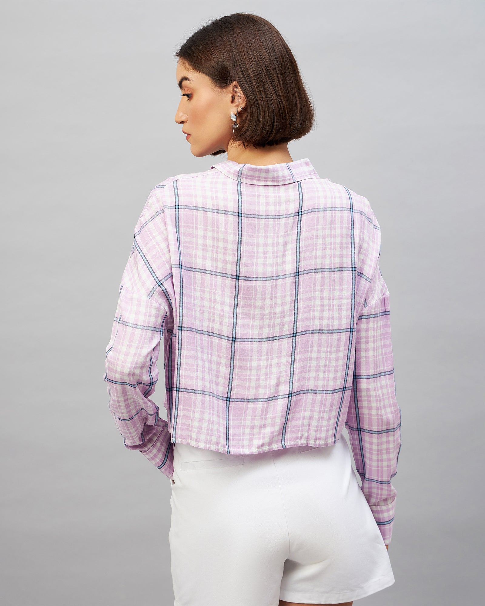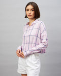 Chimpaaanzee Women Purple & Blue Oversized Crop Shirt