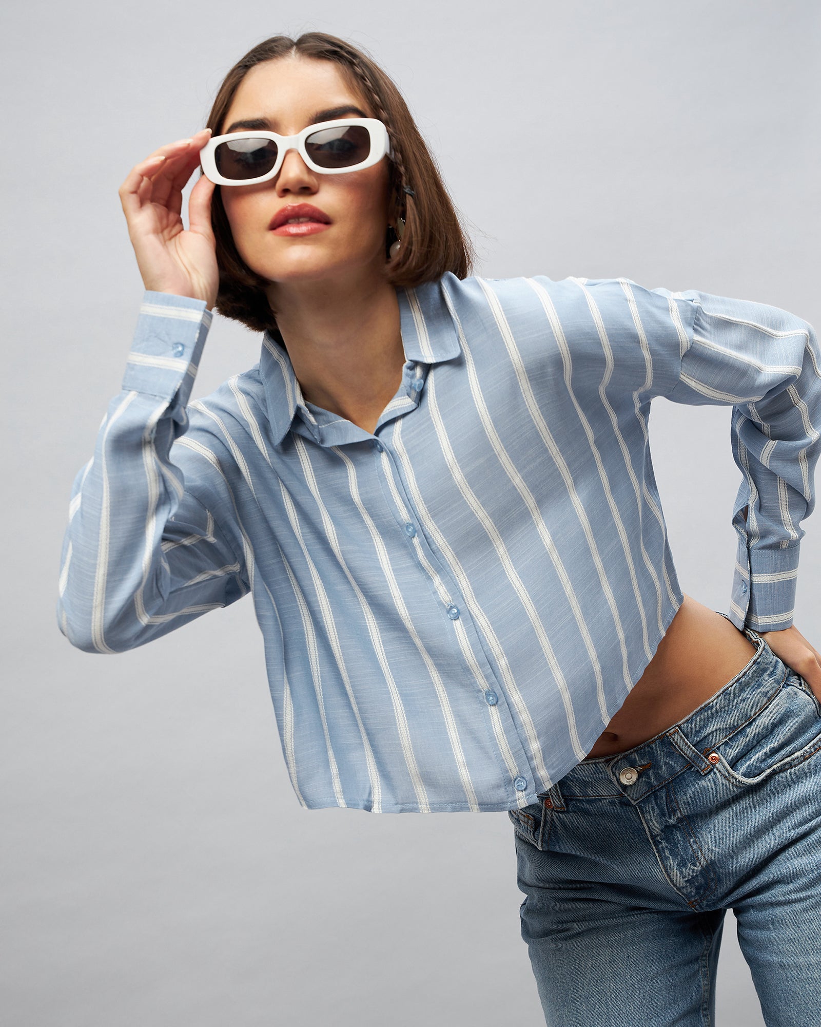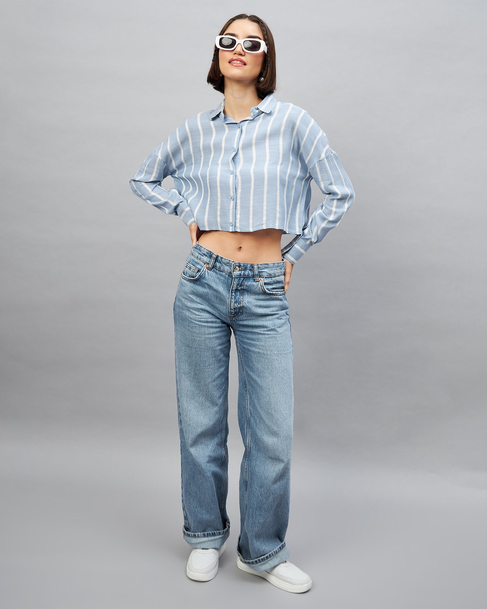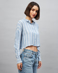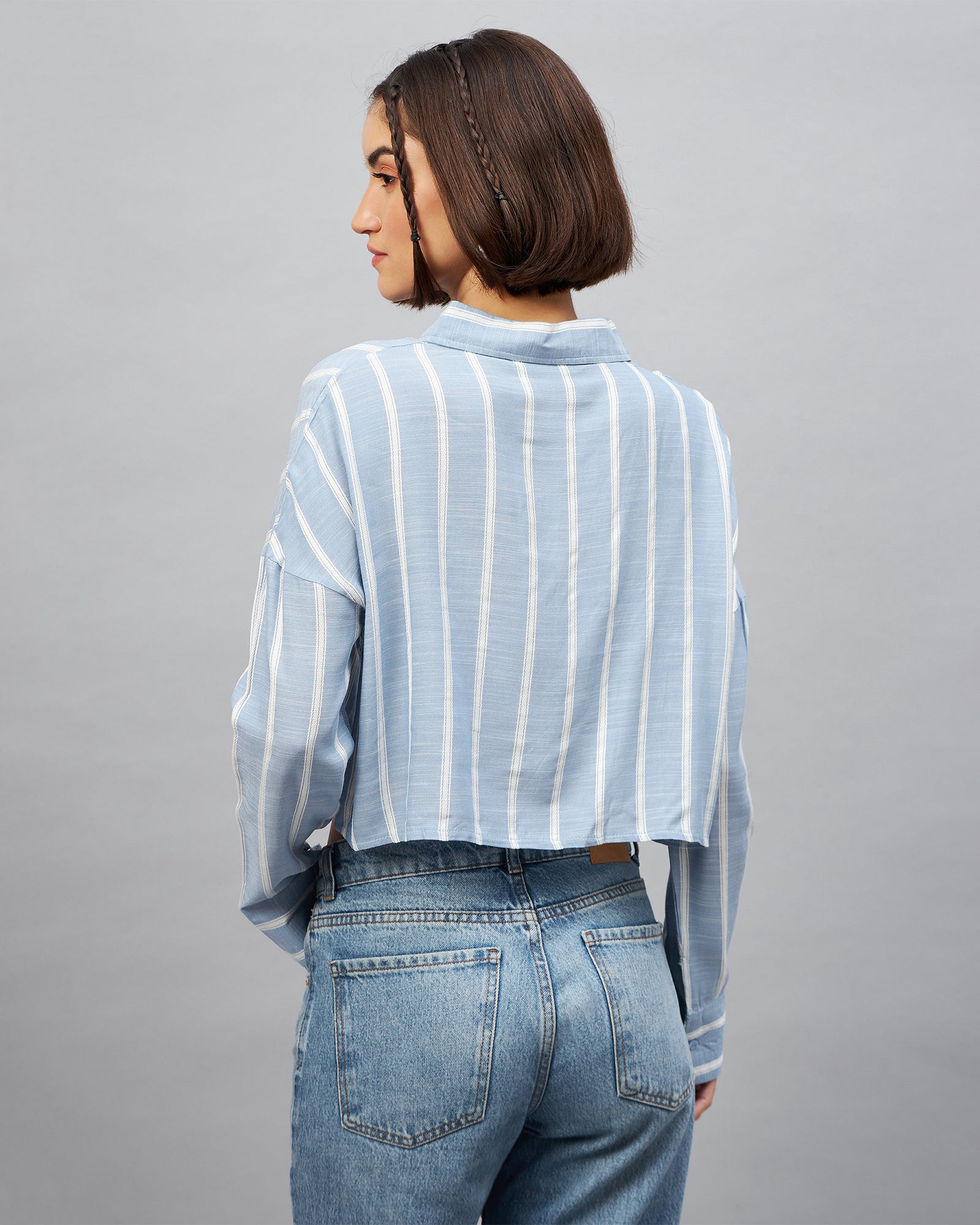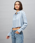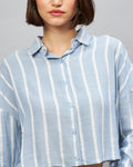 Chimpaaanzee Women Blue & White Oversized Crop Shirt