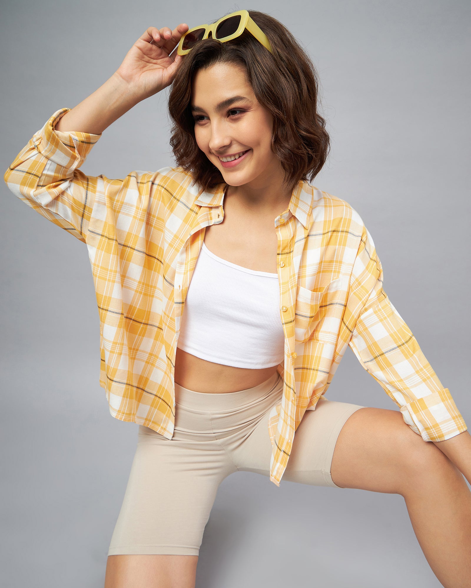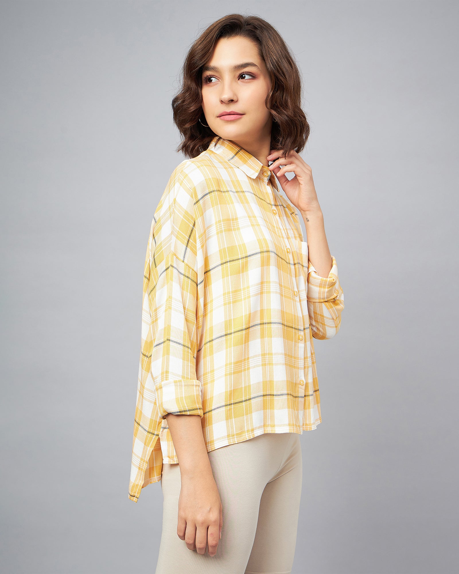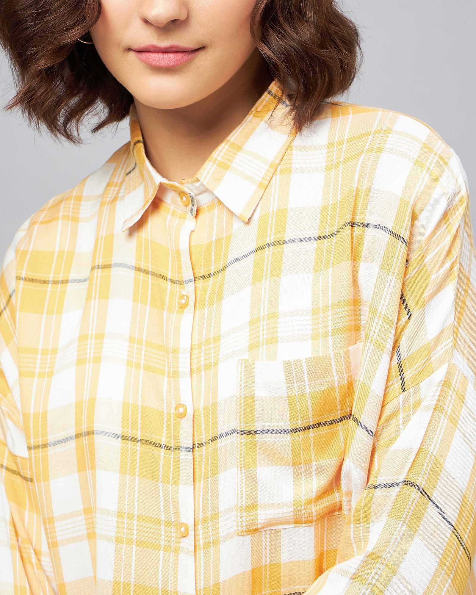 Chimpaaanzee Women Yellow & White Oversized Shirt
