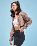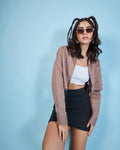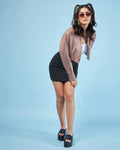 Chimpaaanzee Women Brown Crop Oversized Shirt