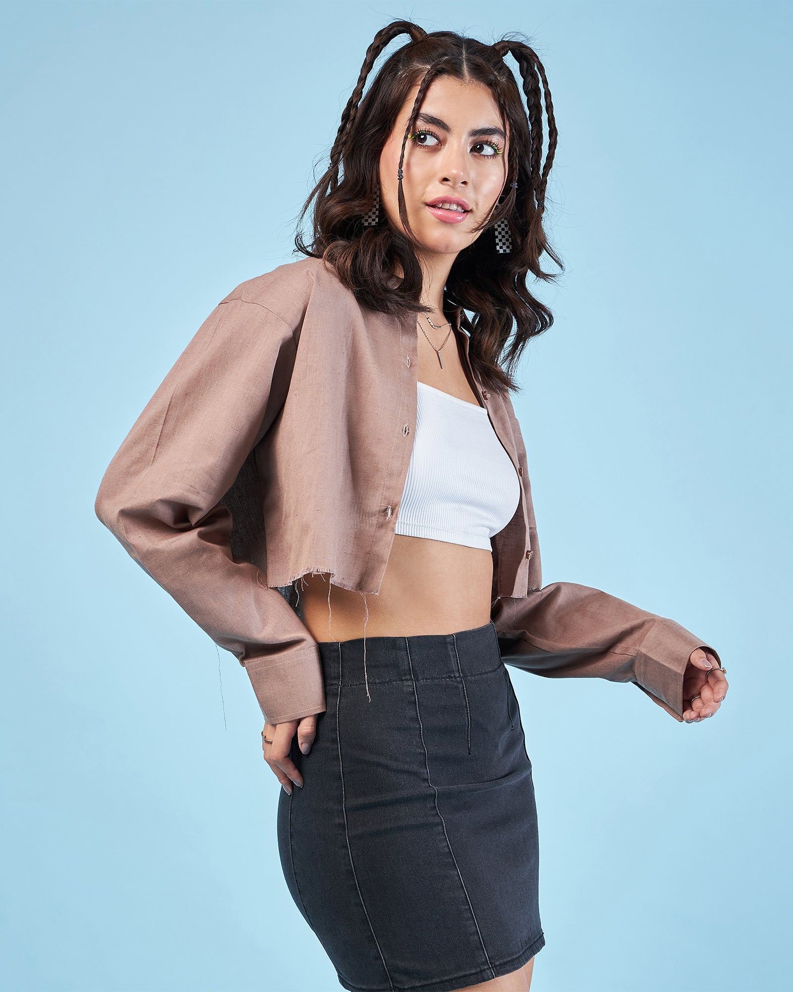 Style: Up-Down Crop Oversized Shirt