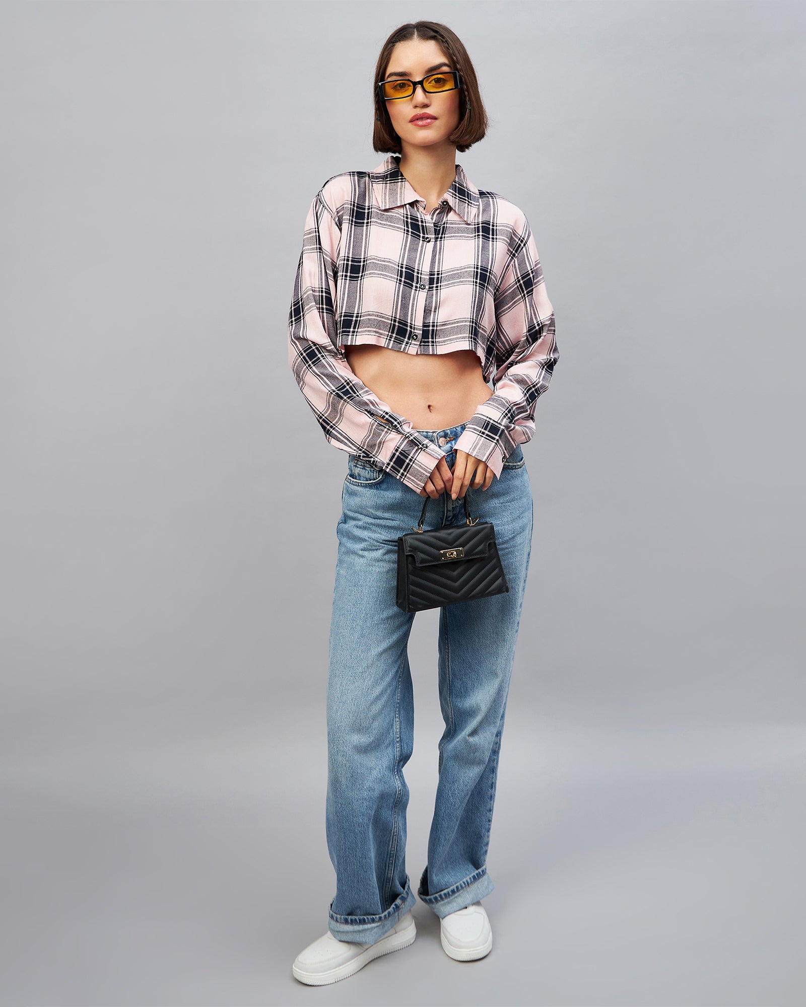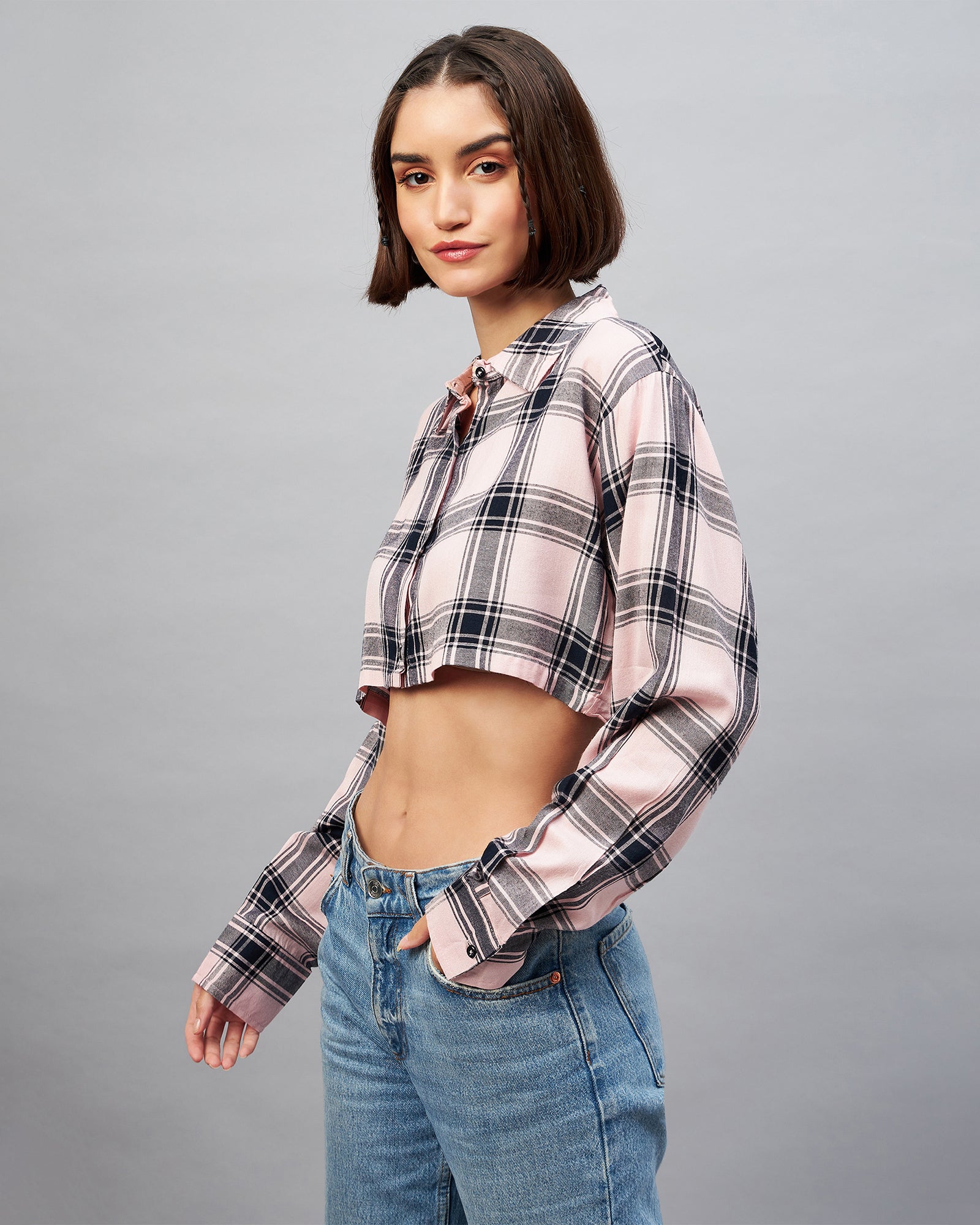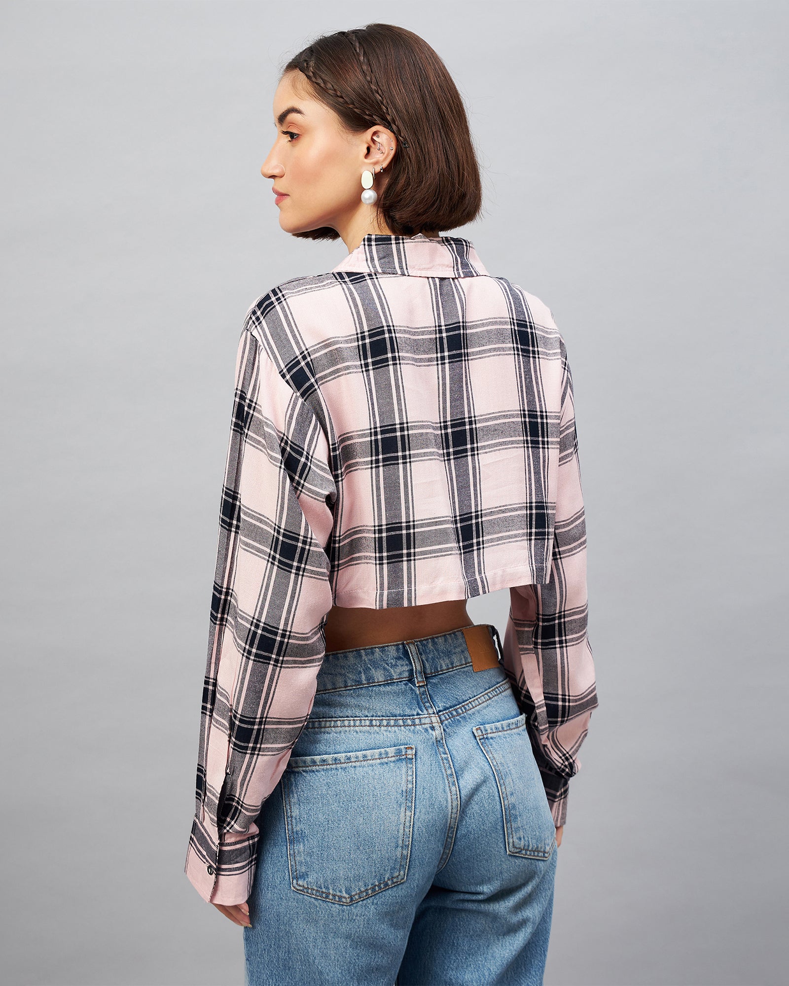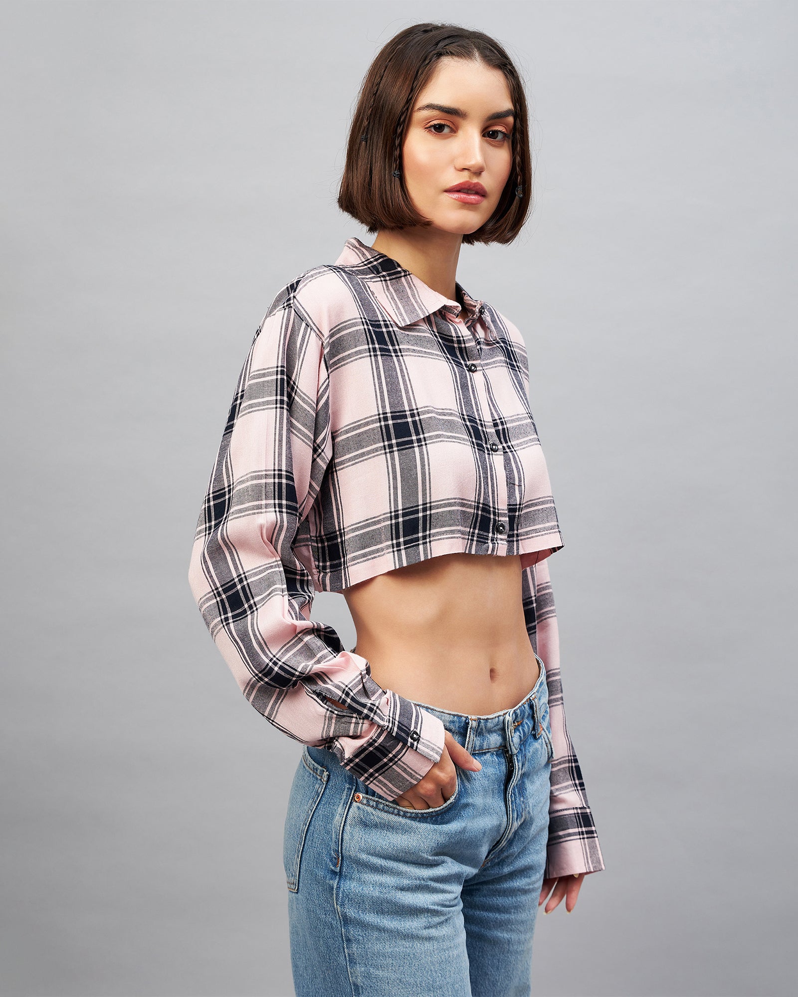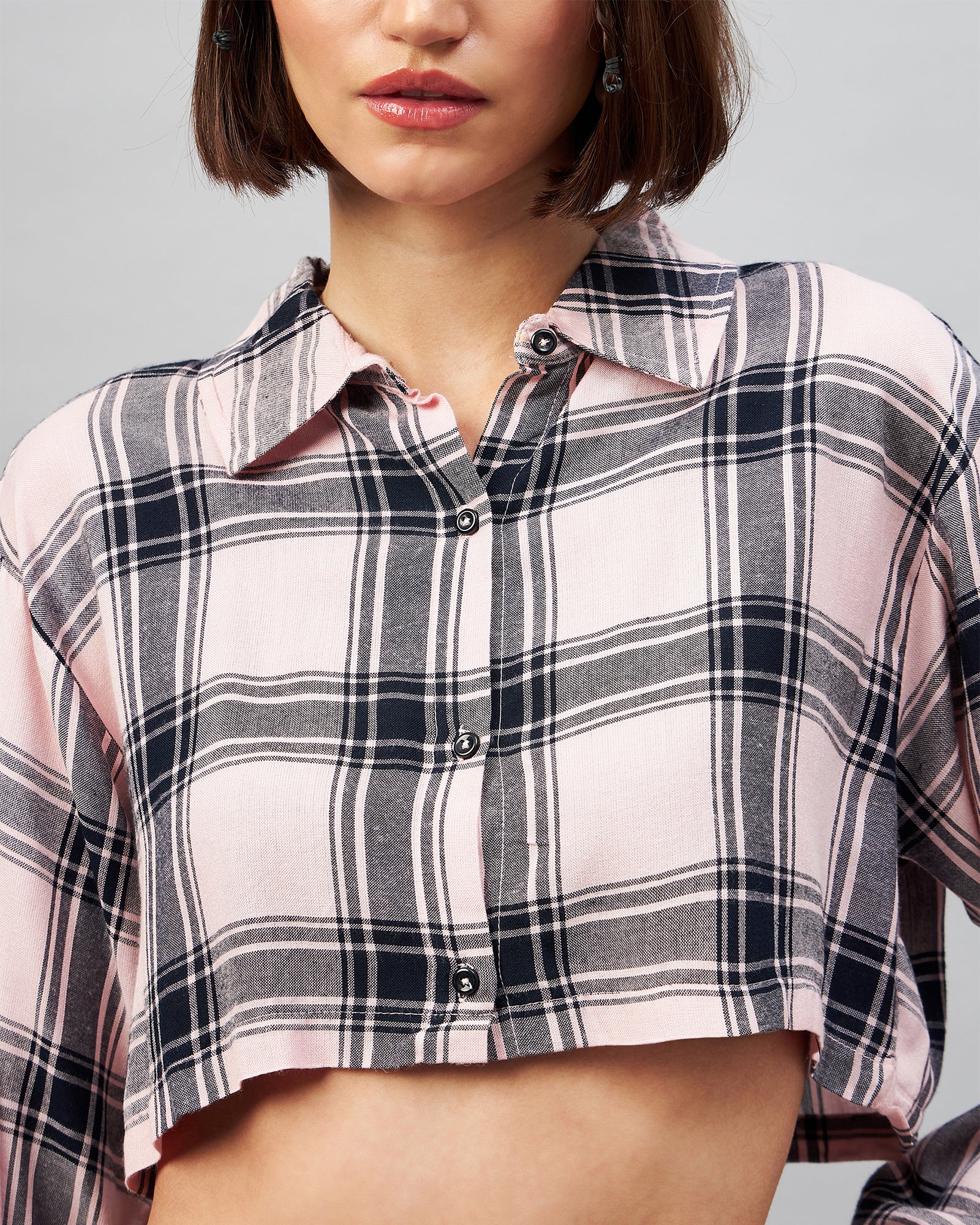 Chimpaaanzee Women Pink & Black Oversized Crop Shirt