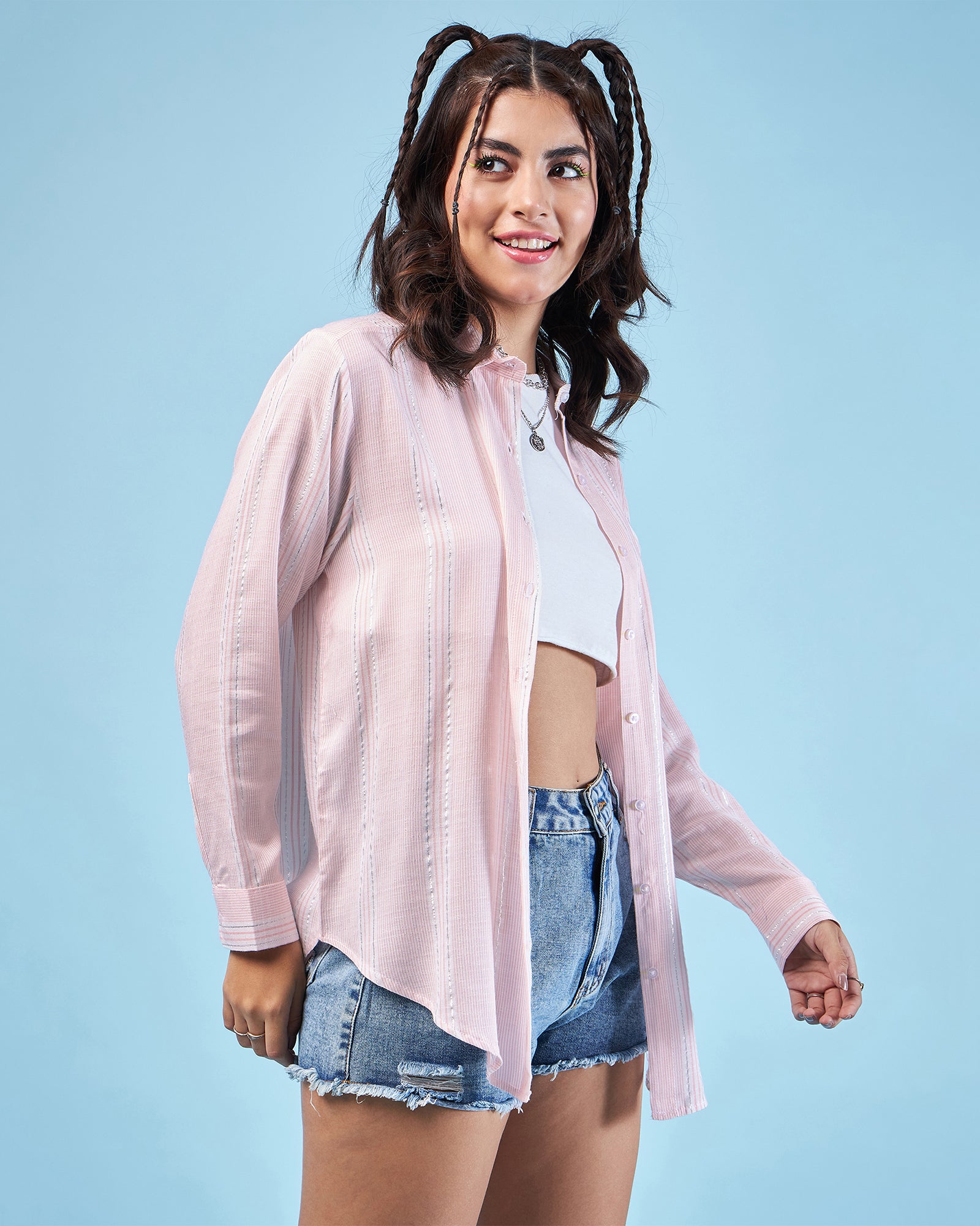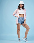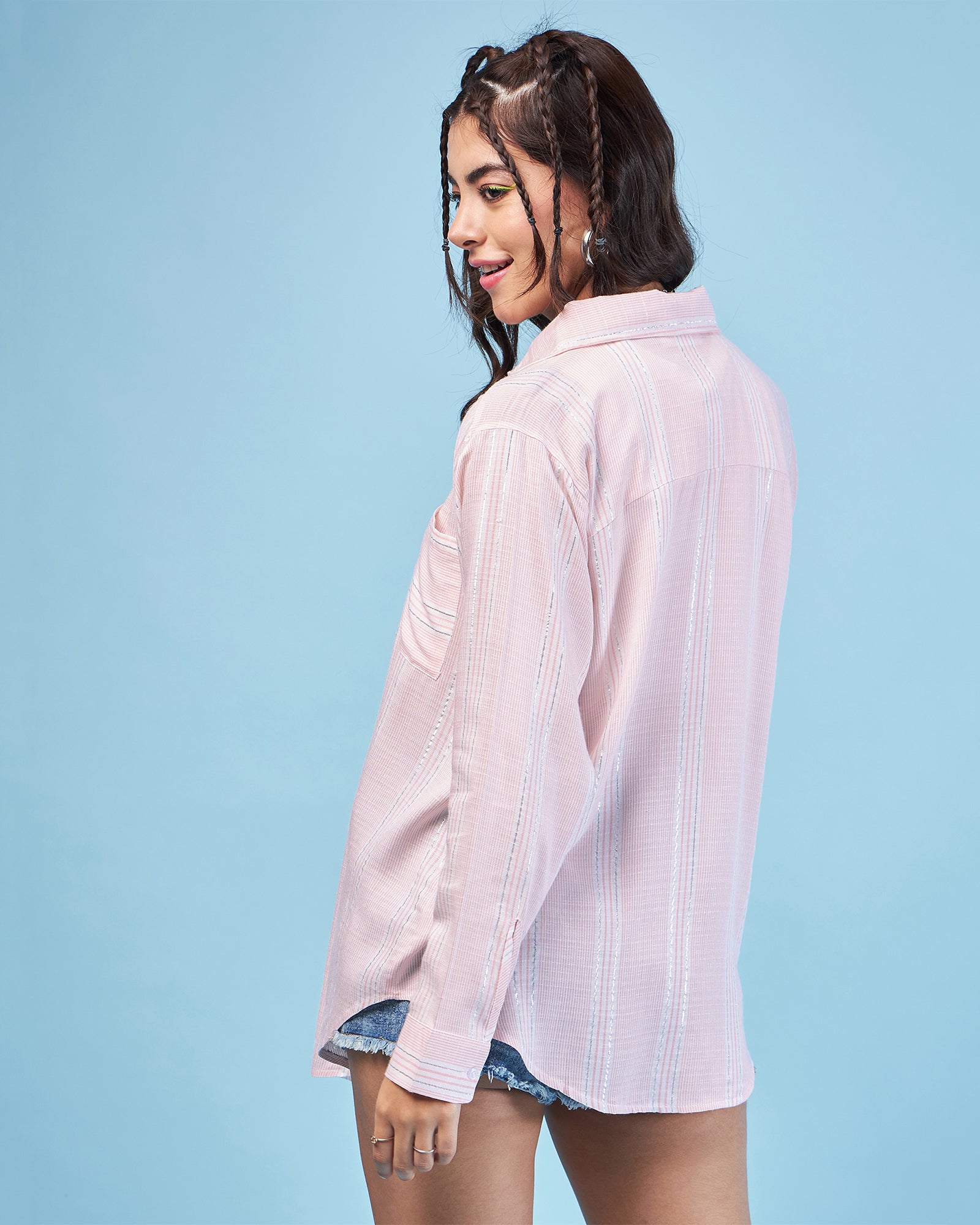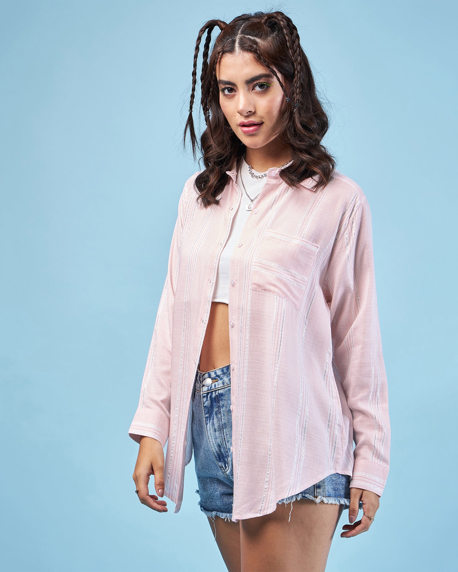 Chimpaaanzee Women Pink & White Oversized Shirt