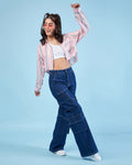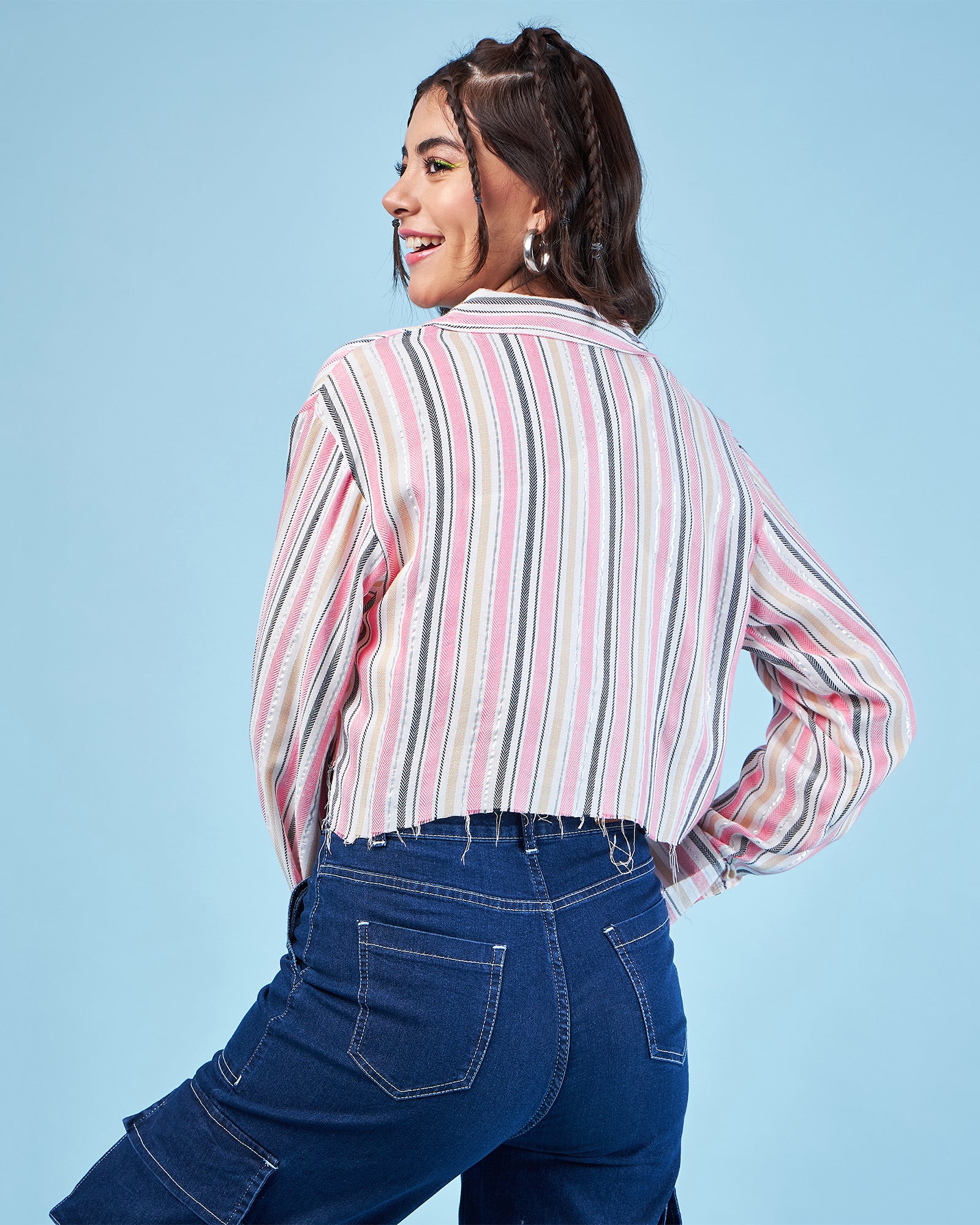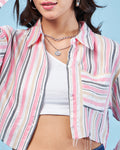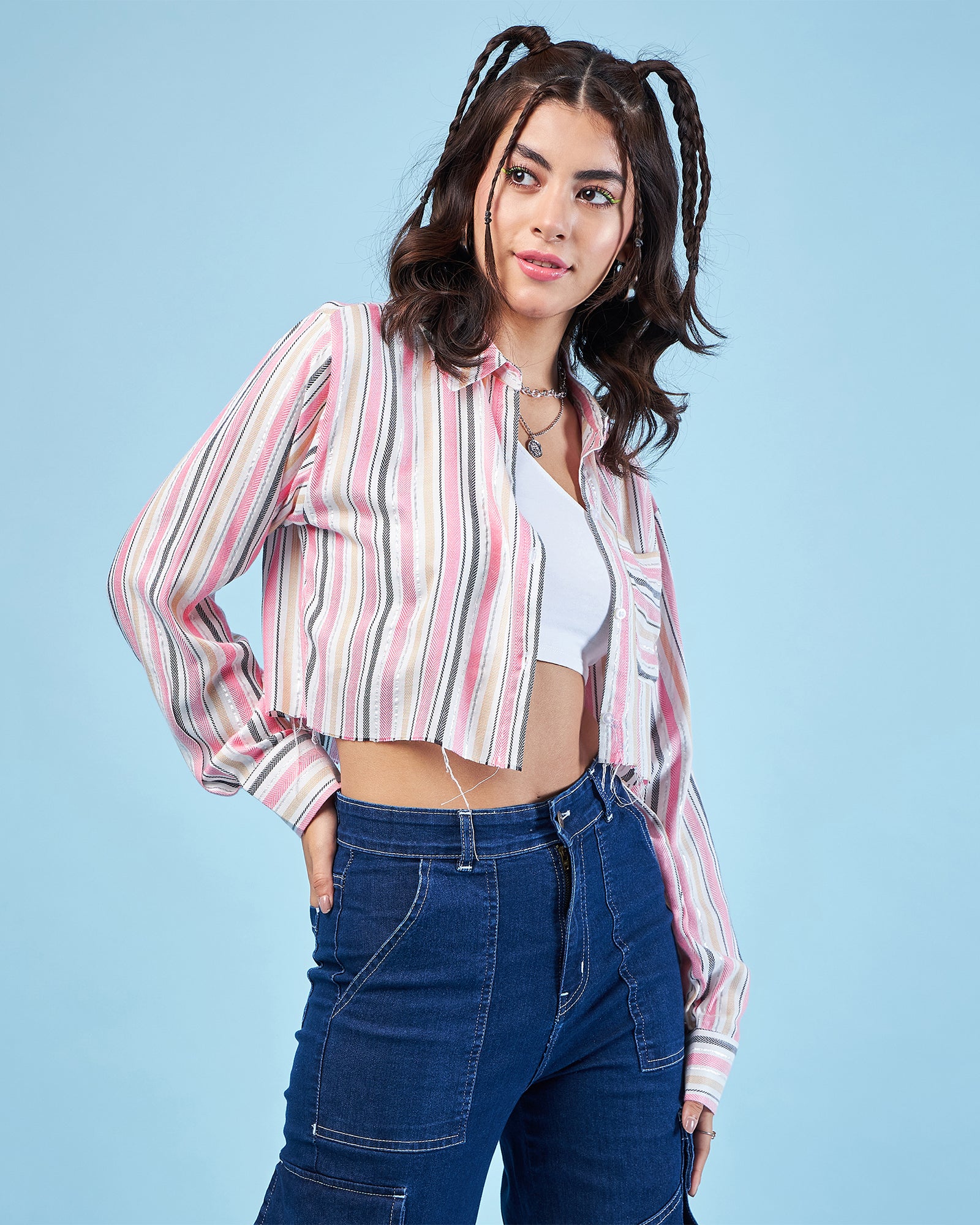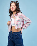 Chimpaaanzee Women Pink & Beige Crop Oversized Shirt