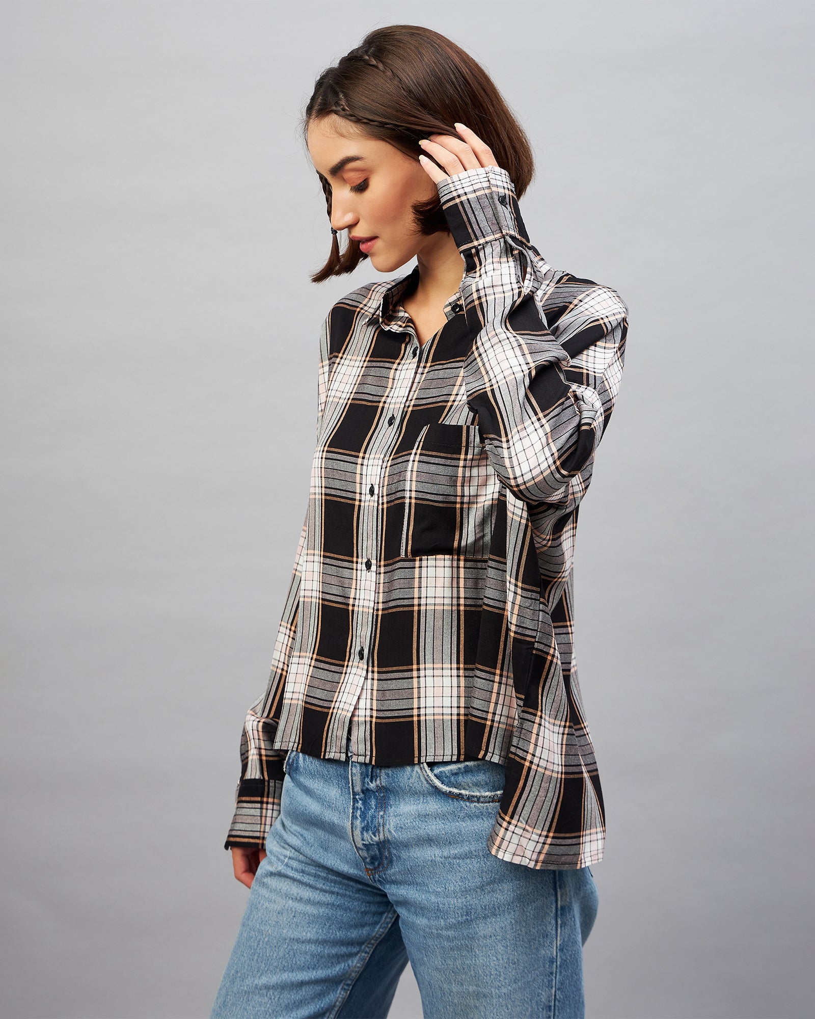 This model has a height of 5 feet 7 inches and is wearing a Top of Size "S"
