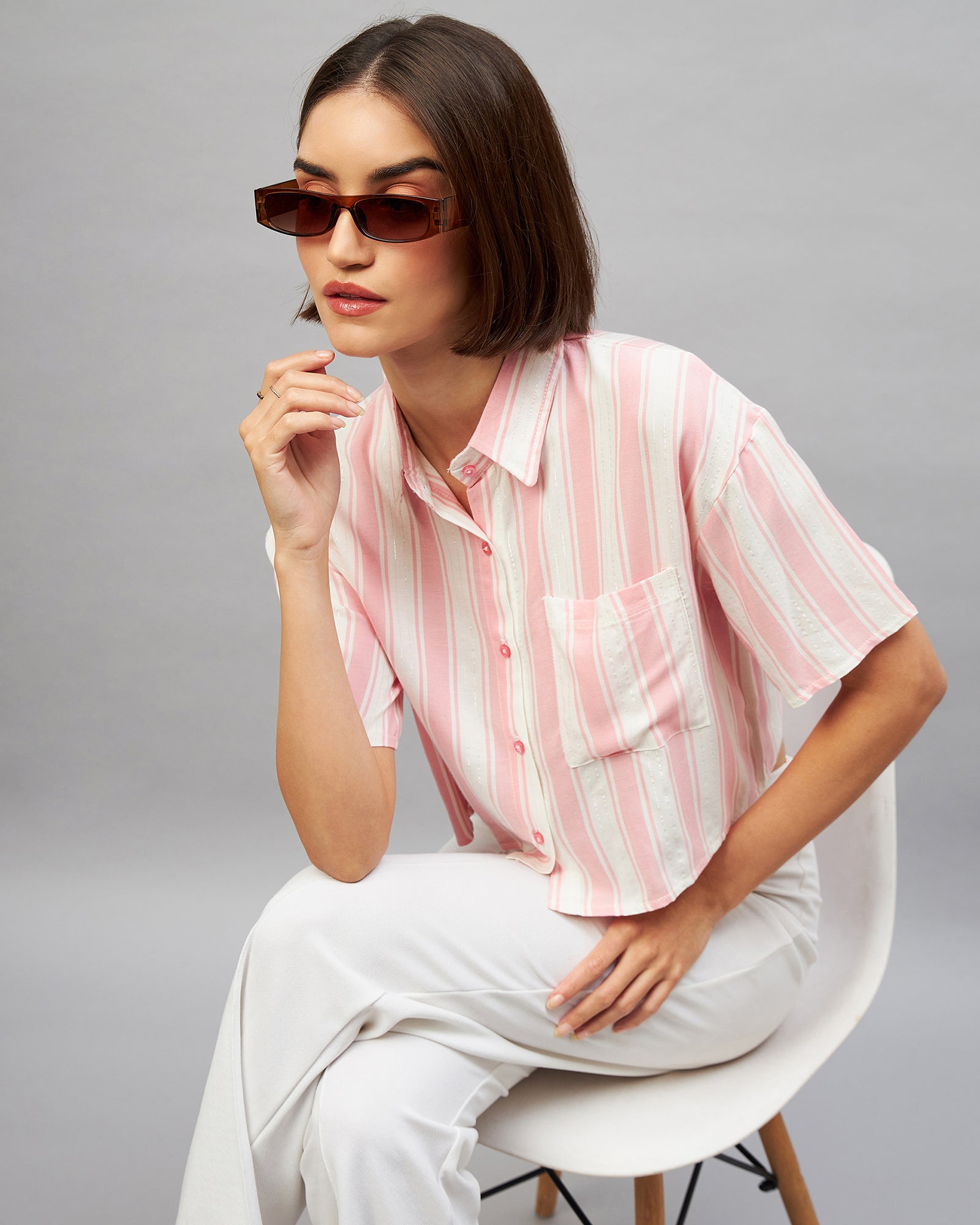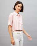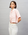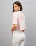 Chimpaaanzee Women Pink & White Cropped Shirt