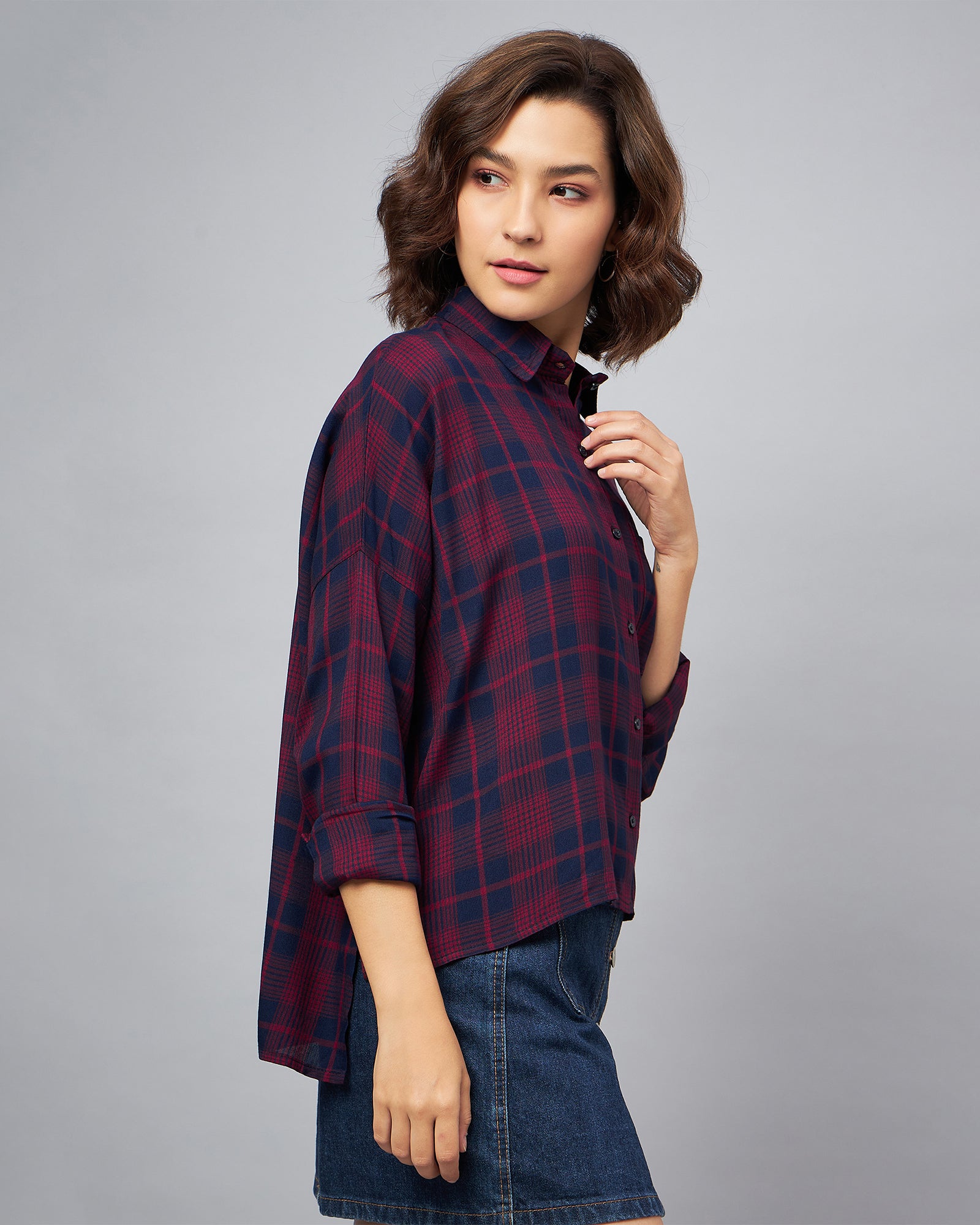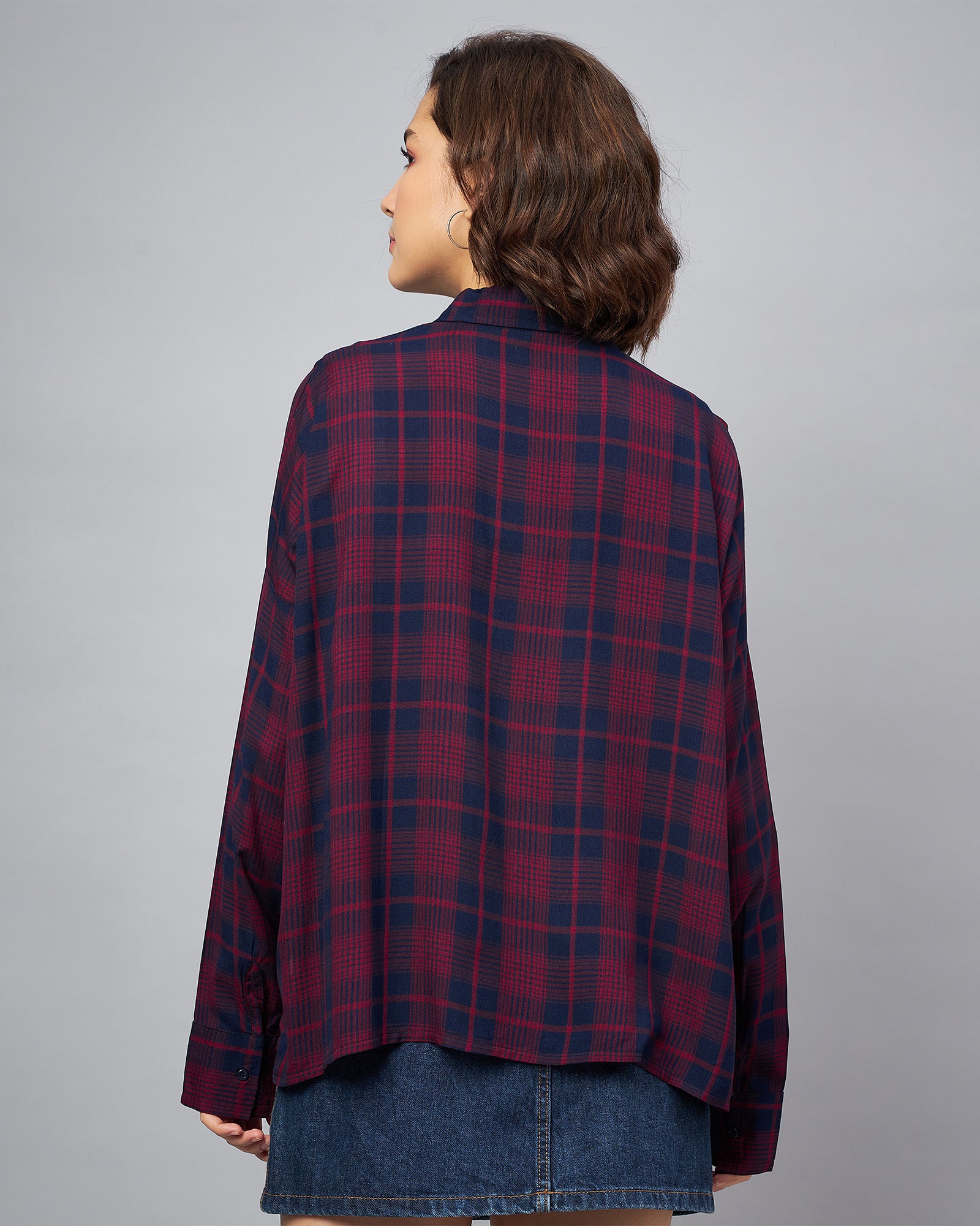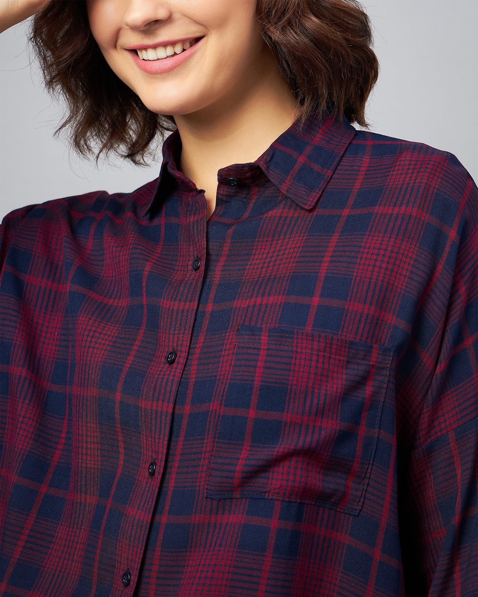 Chimpaaanzee Women Navy & Maroon Oversized Shirt
