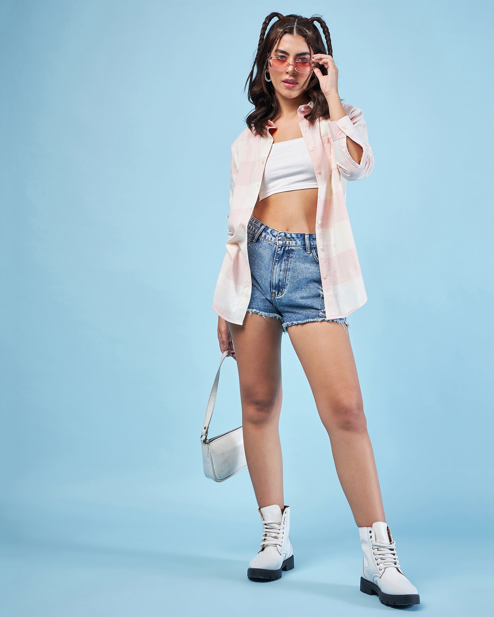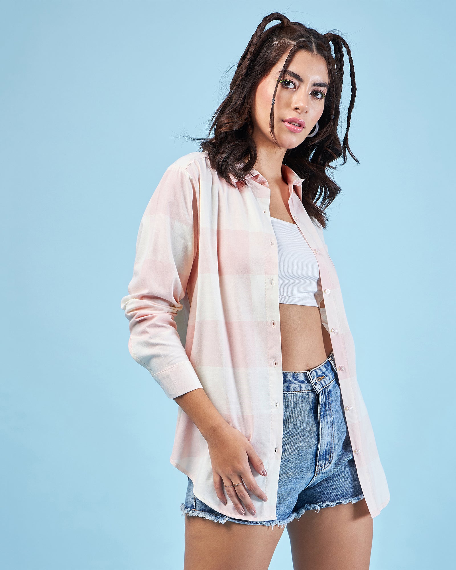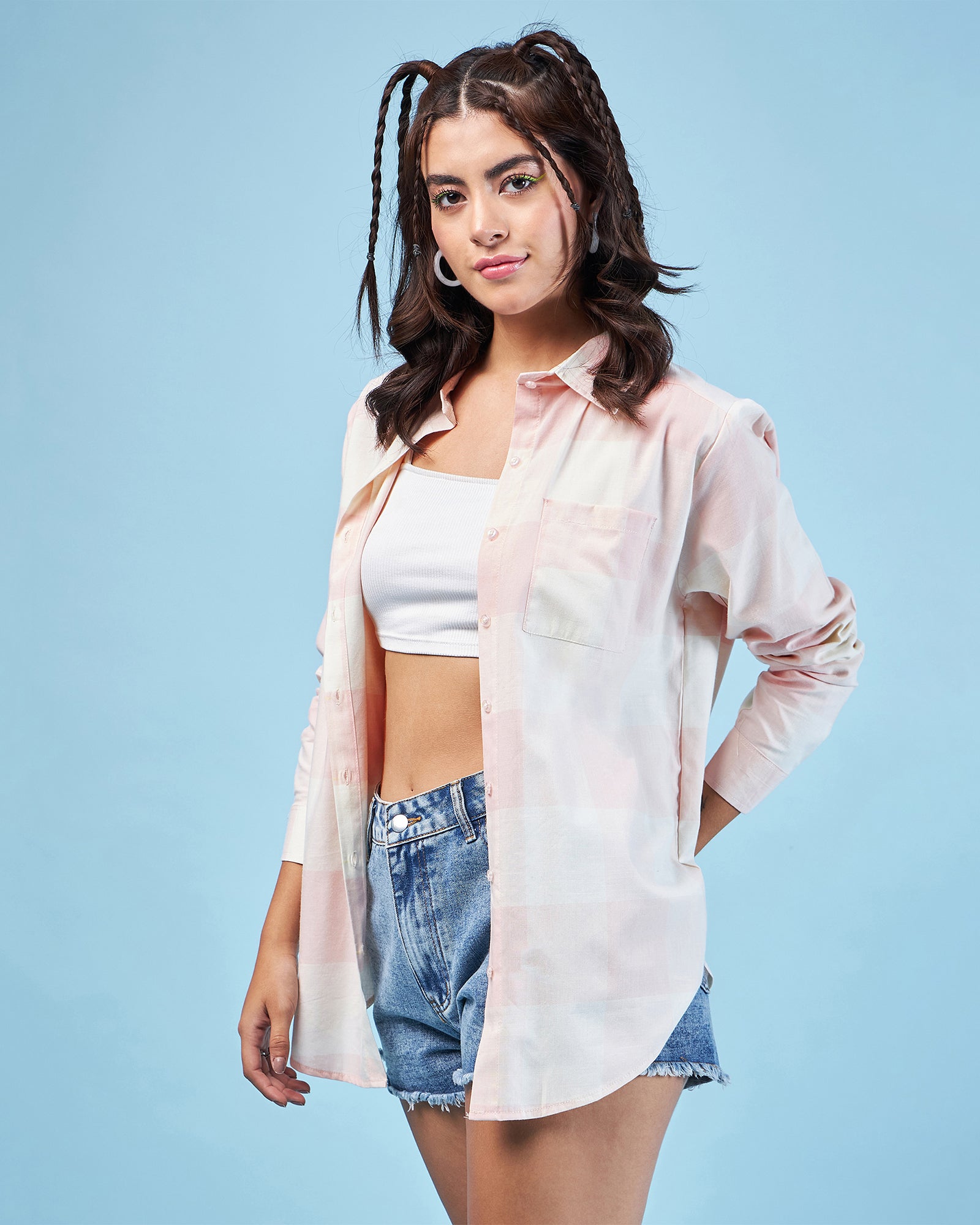 Chimpaaanzee Women Beige & Pink Oversized Shirt