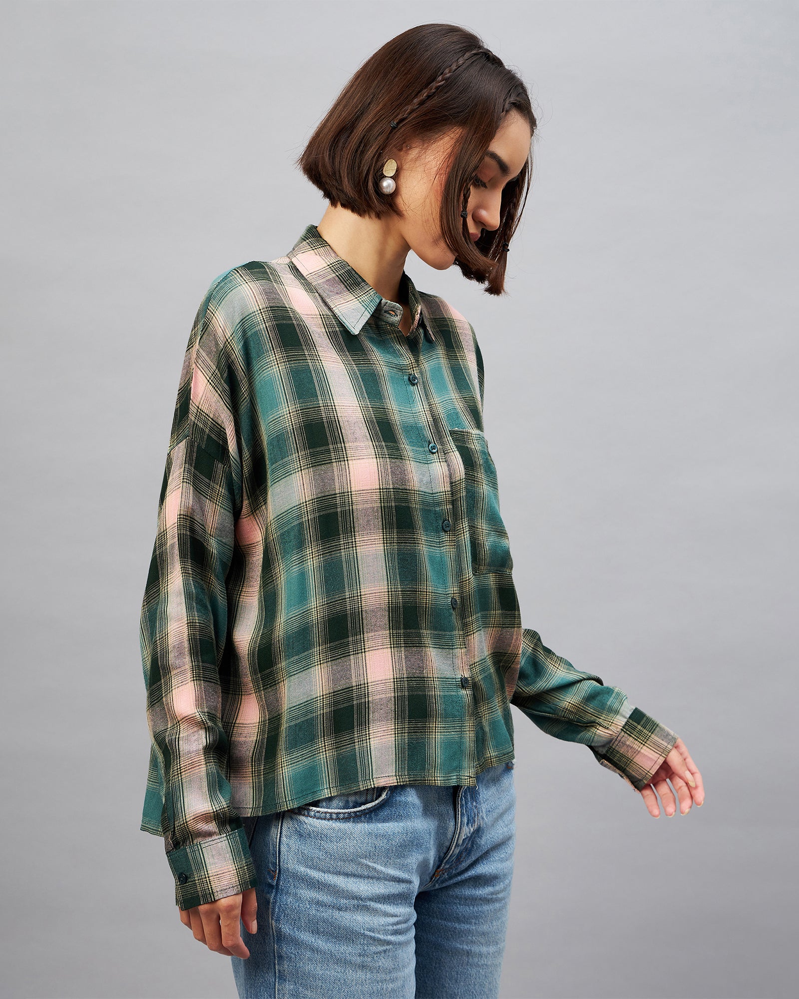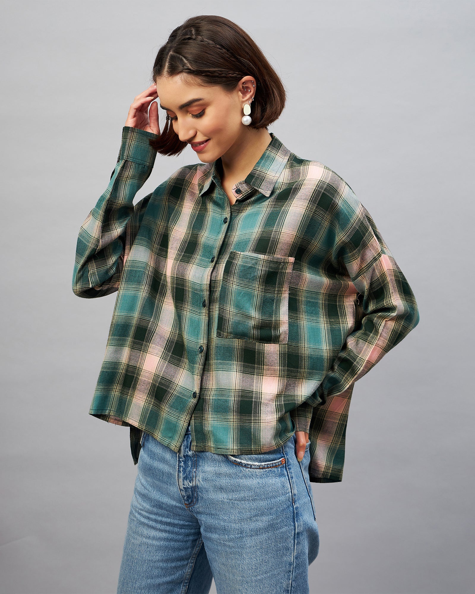 Chimpaaanzee Women Green & Pink Oversized Shirt