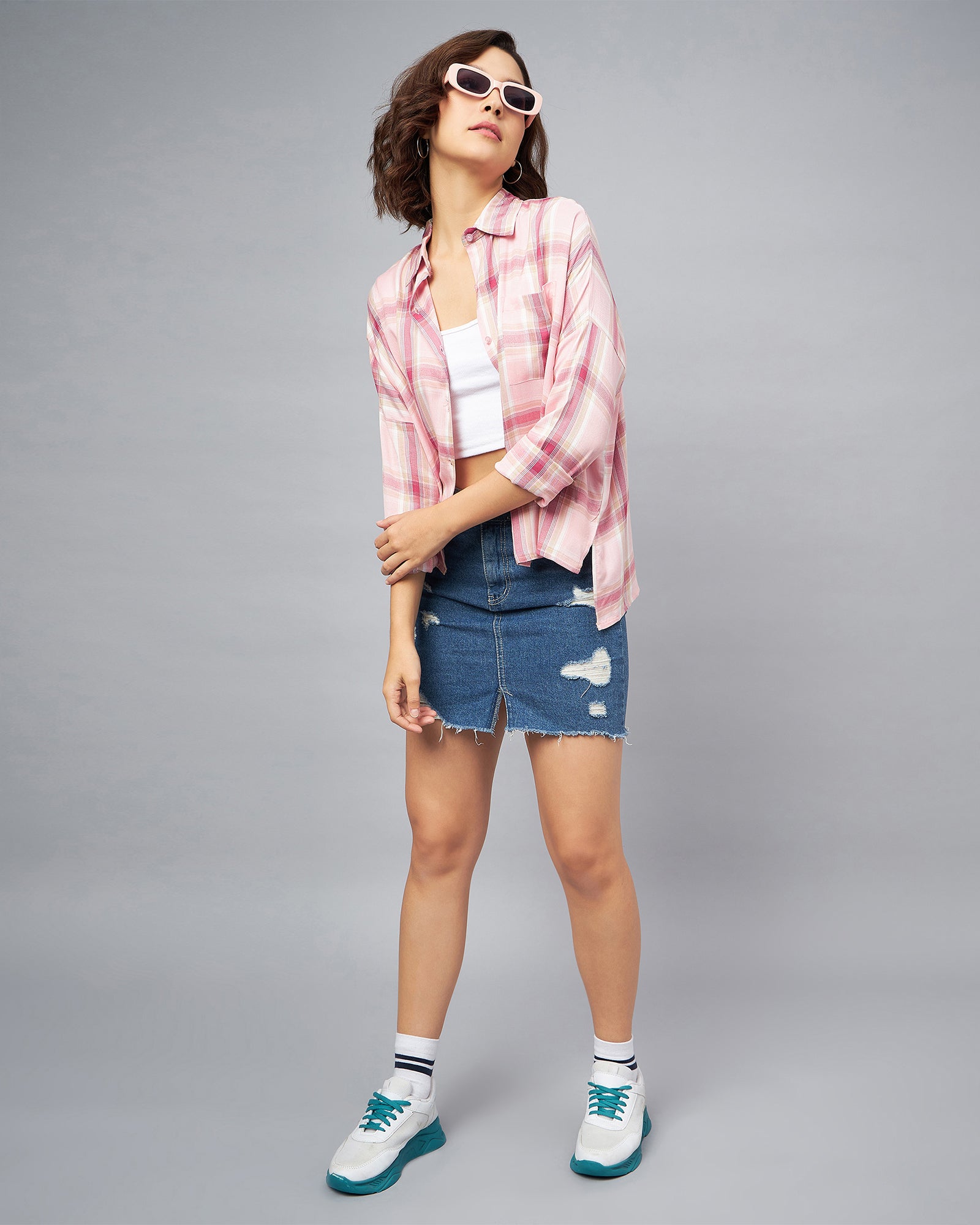 Chimpaaanzee Women Pink & Wine Oversized Shirt