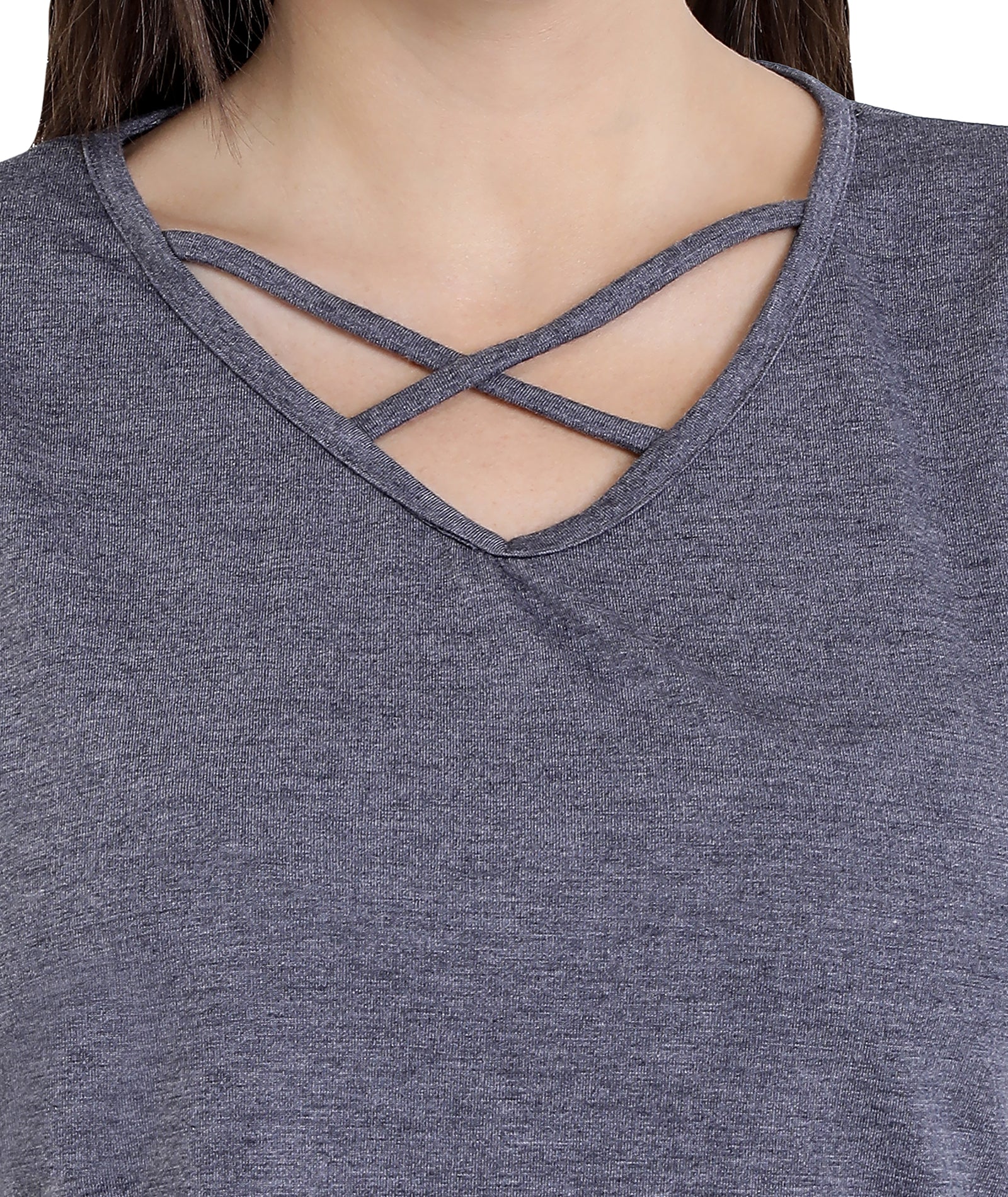 This model has a height of 5 feet 10 inches and is wearing a Top of Size "S"