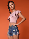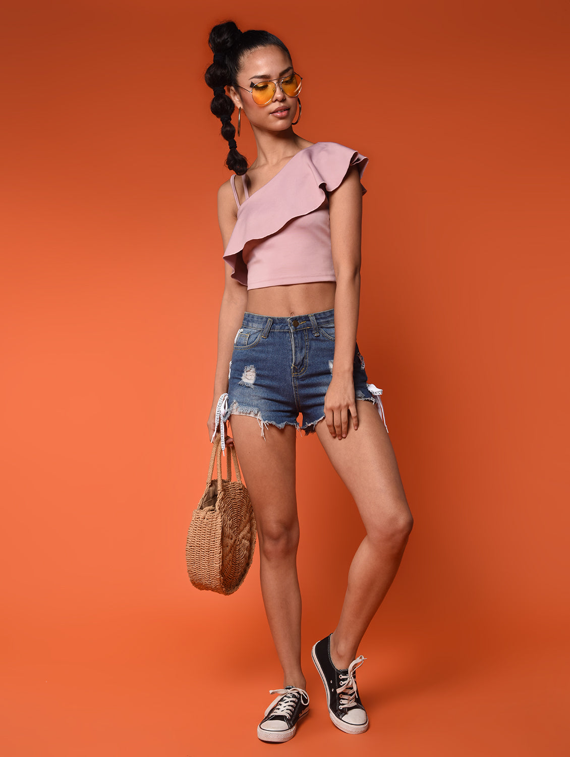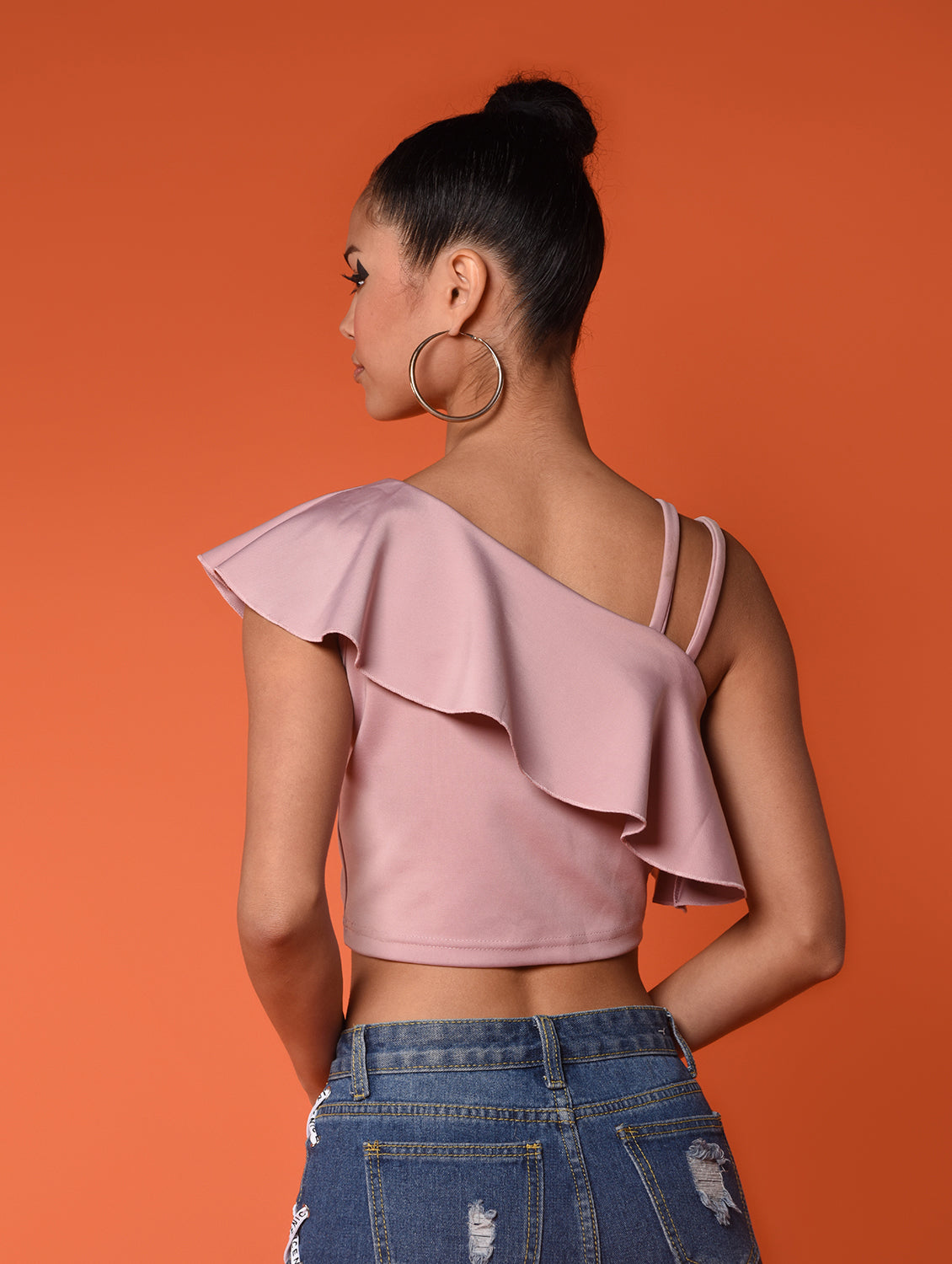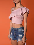This model has a height of 5 feet 10 inches and is wearing a Top of Size "S"