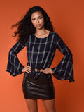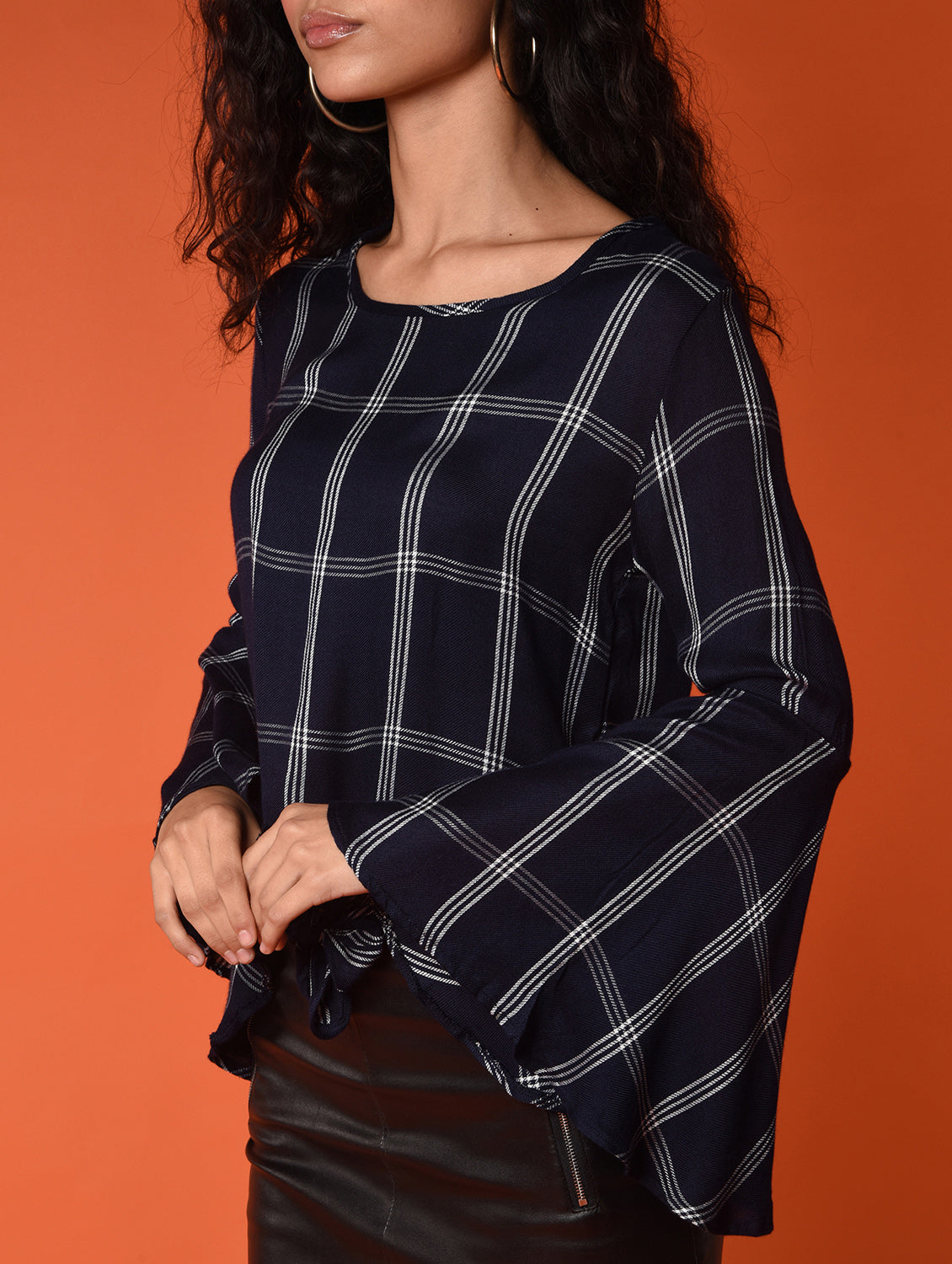 This model has a height of 5 feet 10 inches and is wearing a Top of Size "S"