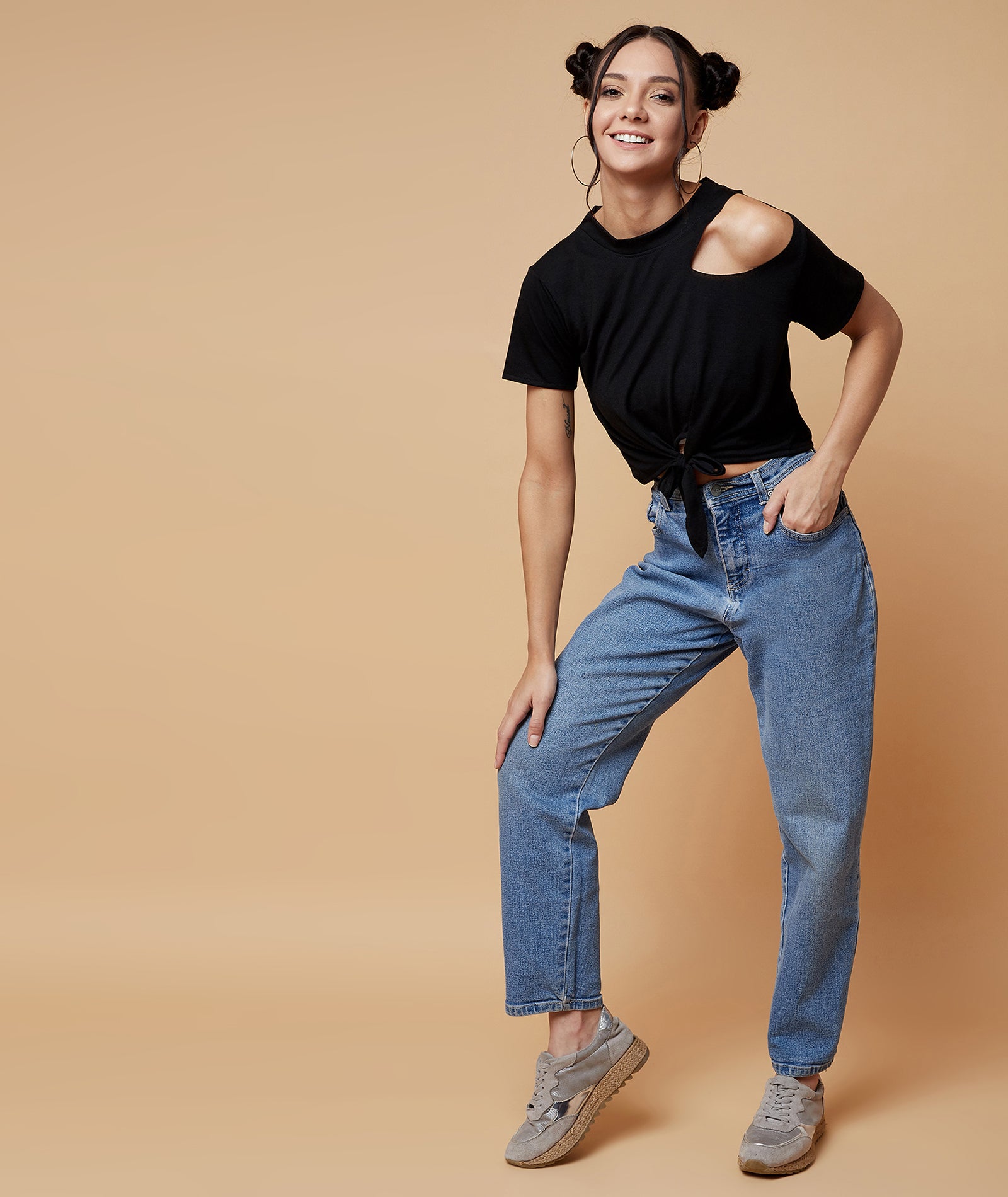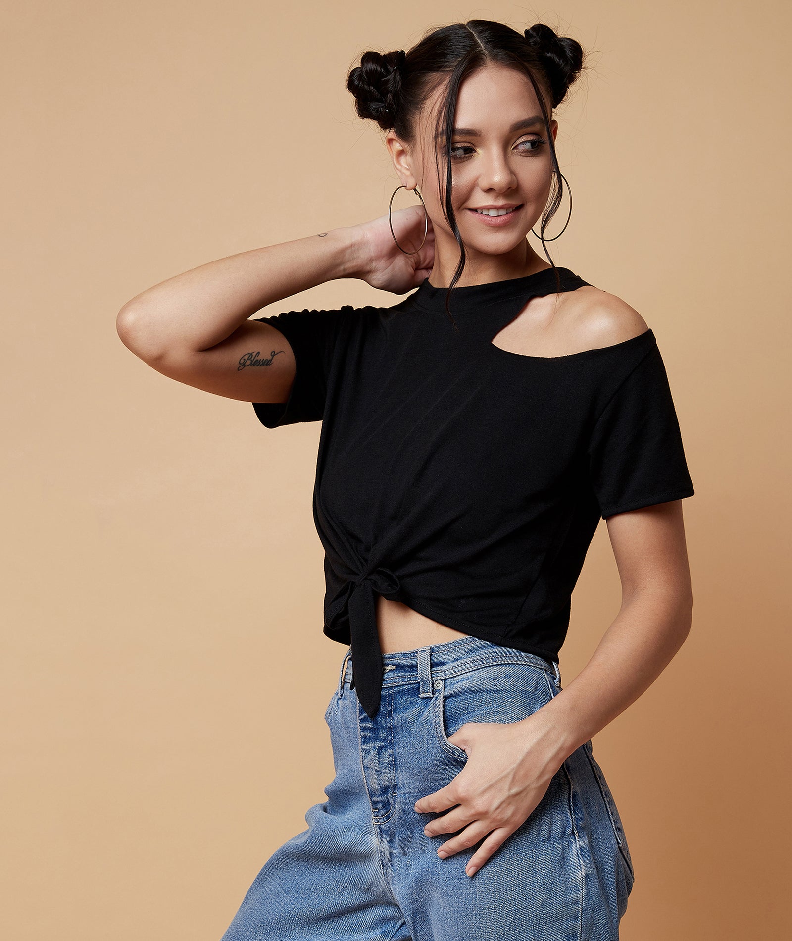 This model has a height of 5 feet 10 inches and is wearing a Top of Size "S"