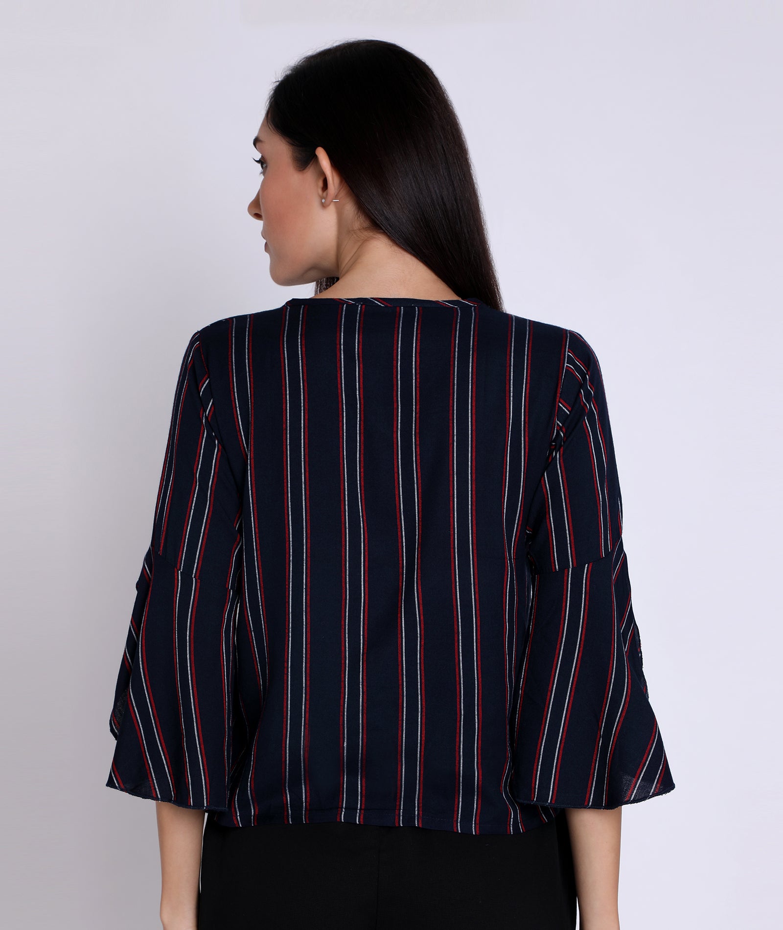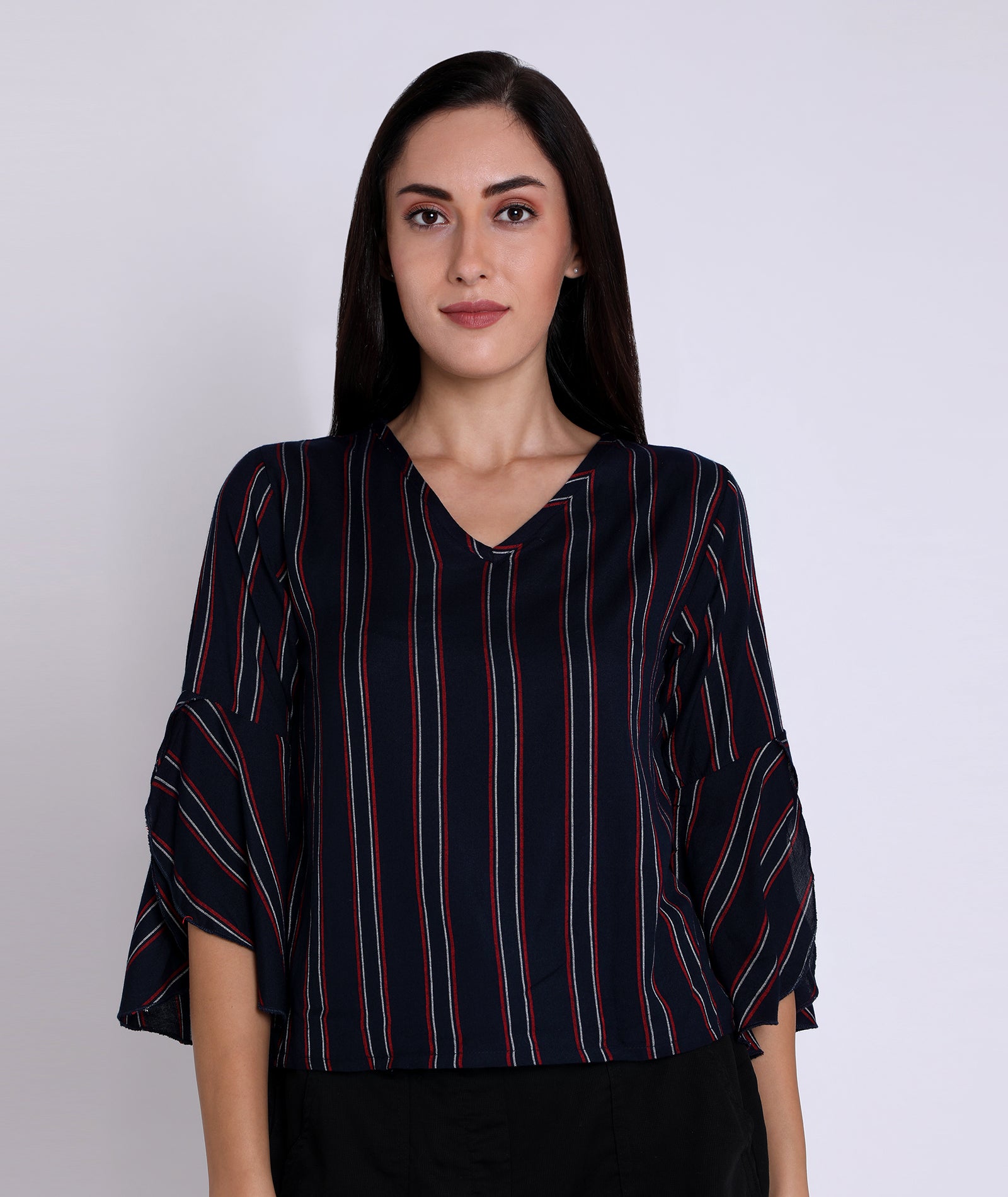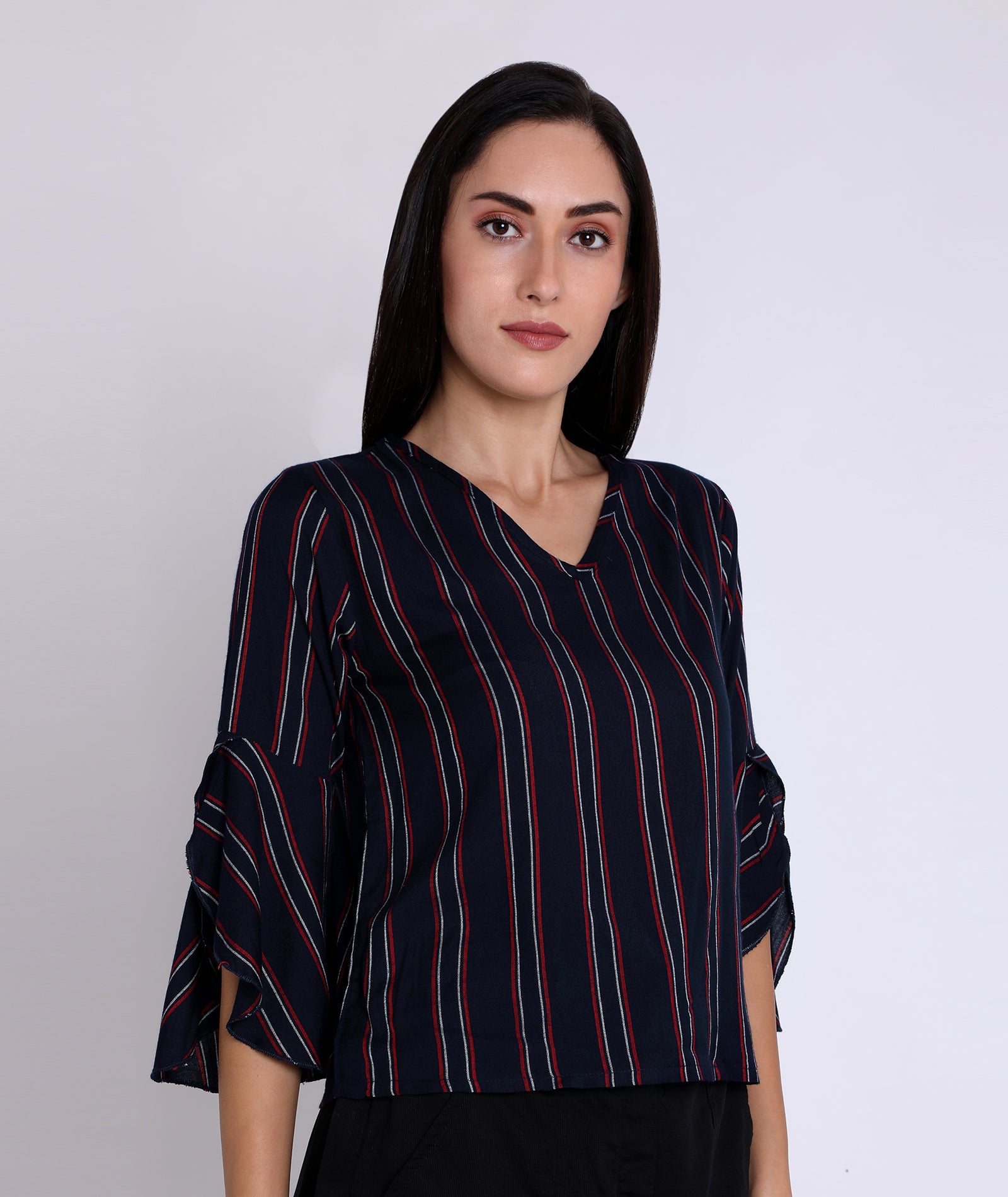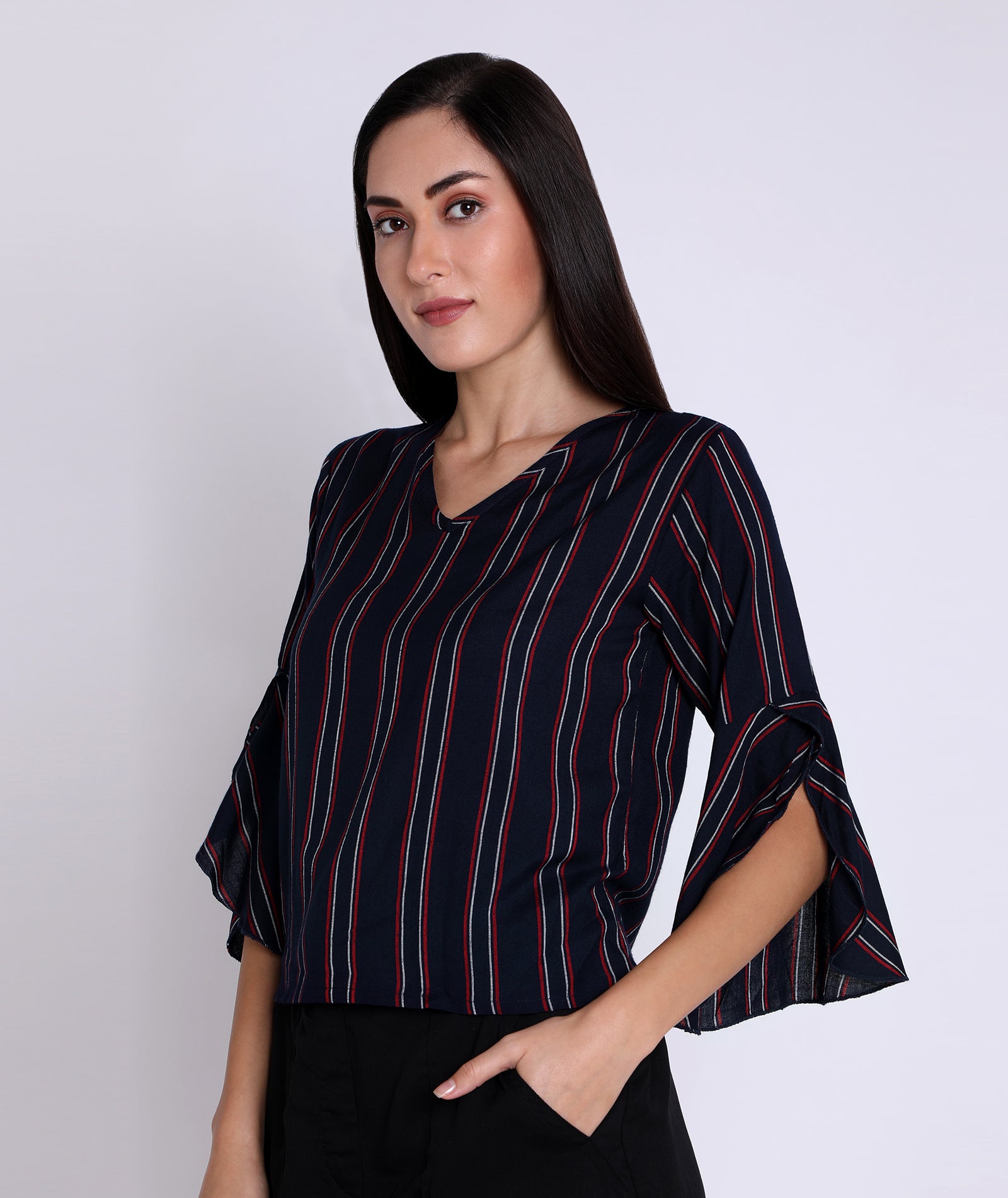 This model has a height of 5 feet 10 inches and is wearing a Top of Size "S"